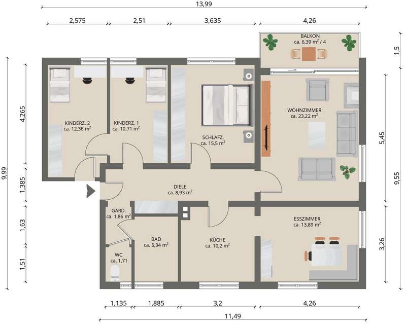 This well-kept 5-room apartment is located on the upper floor of a 3-party house completed in 1971, which impresses with its high-quality building fabric and continuous maintenance. With approx. 106 m² of living space, this property offers generous rooms and a successful room layout that provides a pleasant living environment for both families and couples in need of additional space. The entrance area with a hallway of approx. 9 m² forms the center of the apartment and creates a friendly, inviting atmosphere. All rooms are easily accessible from here. The living room impresses with a Swedish stove and a size of approx. 23 m² and offers excellent lighting conditions and an attractive view of the outside area thanks to large windows and direct access to the approx. 6 m² balcony. The balcony is the ideal place to wind down after work in the open air. The kitchen of approx. 10 m², which is currently used as a dressing room, has plenty of space for modern kitchen technology. Directly adjacent is the dining room, which is currently used as a bedroom. It offers approx. 14 m² of space for sociable evenings with family or friends. The master bedroom measures approx. 15 m² and has enough space for a large bed and a closet. Two further rooms measuring approx. 11 m² and approx. 12 m² are ideal as a children's room, guest room or study and offer flexible usage options to suit individual lifestyles. The daylight bathroom has an area of approx. 5 m². It is completely gutted and equipped with all the necessary connections. You can create your new bathroom according to your individual ideas and wishes. The separate WC was recently completely renovated. The offer includes a parking space belonging to the apartment in a double garage with a sectional door, which provides the future owner with convenient and weather-protected parking. The apartment also has a separate cellar room and a communal laundry room. The entire furniture inventory can be taken over on request. The apartment is currently occupied by the owners and will be ready for occupation from 01.09.2026 - ideal for early planning or as an attractive investment. The apartment has been continuously modernized in recent years. Note: At the request of the client, only their image material was used. * Please note that we can only process inquiries with full contact details (first name, surname, current address, telephone number and e-mail address)! Thank you very much! *