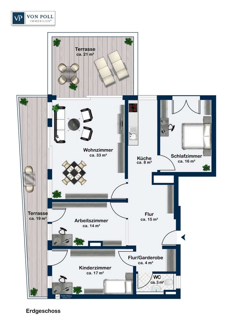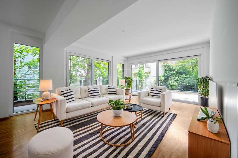 This attractive apartment on the first floor offers a comfortable and upscale home on approx. 130 m² of living space. The light-flooded rooms impress with high-quality furnishings and a well thought-out room concept. The apartment has a total of four rooms, including three cozy bedrooms, which offer a variety of uses - whether as a children's room, study or guest room. The elegant bathroom has a modern design and offers everything you need for everyday comfort. A particular highlight is the large terrace, which invites you to relax and linger outdoors, as well as the small balcony, which creates additional outdoor space. The elevator ensures barrier-free comfort, making everyday life even more pleasant. The construction method from 2012 guarantees modern and energy-efficient fittings. There is also the option of connecting to the neighboring 2-room apartment, which allows for versatile use.