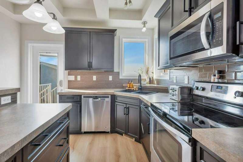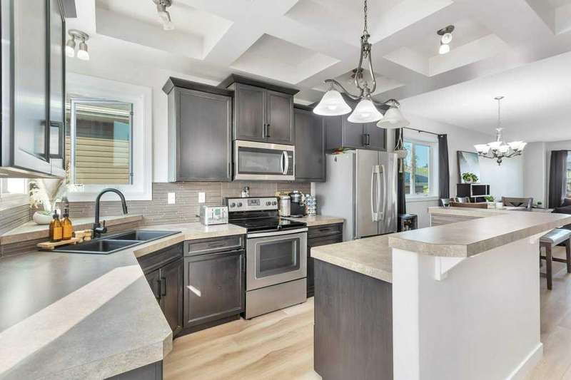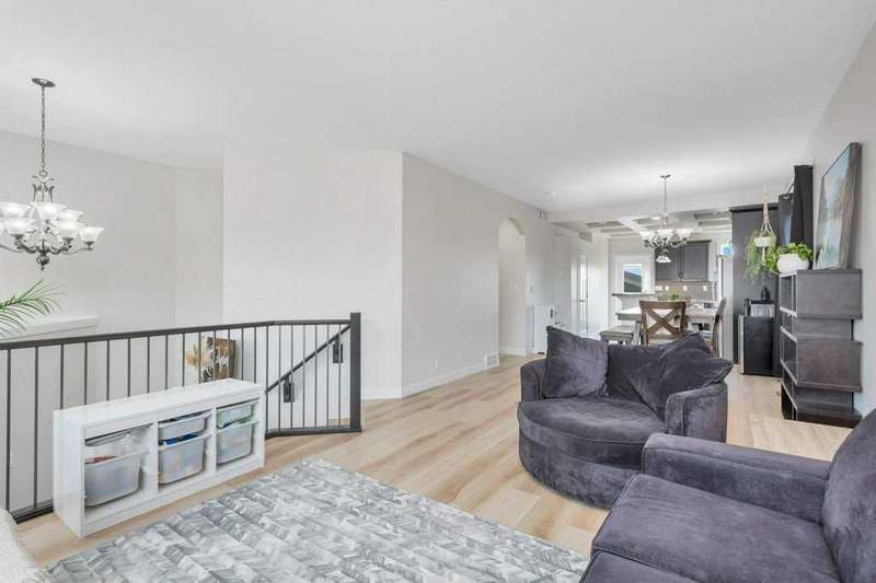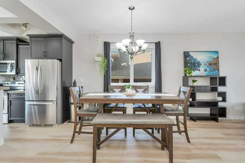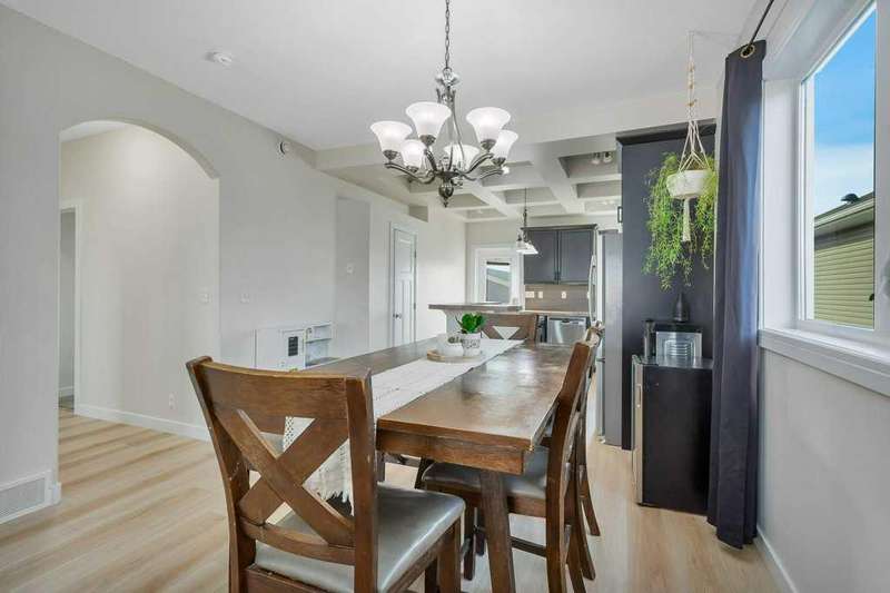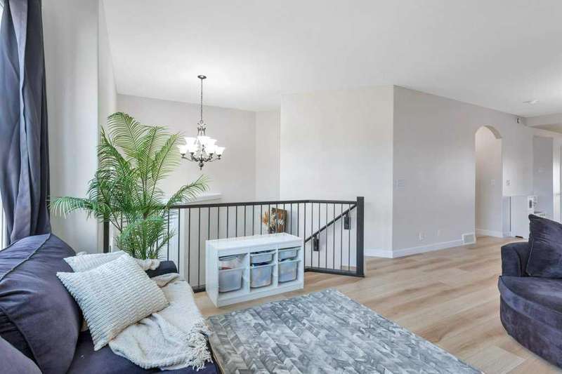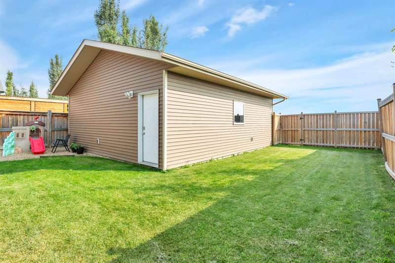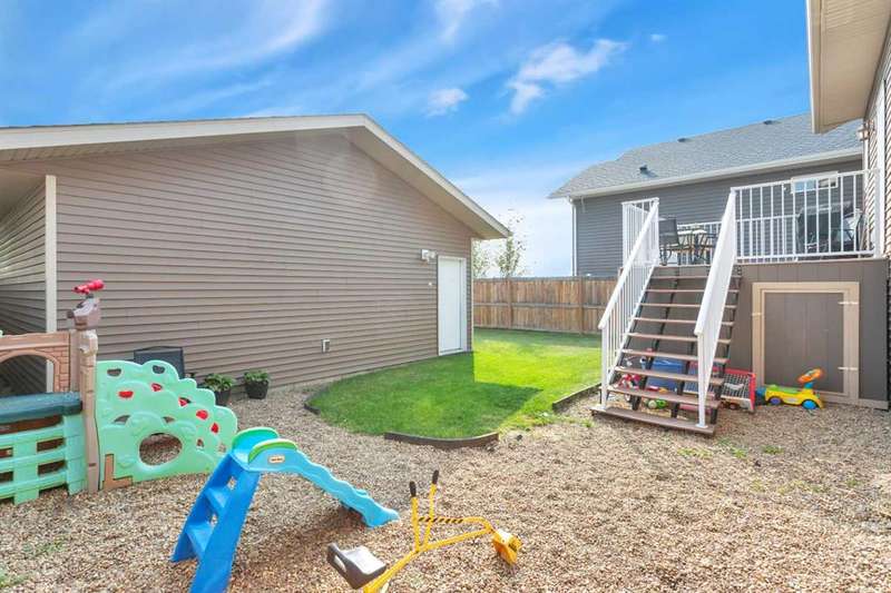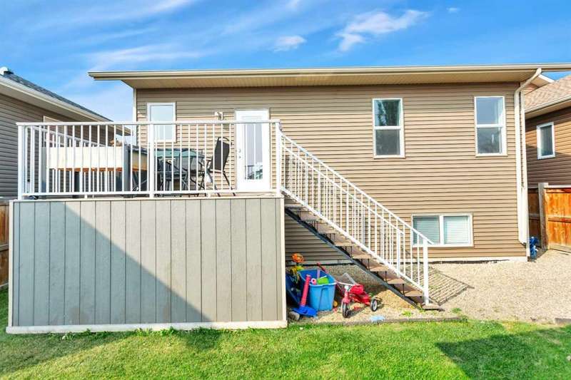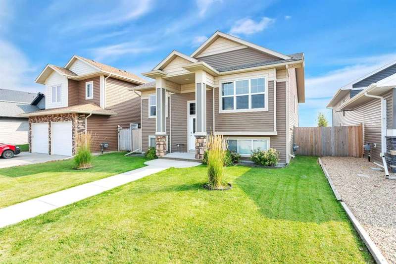 Welcome to this beautiful 6 bedroom, 3 bathroom bi level, perfectly situated on a QUIET FAMILY-FRIENDLY CLOSE with NO NEIGHBORS BEHIND. Surrounded by other well kept homes and just steps from SCHOOL BUS ROUTES, this is the ideal location for a growing family who values both convenience and privacy. As soon as you arrive, you’ll notice the home’s great curb appeal. Step inside to find HIGH CEILINGS, BIG WINDOWS, FRESH PAINT (SEPT 2025) and IRON SPINDLE RAILINGS, giving the main floor a BRIGHT AND OPEN FEEL. The living room offers plenty of space for larger furniture and flexible design options. The kitchen features rich cabinetry a CENTER ISLAND, and a SEPARATE PANTRY, with a CORNER GRANITE SINK that takes full advantage of the SOUTHWEST VIEWS OVER THE OPEN FIELD — NO NEIGHBORS, just peaceful scenery. The main floor offers three larger bedrooms, including a primary suite with its own ENSUITE and WALK-IN CLOSET. Two additional bedrooms make perfect kids’ rooms, guest rooms, or office space. BRAND NEW VINYL PLANK FLOORING with CUSTOM STAIR NOSING has been PROFESSIONALLY INSTALLED throughout the main level for a CLEAN, MODERN LOOK. Downstairs, the FULLY DEVELOPED BASEMENT offers a WIDE OPEN FAMILY AREA — ideal for a playroom, gym or second living space, plus THREE MORE BEDROOMS, a FULL 4-PIECE BATHROOM, and PLENTY OF STORAGE. Outside, enjoy a FULLY FENCED BACKYARD that BACKS ONTO A FIELD, giving you EXTRA PRIVACY and space to enjoy. The COMPOSITE DECK AND STAIRS are LOW-MAINTENANCE and include UNDER-DECK STORAGE. A DETACHED OVERSIZED DOUBLE GARAGE (26X24) is FULLY FINISHED AND BOARDED, providing plenty of room for vehicles, hobbies, and storage. Additional updates include a NEW FURNACE and WORKING IN-FLOOR HEAT, making this large home MOVE-IN READY and COMFORTABLE YEAR-ROUND. This property offers the perfect combination of space, location and updates — a wonderful place to call home!