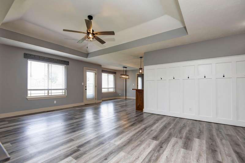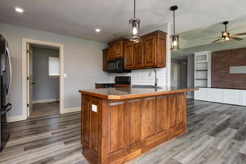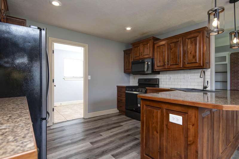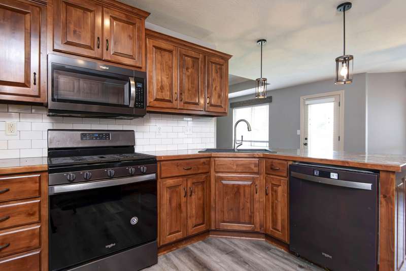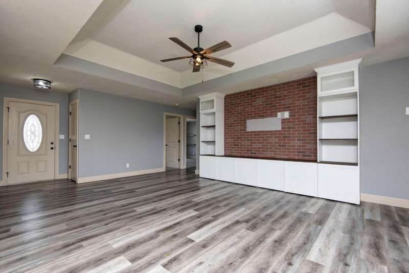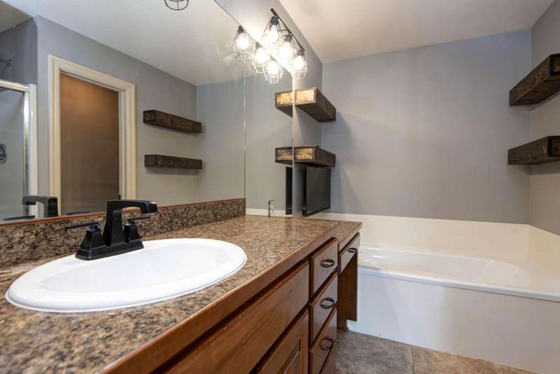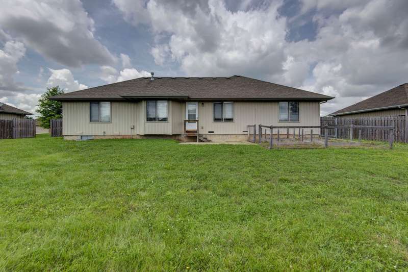 Don't miss this great 4 bedroom, 2 bath, 3 car garage home with a split bedroom floor plan. It features: large kitchen with tile backsplash, knotty alder custom cabinets, pantry, breakfast bar & black stainless steel appliances. The master bedroom ensuite has tray ceiling, accent wall, large bathroom with walk-in shower, jetted tub and large walk-in closet with custom California Closet system. Nice neutral colors throughout. This home has been outfitted with lots of custom features: built-in entertainment center, TV at jetted tub and garage that are included with sale, accent walls, bunk beds and custom shelves throughout. Tile floors in bathrooms and laundry room. Vinyl flooring in living room, kitchen, dining and walkways. Carpet in all the bedrooms Nice privacy fence backyard with patio and garden area. Maintenance free exterior with brick/stone on front and vinyl siding. Located just minutes from Springfield in the quiet Battlefield Estates Subdivision! Back on the market at no fault of the seller!