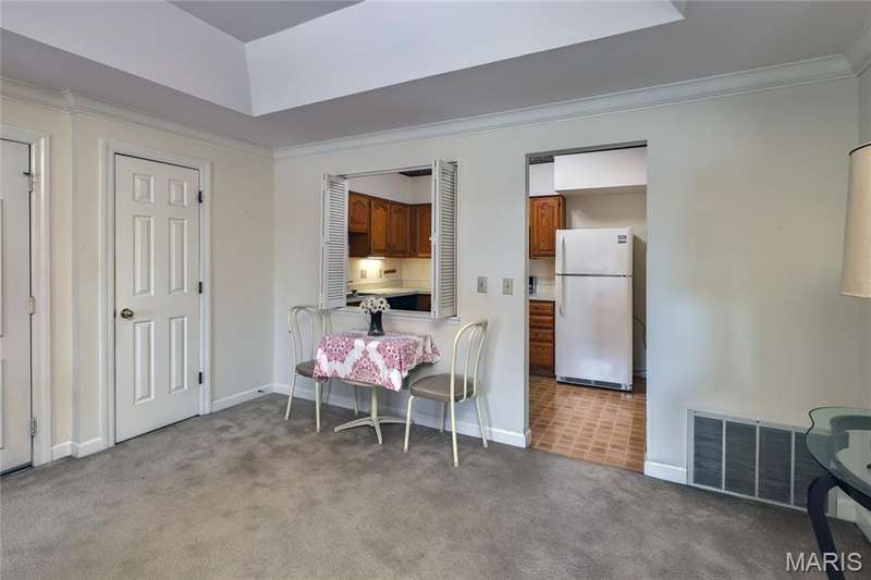 LIVE IN DOWNTOWN KIRKWOOD! Check out this beautifully maintained 2-bedroom, 2-bath condo nestled in the heart of Kirkwood. With gorgeous, coffered ceilings in the unit, and large, ample room sizes, this condo is ready for its new owners to make it their own! A beautiful bay window, overlooking the lovely neighborhood, enhances the living room, while the built-in shelving and cozy gas fireplace provides the warmth and comfort of home. The primary bedroom boasts a large closet and en suite bathroom. The second bedroom is generously sized with abundant closet space and a lovely walk-out balcony. New hot water heater- 2024.This unit has one designated parking spot. Just minutes from downtown Kirkwoods shops, library, the Farmer's market, restaurants, and parks, this condo offers a vibrant lifestyle in a peaceful setting!