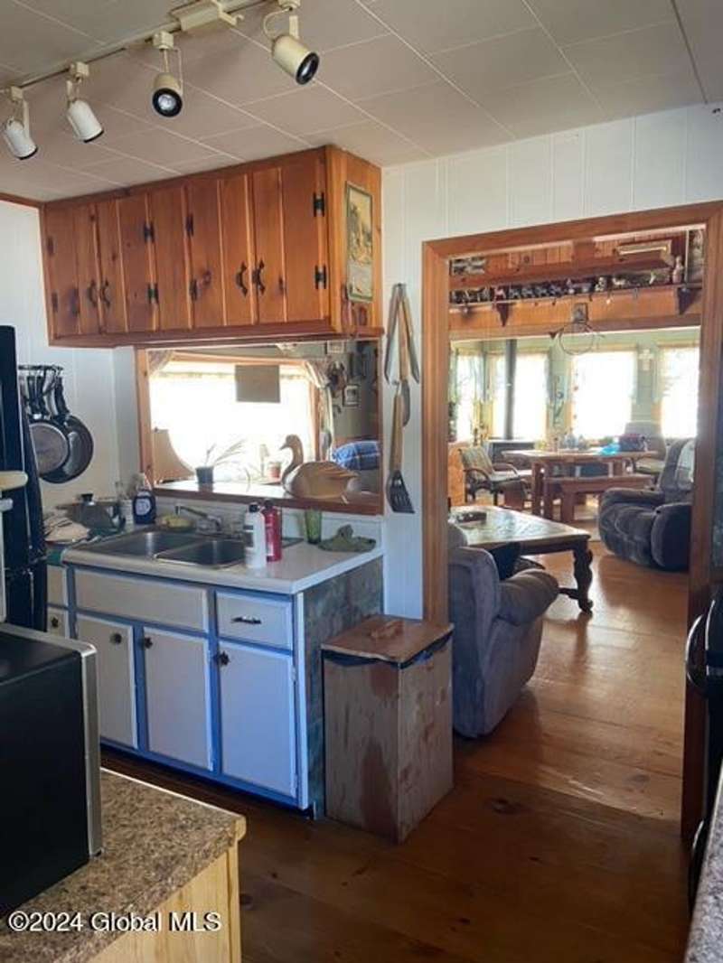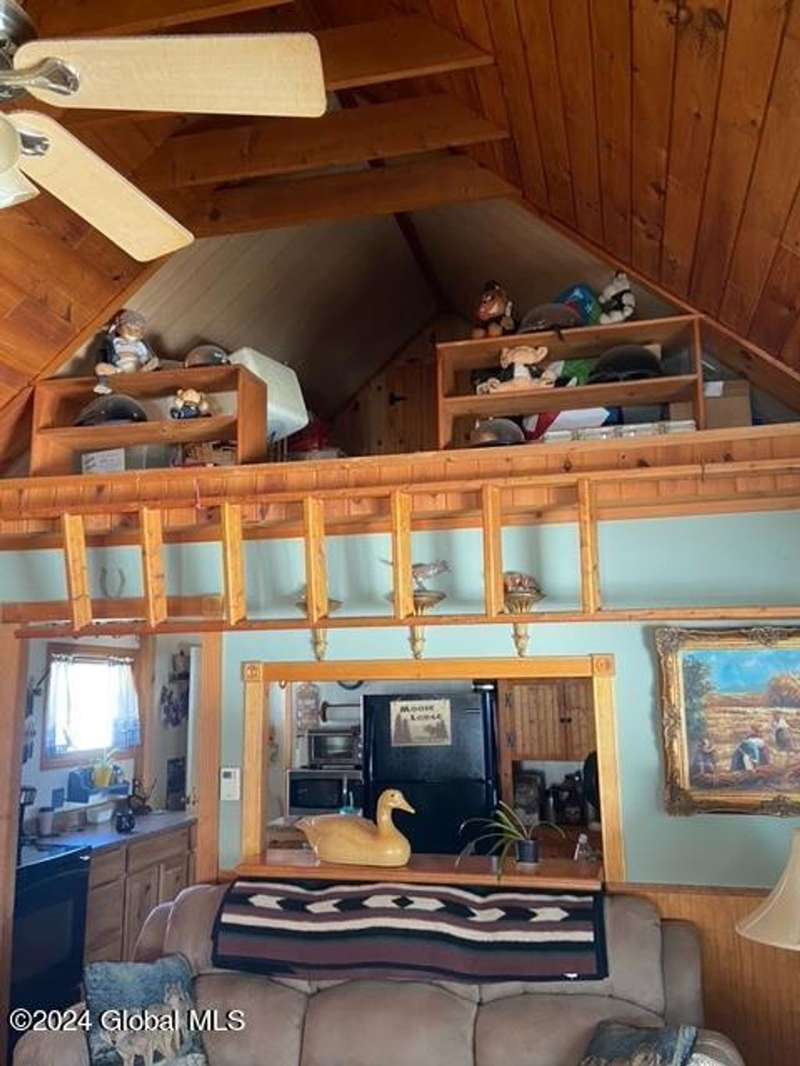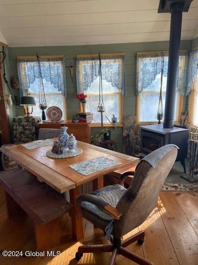 Live like you're on vacation year round! This rustic yet modern retreat is ready for it's next owner. Incredible views from every spot in the house. Over 8 wooded acres with plenty of wildlife and a spring fed pond plus snowmobile and 4 wheeler trails. Ideal hunting camp-just walk out your back door! Many recent updates including a water softener, new well pump, fuel tank and new wood stove. Refinished hardwoods throughout. Partially finished attic space can easily be converted to living space. Lots of storage in the barn plus one car detached garage. Incredibly low taxes--less than $1000!