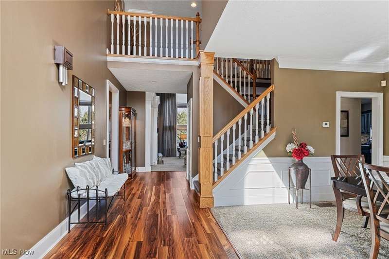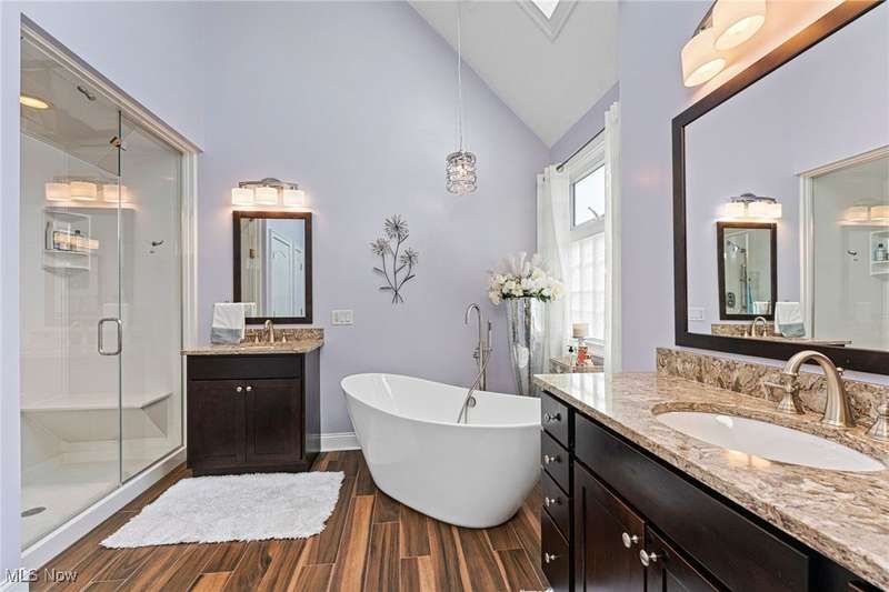Stunning Kempton Woods/Coventry Place Home with Modern Updates! This gorgeous home offers the perfect blend of comfort, style, and luxury, located in the highly sought-after Amherst community. Featuring a convenient 1st-floor Master Suite including a walk-in closet, luxurious en-suite glamour bath featuring dual sinks, a soaking tub, steam shower and ceramic tile flooring. This property boasts thoughtful upgrades and a modern touch throughout. Main Level Highlights, Great Room with dramatic vaulted ceilings, custom remote controlled blinds and a cozy radiant heat gas log fireplace, perfect for relaxing or entertaining. Updated kitchen with a large breakfast bar, backsplash, ceramic flooring, stainless steel appliances including a Viking Gas stove, micro bar and pantry. Kitchen area leads to a private deck, in-ground pool, custom outdoor fireplace, ideal area for dining or tranquil mornings. Efficient first floor plan adds convenience, warmth and elegance. Spacious Foyer entrance leads to Formal Dining Room, perfect for hosting holidays or dinner parties. First-Floor Laundry for ultimate ease. Second Level Features: Three/Four generously sized bedrooms with ample closet space. A full bath with private access from the oversized fourth bedroom and/or bonus room, cathedral ceiling, offering a flexible layout that feels like a secondary Master or In-Law Suite. Full unfinished basement, bath rough in, additional storage space or ready to be finished for added living space. Central vacuum, dual furnace system, wainscoting, hardwood flooring, side entry attached three car garage, professionally landscaped lot, sprinkler system and so much more. See you poolside today!