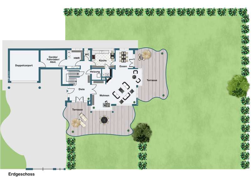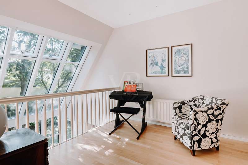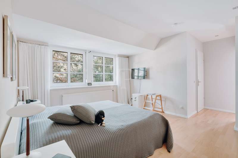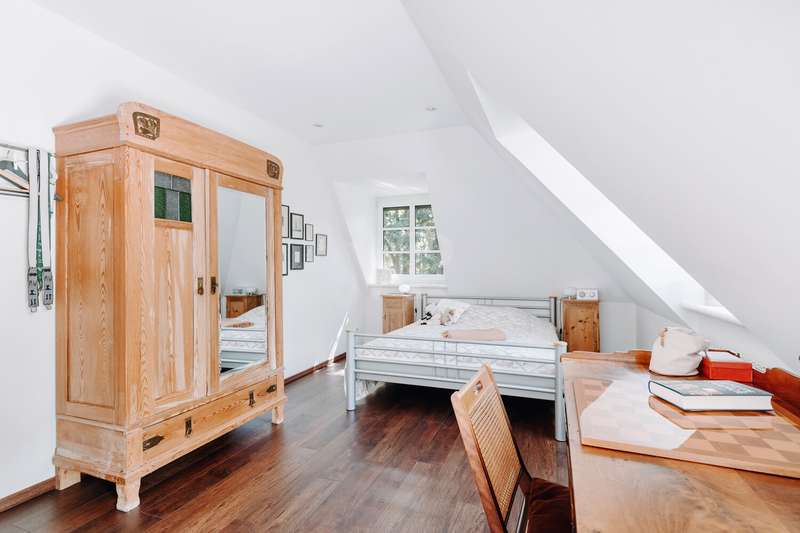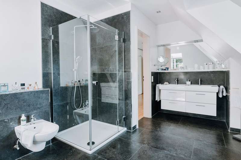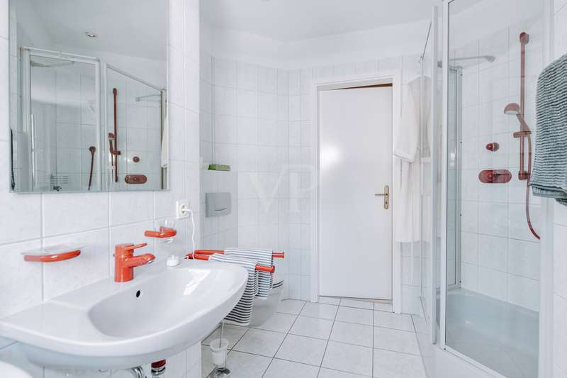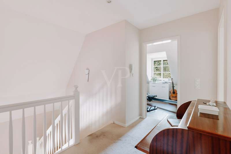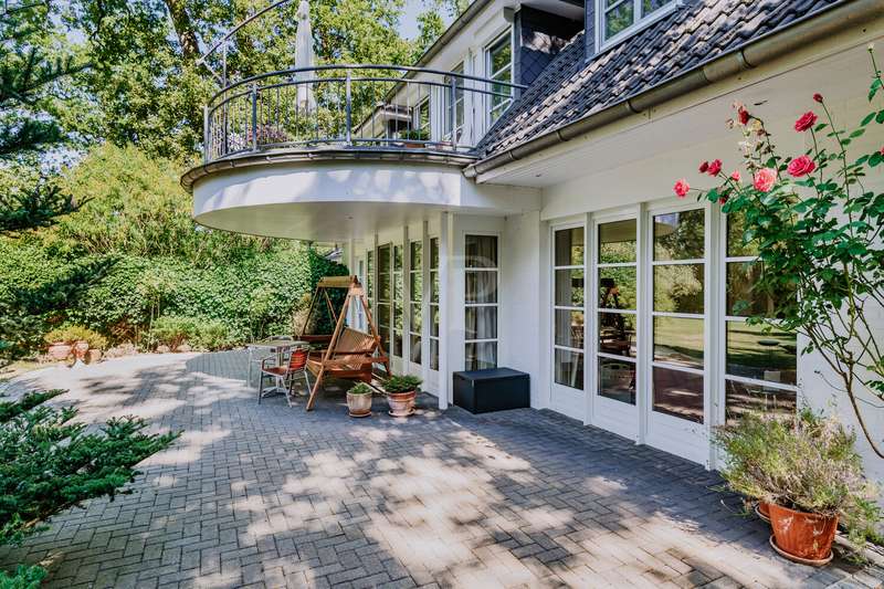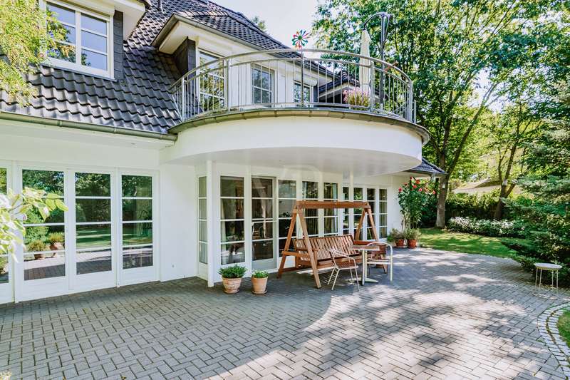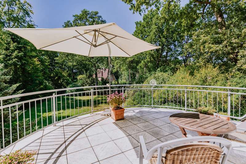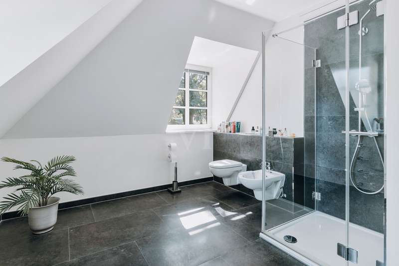 This extremely well-kept villa offers you an upscale living ambience in a quiet location on approx. 246 m² of living space. The property has been continuously modernized with great attention to detail. It has been in excellent condition ever since. The owners have continuously cared for the house and maintained its value so that there is no renovation backlog. The villa boasts a well thought-out room layout with a total of six bright and well-proportioned rooms. On the first floor, the spacious living and dining area welcomes you with floor-to-ceiling windows that create a light-flooded atmosphere and open up a wonderful view of the garden. Directly adjacent is the high-quality fitted kitchen with Miele appliances, which offers plenty of space for culinary activities. This area is complemented by a practical pantry with power points and plenty of storage space. A separate utility room with custom-made built-in cupboards offers additional convenience and organization. From here, there is direct access to the workshop and the covered bicycle storage area. From here, you have direct access to the carport and convenient access to the garden via a door at the rear. The master bedroom is located on the upper floor with direct access to the elegant master bathroom. This was completely renovated in 2013 and offers a spacious shower, a large double washbasin and a modern towel dryer - every detail has been thought of here. There are also two further generously proportioned rooms and a flexible room that is ideal for use as an office, children's room or dressing room. The floor is completed by a practical shower room, which offers additional comfort. From two rooms on the upper floor, you have direct access to the sunny south-facing balcony. This offers a wonderful view of the garden with its beautiful old trees and is ideal for both relaxing and working from home. Versatility and tranquillity are ideally combined here. Another practical feature is the separate shower room on this floor, which is also ideal for guests or children. All technical installations, including the heating system, have been regularly serviced and are up to date. A modern central heating system ensures a pleasant climate in all living areas. The outside area of this villa is particularly noteworthy: The lovingly landscaped garden is a true oasis of peace. With a great deal of care and gardening attention, a retreat has been created that offers both relaxation and space for play and leisure. The sunny terrace offers ideal conditions for relaxing hours outdoors. Three outdoor parking spaces and two further parking spaces in the carport right next to the house complete the attractive overall offer. This villa is ideal for families or couples looking for a very well-maintained home with low maintenance requirements. Arrange a viewing appointment and be inspired by this special property.