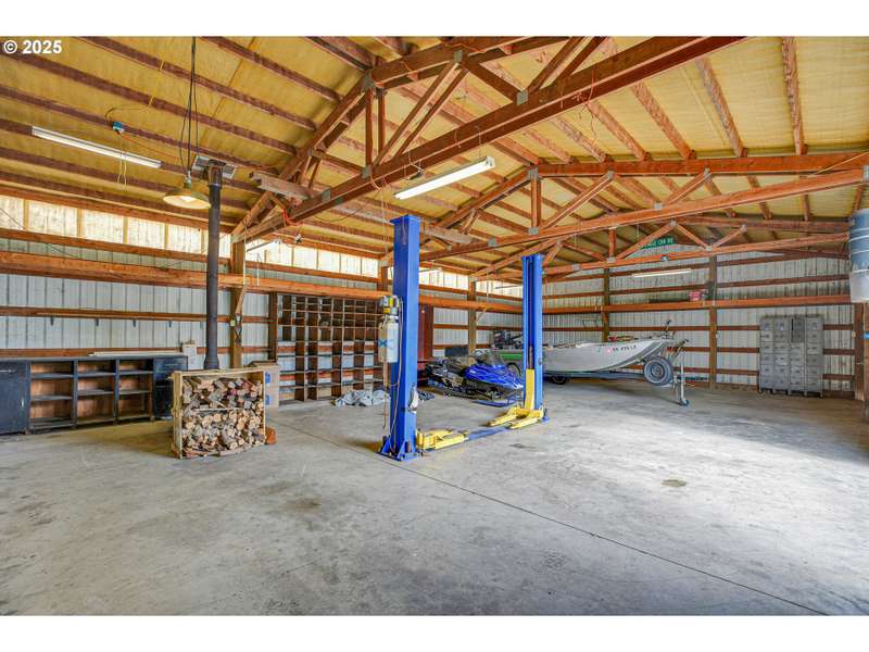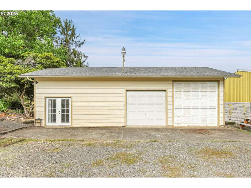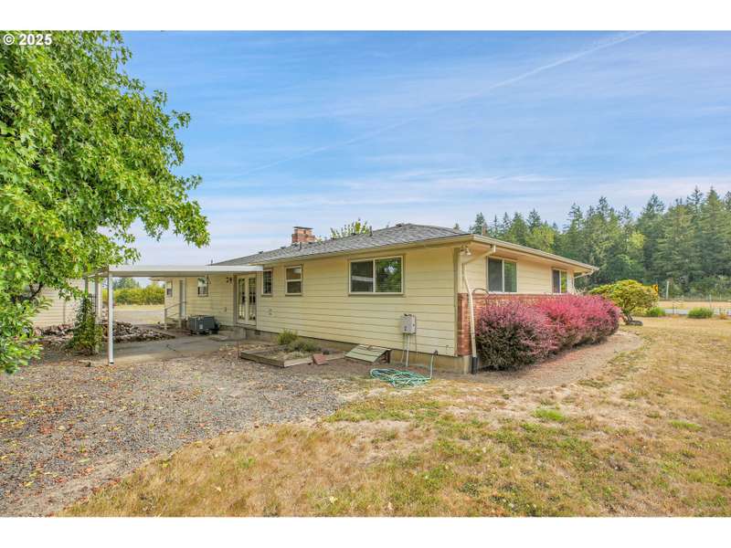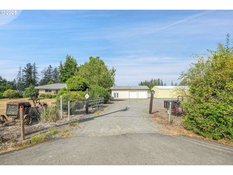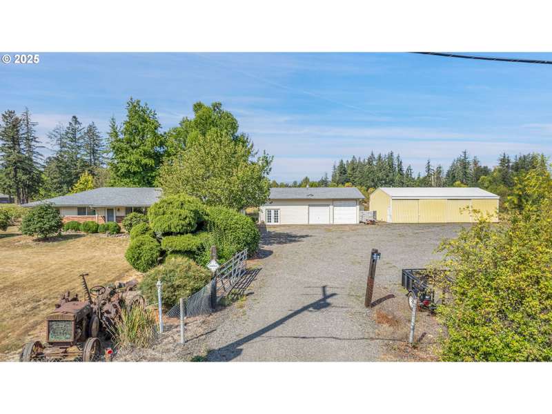 Heaven, Homesteading & Hobbies! Just west of the Clackamas River and only five minutes from Barton Park, this rural retreat offers both comfort and a plethora of opportunity. The level, fully fenced 2.35 acres include a 42’x24’ detached garage with finished areas adaptable to your needs, a 48’x30’ shop with a hydraulic car lift, and a 24’x20’ pole barn that can serve as storage or be converted to livestock use. The 1972 single-level ranch home spans nearly 2,000 square feet with 3 bedrooms, 2 baths, and generously-sized common spaces, including a large living room and family room. The master is ample and features double closets. There’s a full bath next to the laundry area, so no traipsing through the house to take care of business. Updates include vinyl windows, French Doors to the rear patio, a newer roof, and fiber-cement siding. Outside, you’ll find funky rural yard art, fruit trees, grapes, blueberries, and a greenhouse, along with two ponds—one smaller pond by the covered rear patio and a larger pond at the front tucked under some graceful weeping willows. With space to garden, raise animals, or pursue hobbies, this property provides the freedom of country living while remaining close enough for an easy commute. All appliances stay.