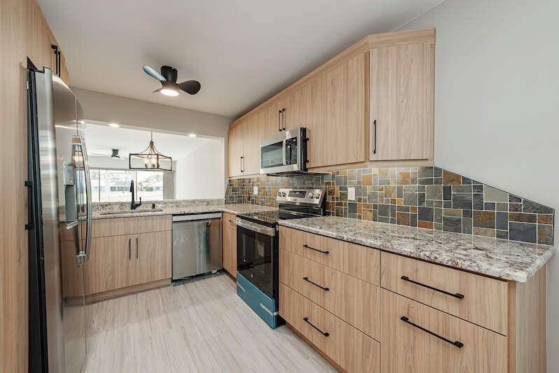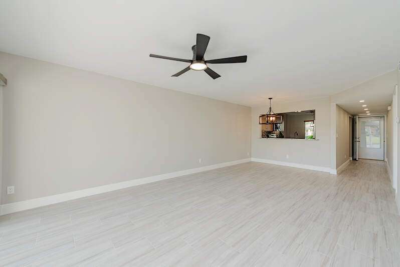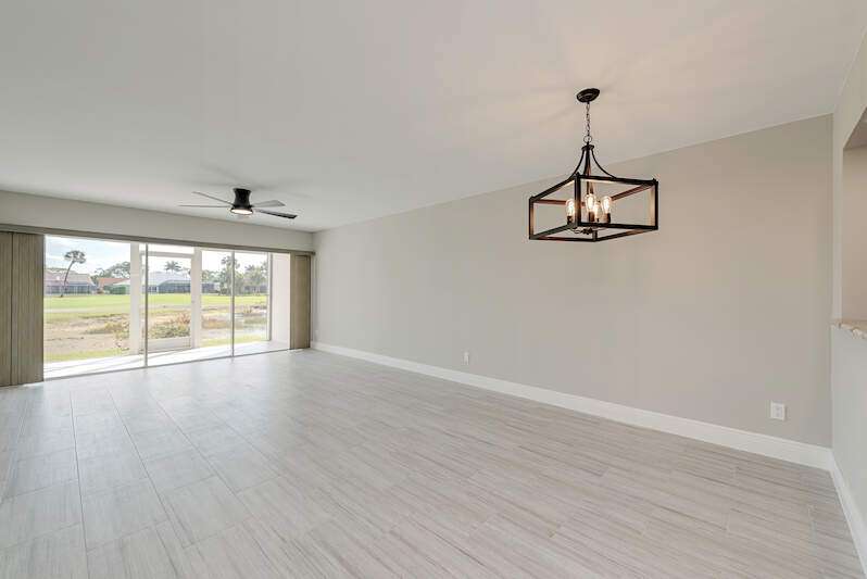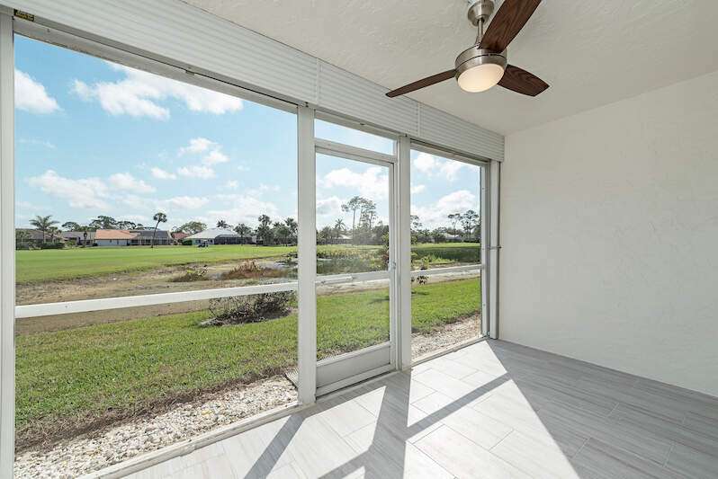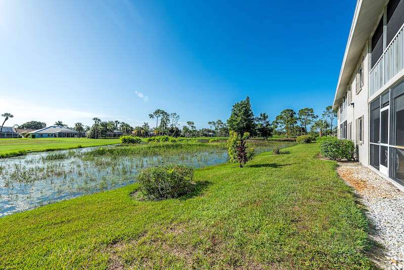 NEW, NEW , NEW. All new pictures of kitchen to come by 9/16/25 That is the only way to describe this outstanding first floor 3 bedroom condo. The entire kitchen is NEW. All of the soft close cabinets, the granite counter tops and tiled backsplash, along with the NEW stainless-steel appliances (which still have the packing paper inside). In the kitchen and great room you will find NEW ceramic tile, lights and molding. Step into the 2 guest bedrooms and find NEW ceramic tiled floors, fans and moldings. The guest bath includes NEW vanity, mirror, lights, toilet and remodeled shower with a classic NEW glass sliding type barn door. Walk into the master bedroom and again find NEW ceramic tile floors, fan, moldings and added cabinets to the walk-in closet, along with a NEW sliding barn door. The master bath features NEW, vanity, mirror, lights, toilet and retiled shower again with a NEW unique sliding glass barn door. Every electrical outlet and light switch is NEW. Also included is a brand NEW hot water heater and a NEW Air Conditioning system. NEW Washer and Dryer. NEW hurricane proof windows have just been added. All of this has been done with a NEW modern look and NEW a contemporary colored painting throughout. . About the only thing that isn't NEW is the view of the golf course, which you wouldn't want to change. Isn't it time for you to become the NEW owner??
