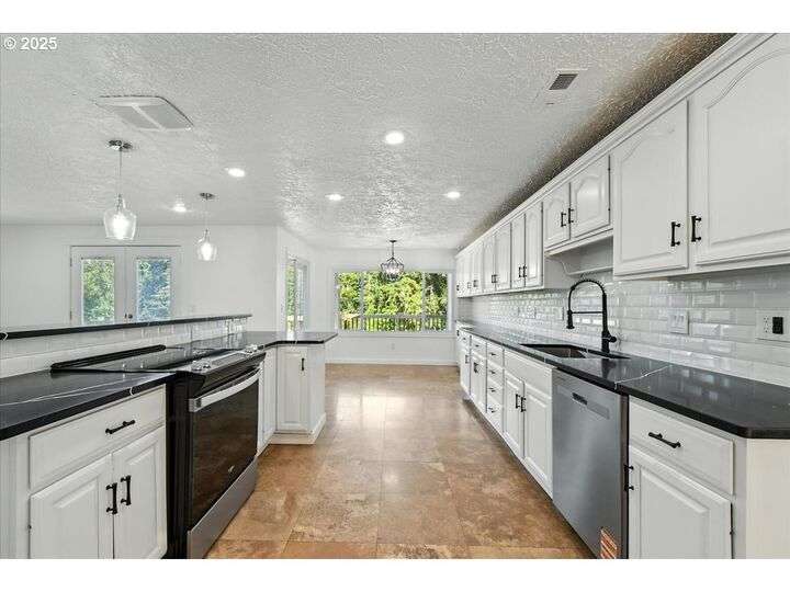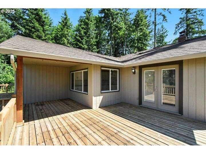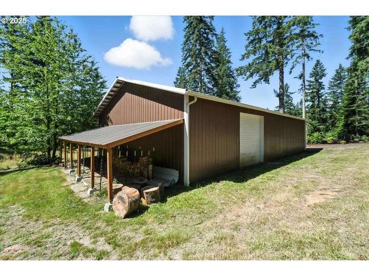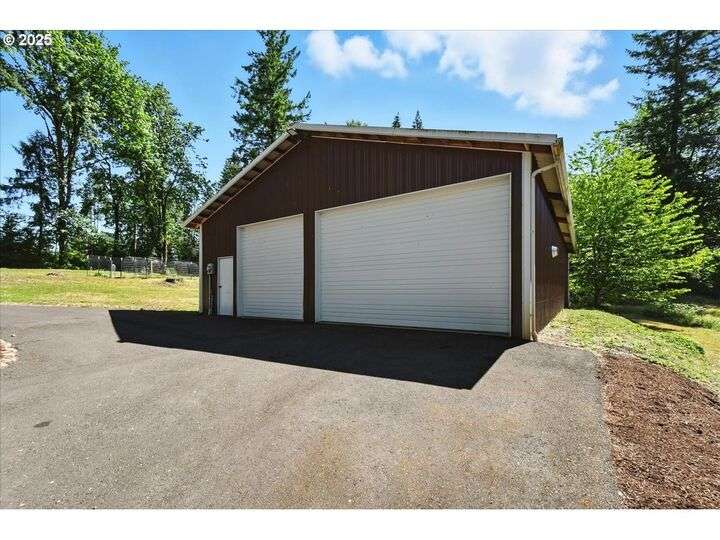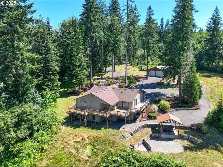 Custom built, daylight ranch, with separate living quarters in the basement, situated on 5 private acres with 2,160 square foot shop. The shop was built in 2013 & features a 1/2 bath, finished loft/bonus room, ample room for RV parking, 4 roll-up doors, wood stove for heat, & a lift for working on vehicles. Level & gentle sloping land with pasture area for farm animals, & borders seasonal Mason Creek on the west. Enjoy the sights & sounds of nature, as well as beautiful sunsets from the expansive wrap-around deck. Desirable, open floor-plan, with lots of natural light that floods in from the large picture-windows and multiple sets of French doors that overlook the property. The formal living has an impressive view of the multi-tiered, water feature with pond. Cooks will delight with the remodeled kitchen that features updated white cabinetry, slab quartz countertops, pantry closet, & new stainless steel appliances. Enjoy the warmth and coziness of the fireplace insert which can be enjoyed from the family room, kitchen, and dining area. Easy care Travertine stone and luxury vinyl plank flooring. You'll appreciate the wrap-around deck, that is partially covered by the dining area, to enjoy year-round. Primary suite has its own private deck area, and features a walk-in closet, and private bathroom. Washer & dryer hook-ups in the garage make the main level of the home fully contained. The living quarters in the basement has a paved driveway to the lower level and separate parking area. You’ll be surprised to see the 9’ ceilings when you enter, which gives it a spacious, open feeling. The lower level has an ideal layout for multi-generational living with living/dining rooms, fully equipped kitchen, utility room, bath, bedroom with walk-in closet, & office. Garden area is enclosed with deer proof fencing & raised beds. Raise your own farm fresh eggs with fully enclosed chicken coop with long run & large storage shed. Only 15 minutes to DT La Center/BG