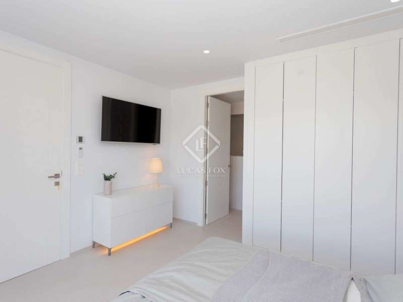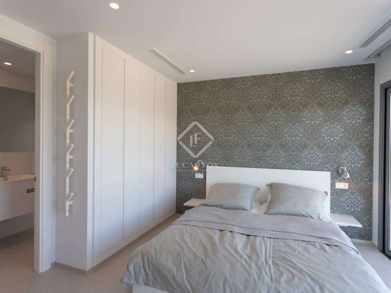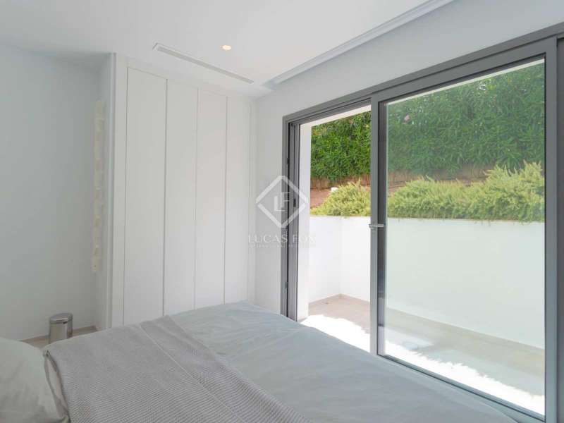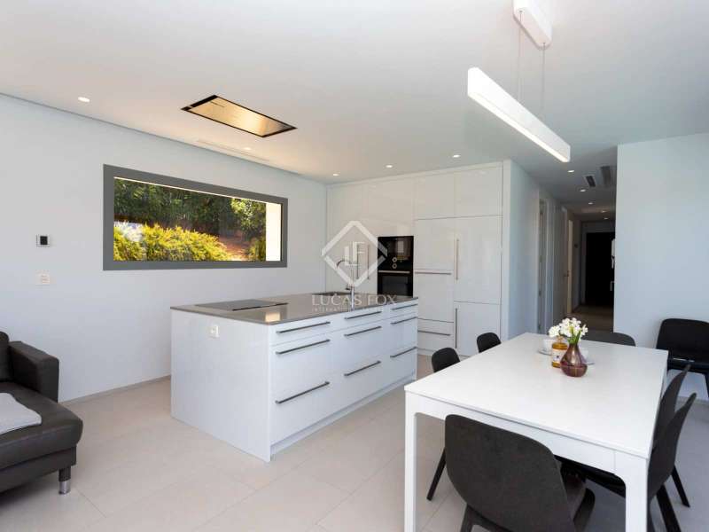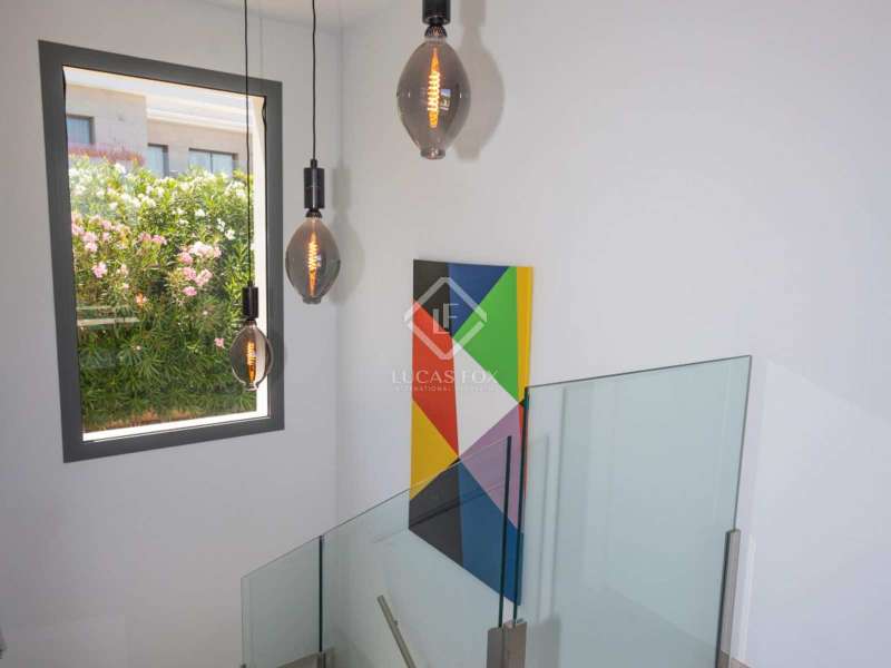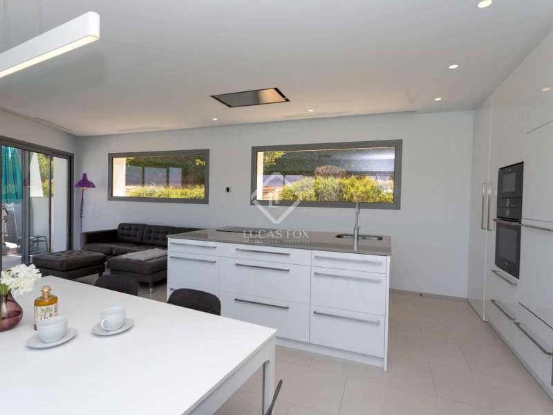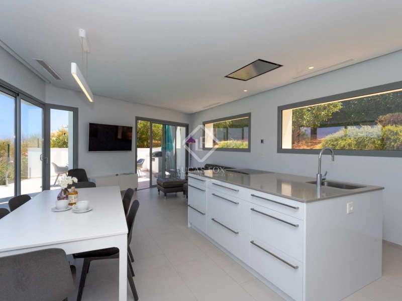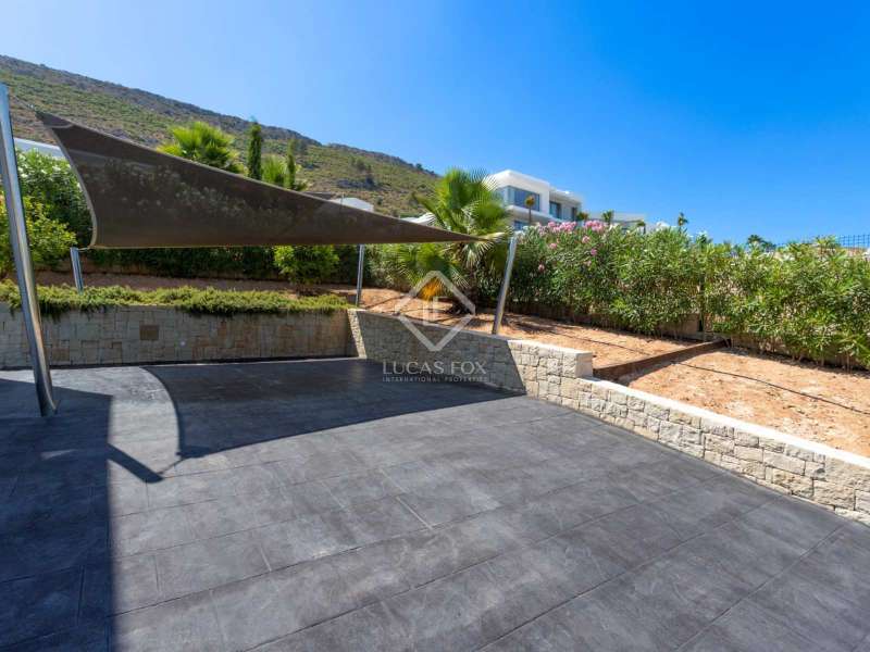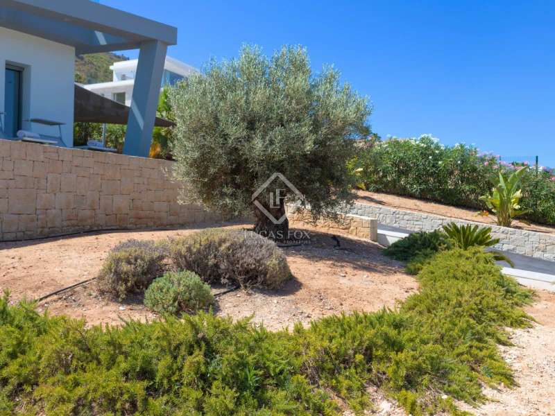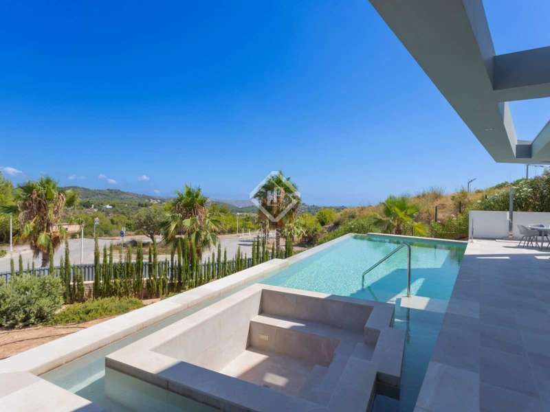 With views of the sea and montgó mountain, this fabulous property allows you to live in an exclusive area of great value with only first-class avant-garde villas. Spread over 2 floors, it has on the ground floor a living-dining room with large bay windows opening onto the outside and letting in natural light, a fully equipped American kitchen with Bosch appliances, an independent connected laundry room, and a courtesy toilet with sound system that will surprise you. On this floor there are also two large bedrooms each with access to terraces, fitted wardrobes as well as a bathroom with Porcelanosa shower and a storage room for your comfort. Outside there is a fantastic heated infinity pool with turquoise waters, sublimated by a wonderful chill-out built inside the pool, the perfect place to relax and admire the view. Surrounded by Mediterranean plants and mature trees, you will appreciate the beautiful marble terraces and the pretty summer kitchen equipped with a gas barbecue and sink, perfect for enjoying Spanish life. On the first floor are 2 large master bedrooms, each with its own bathroom, fitted wardrobes and private terraces opening onto the views of the Montgo and the Mediterranean Sea. The Villa has a carport for 2 cars, it is equipped with the latest technologies, such as the home automation system that controls the temperature of the pool and outdoor lighting. It also has solar panels, alarm system, wifi, electric indoor blinds, Panasonic aerothermy, an airzone system for underfloor heating and air conditioning, all independent in each room, automatic irrigation system in the garden, filtration system and automatic PH in the pool.