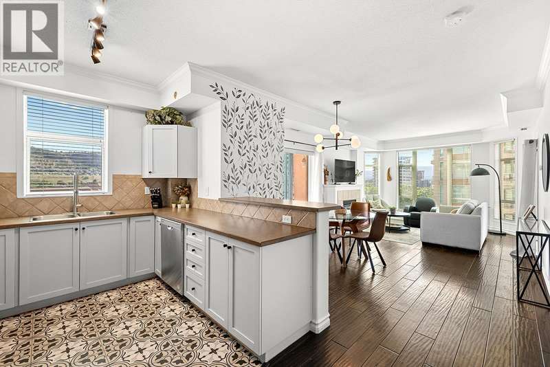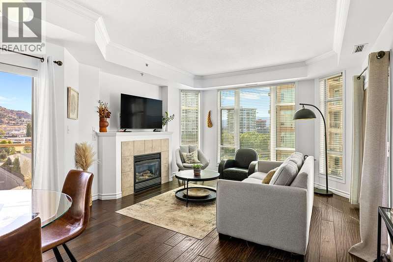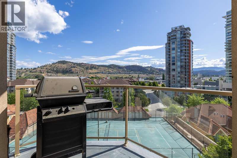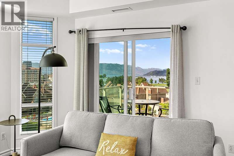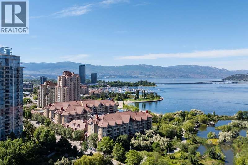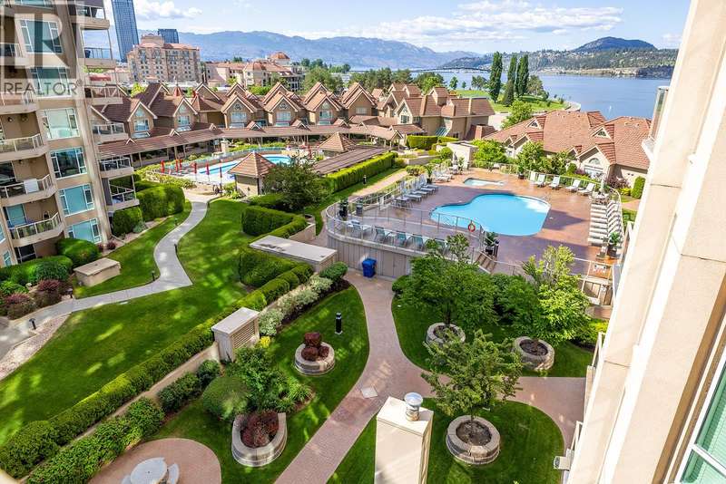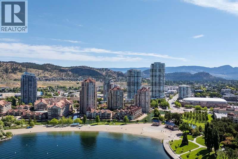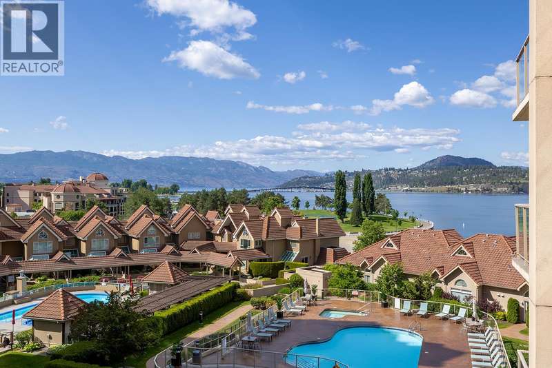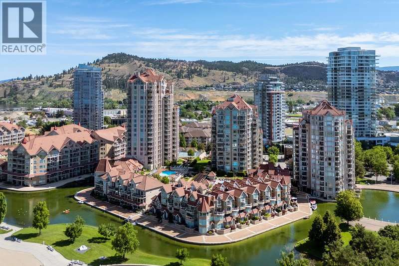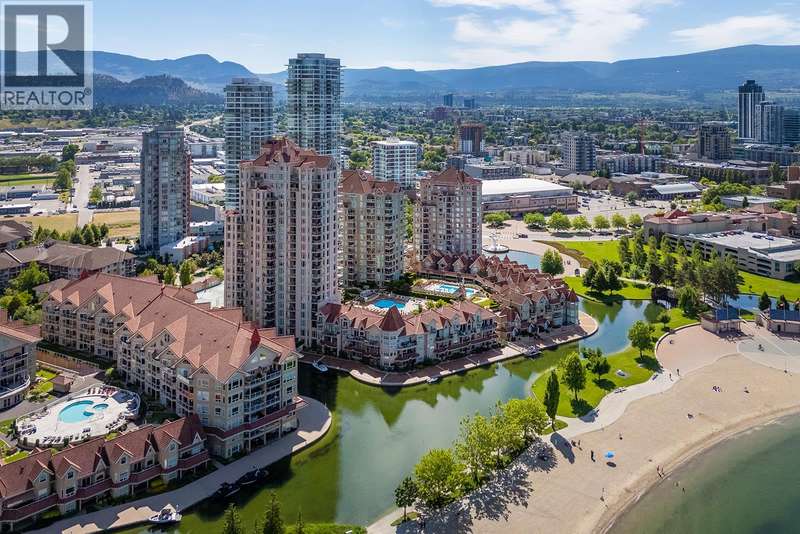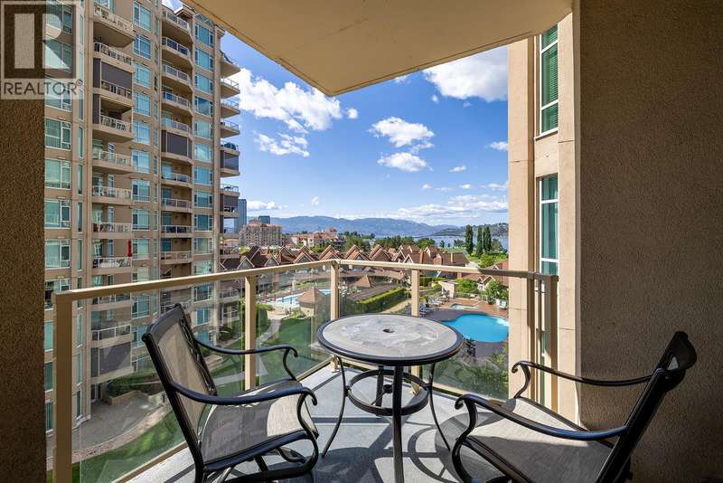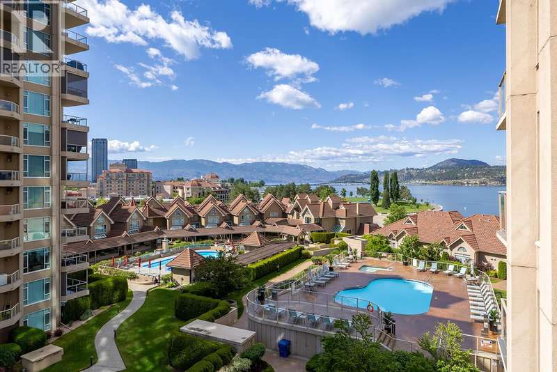 Experience luxury waterfront living in this 7th-floor corner unit condo, situated in the heart of downtown Kelowna. With panoramic views of the lake and the city, this 1 bedroom + den (easily used as a 2nd bedroom) unit offers an unmatched lifestyle of urban convenience. Two private decks offer the perfect oasis to take in Kelowna’s spectacular sunrises and sunsets over the lake and city skyline. The modern kitchen offers an eating bar that overlooks the dining area, ideal for entertaining or enjoying quiet meals with a view. Top it off with a resort-style building that elevates everyday living with indoor and outdoor swimming pools, hot tubs, a steam room, tennis courts, a fitness centre, and boat slips available via an annual lottery draw. The prime location offers residents a rich mix of culture, dining, shopping, and recreation, all just steps from your front door. Stroll along the waterfront boardwalk, explore boutique shops, enjoy live music and artisan markets, or dine in a plethora of restaurants. You're minutes from beaches, the yacht club, and nearby wineries, making every day feel like a vacation. Conveniently, the strata fees include your heat, air conditioning, and full access to all amenities, ensuring comfort and peace of mind year-round. Pet-friendly (with some restrictions), this unit also includes one secure parking stall and a storage locker. With every luxury at your fingertips, and the lake in your backyard, you can simply move in and enjoy Kelowna Life. (id:7434)