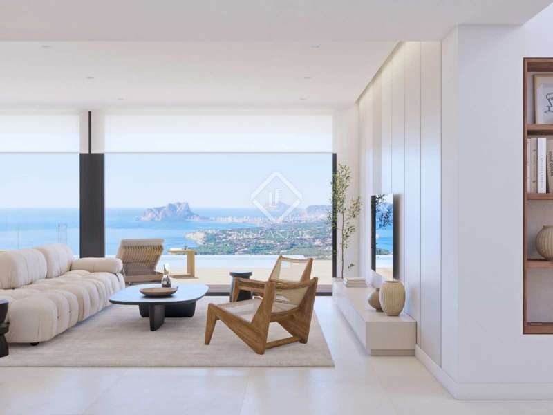 This luxury villa with spectacular sea views is ideal to live in with the family or to enjoy with friends. It is located at the top of Puig de la Llorençà, in the Residential Cumbre del Sol dominating over the residential area and with an unbeatable sea view. A unique and exclusive place in the North Costa Blanca region. Its modern architecture, based on straight lines, combined with the Mediterranean style blends perfectly with its surroundings. This villa has been completely designed to enhance functionality and comfort, without cutting back an ounce on design. The villa is surrounded by a large garden with indigenous plants and elements. A feature that particularly stands out is the natural stone walls. The villa has a private parking area on the top floor for up to two vehicles, since access to the villa is located on the same floor. Once inside, we will find two bedrooms with a private bathroom and terrace to be able to enjoy the sea views at any time of the day. We go down to the main floor where the main suite of this villa is located. A very spacious room with a modern walk-in dressing room with large wardrobes. The room´s private bathroom will surprise you, starting with its large size. Its equipment, based on designer bathroom fittings from renowned brands, together with the possibility of taking baths with sea views, make it one of the most exclusive places of this villa. The villa has a kitchen equipped with top brand electrical appliances and a large island where you can cook with your family or with friends on long days. The living room provides a warm atmosphere thanks to the wide open spaces and natural light, a perfect place to just relax. And to finish on this floor, an extraordinary infinity pool on the terrace, from where you can enjoy refreshing swims while contemplating the immensity of the sea. On this same terrace we can find a covered area, which will allow you to enjoy the outdoors practically all year round, thanks to the mild climate of the area. The basement is a wide-open empty space ready for you to customize it however you like. It could be turned into a fourth bedroom, an office, a games room or even a gym. The options are endless. The villa is equipped to the standards of it. It has high range services: a furnished kitchen with designer furniture, top brand electrical appliances, under floor heating…, take a look at the quality report, it will no leave you indifferent. All these features make Villa Delfín a perfect option to enjoy a Mediterranean lifestyle. - These images are illustrative and correspond to the selected model adapted to a certain plot, consequently, being built on this plot will imply changes on the facades and components, resulting from adapting it to the land. This project is subject to its adaptation to the modifications derived from the changes in the Technical Building Code, contemplated in the Royal Decree 732/2019, recently entered into force, that could pose technical changes and/or in its price. -