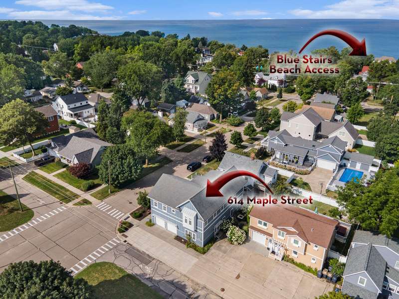 Premier Investment Opportunity just two blocks from South Beach! This exceptional 5-bedroom home holds coveted Business STR permits with an occupancy of 16, presenting a rare opportunity for investors. Ideally situated just two blocks from the Blue Stairs beach access and one block from Kid's Corner Park, the home is designed for flexibility and can be rented as one expansive retreat, with each floor featuring its own kitchen, living space, and laundry-perfect for maximizing rental potential or accommodating multi-generational stays. Outdoor living spaces provide a tranquil setting to unwind and enjoy the sounds and views of Lake Michigan. With a proven rental history and an unbeatable location, this is a rare chance to own a premier short-term rental or idyllic getaway.