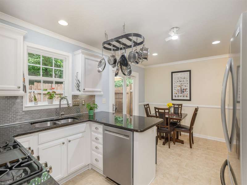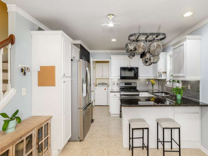NEW PRICE..NOW $300,000 for this updated condo. You'll love the real hardwood floors, the crown molding and chair railing on the main level. Great cook's kitchen with white cabinets, extra pantry, beautiful granite counters that are large enough for comfortable stools for your morning coffee! Enjoy cooking on a natural gas stove and the cool pot rack stays! Off the kitchen is a convenient main level laundry that includes extra storage. The attached garage has storage plus a drop down work bench perfect for all projects and crafts! Walk out the new back doors to your private oasis. The privacy fence gate opens to a green area (not another condo) behind. Upstairs is fresh, clean and bright with brand new carpet. Add to the list of updates, a recent heat pump, a gas hot water heater, and include a driveway big enough for 2 cars and the sweet location in Stafford Hills with visitor parking nearby....and You will be ready to MOVE-In!Builders original blue prints @1,311 sq ft. Professional measured interior @1,236 sq ft