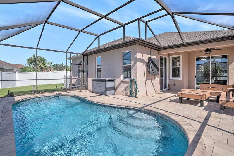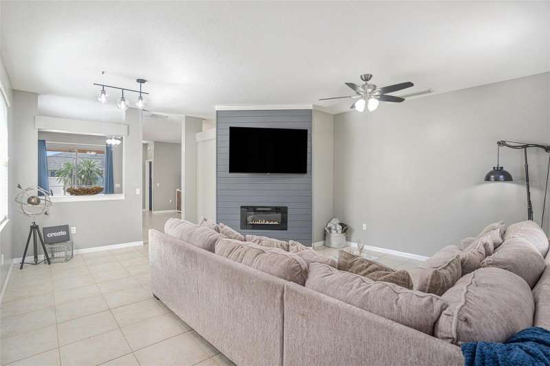 Enjoy the ease of maintenance-free living in this beautifully maintained 3-bedroom, 2-bath home, ideally located in a sought-after golf community with no CDD fees. This block-constructed home offers 9 foot ceilings and an open-concept layout, perfect for both everyday living and entertainment. The freshly painted kitchen and family room create a bright, inviting atmosphere, now enhanced by a brand-new electric fireplace that adds warmth and charm to the space. The spacious master bedroom features a private ensuite bathroom for added comfort and convenience. Step outside to your own private oasis—a heated saltwater inground pool with gas heating, all enclosed under a screened lanai. The backyard has been thoughtfully refreshed with new vinyl fencing and updated landscaping, providing a clean, low-maintenance outdoor space that’s perfect for relaxing or entertaining. Also, a great place for your furry friends. A New Roof installed in 2020 adds even more peace of mind. The garage is currently used as an office and storage but can easily be converted back to full garage by seller. The Low HOA fee covers the homeowners personal lawn care and irrigation, community pool, and maintenance of community grounds, allowing you to enjoy a worry-free lifestyle. Within Greenfield Plantation is a public golf course, the Links, along with Greenfield Bar and Grill. The property is located in Flood Zone X. This community is conveniently located near Lakewood Ranch, with easy access to I-75 and nearby airports, this home offers the perfect blend of comfort, convenience, and the Florida lifestyle. Don’t miss your chance to own this move-in ready gem!