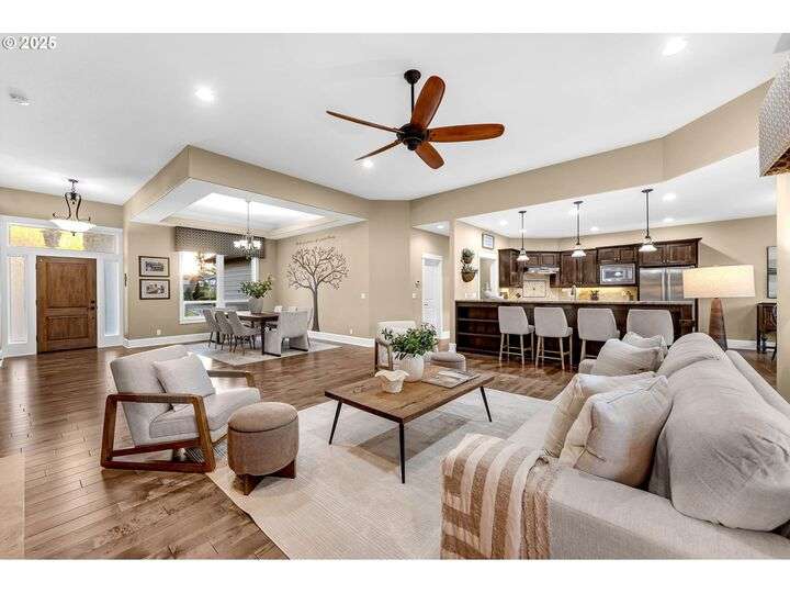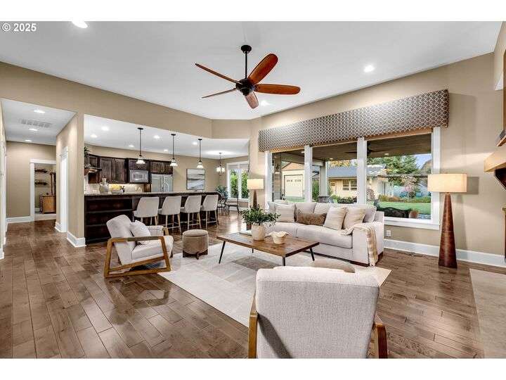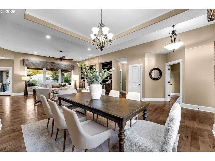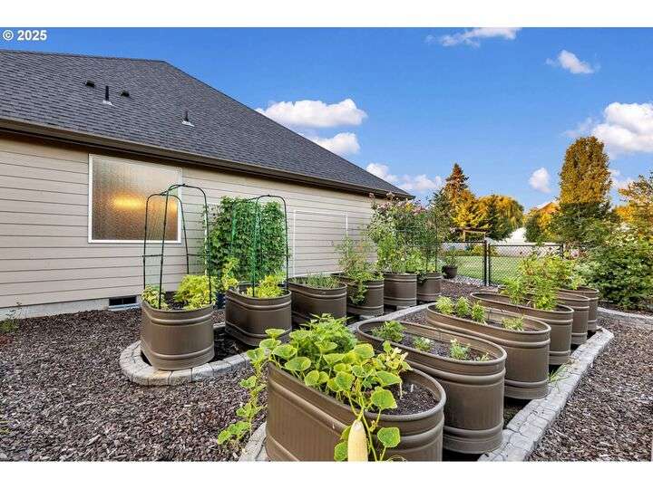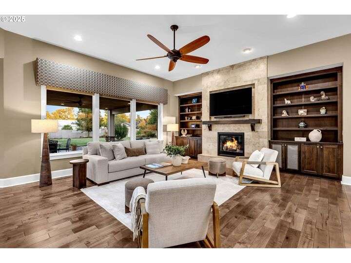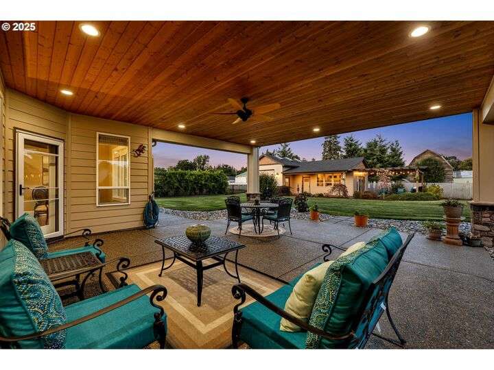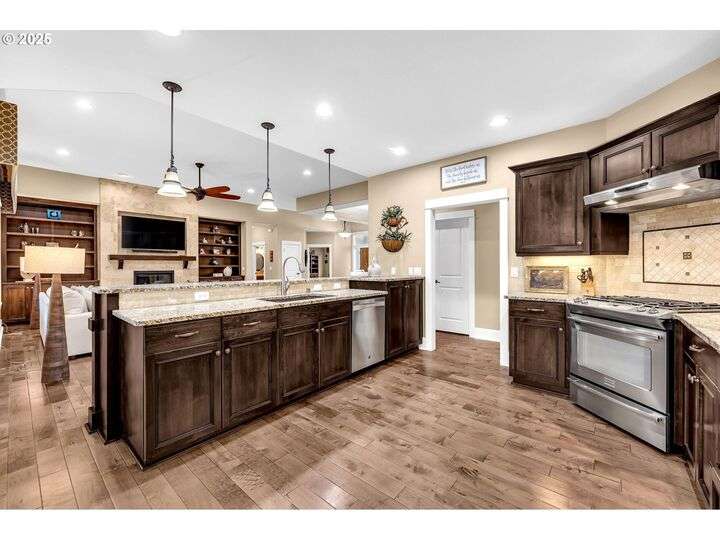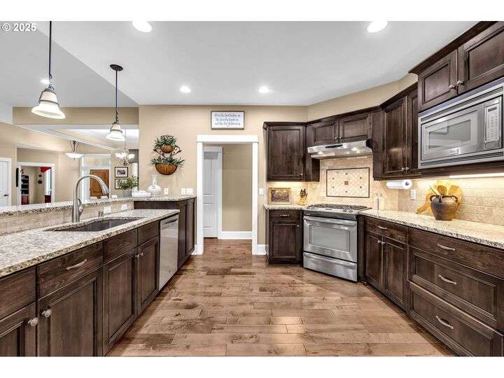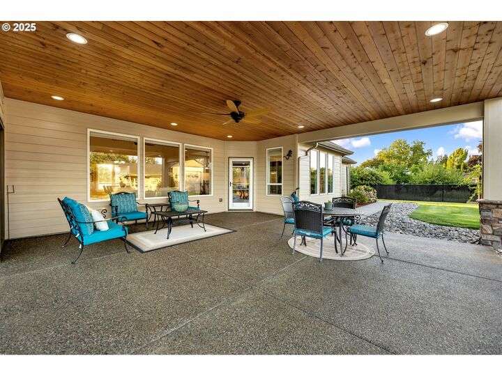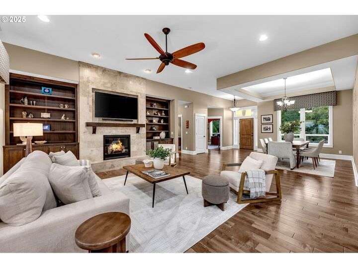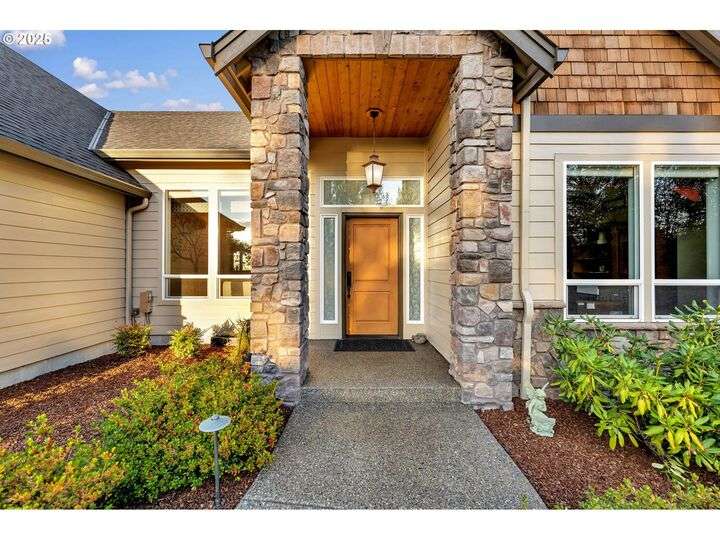 Gentleman's estate in Whispering Meadows. One acre level property w/ private entrance welcomes you to this impeccably maintained home. Inside you'll enjoy an open living plan w/ high ceilings & large windows. The great room is spacious w/ engineered hardwood featuring floor to ceiling stone fireplace w/ built in cabinetry & bookshelves. Formal dining w/ eng hrdwd & lighted coved ceiling. Chefs kitchen enjoys eng hardwood flooring, solid granite counters, 4 chair seating bar, stainless gas range w/ stainless hood, walk-in pantry & large nook with access to the expansive wood tongue & groove covered patio. Spacious Primary bedroom features coved lighted ceiling w/ access to covered patio. Primary bath w/ walk in tiled shower, jetted tub, double vanities, separate water closet & large walk in closet w/ window & built-ins. Two additional bedrooms w/ Jack & Jill bath.3 car garage w/ built-in cabinetry/ storage. Shop features 10' door w/ separate 220 amp electrical service, skylights & storage cabinets. Vaulted studio w/ French doors to huge pergola covered patio, full bath & planned space for kitchenette. Professionally landscaped grounds w/ lit pathways, trellis w/ grapevine & raised garden beds. Newly painted exterior w/ shake stain & freshly sealed driveway, patio's & walkways. Permitted 18x26 shop & 18x24 vaulted studio built in 2018. Open House Sat/6th 12:00-2:00