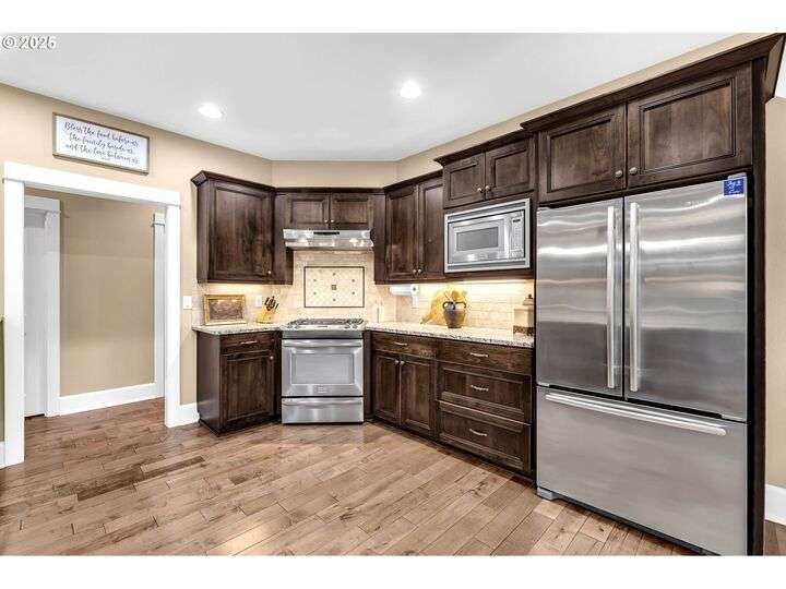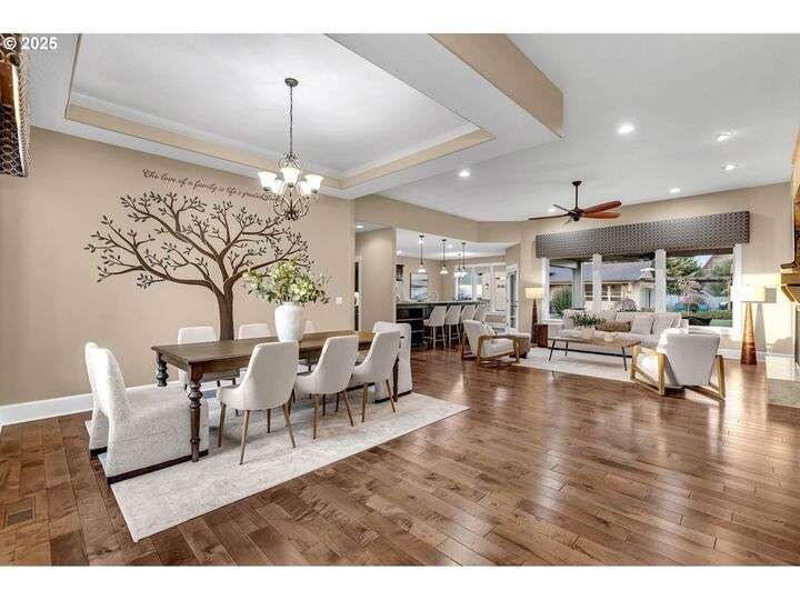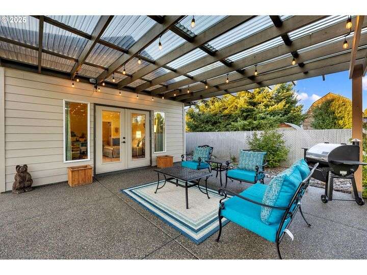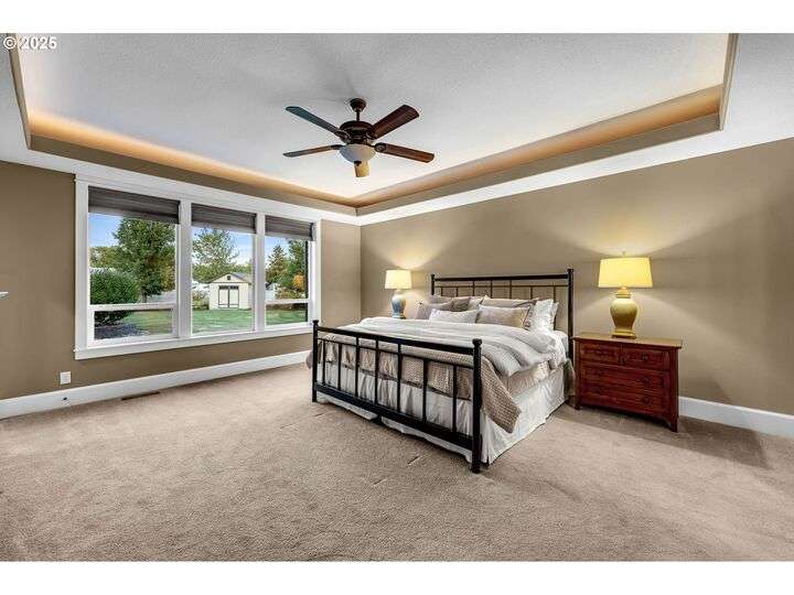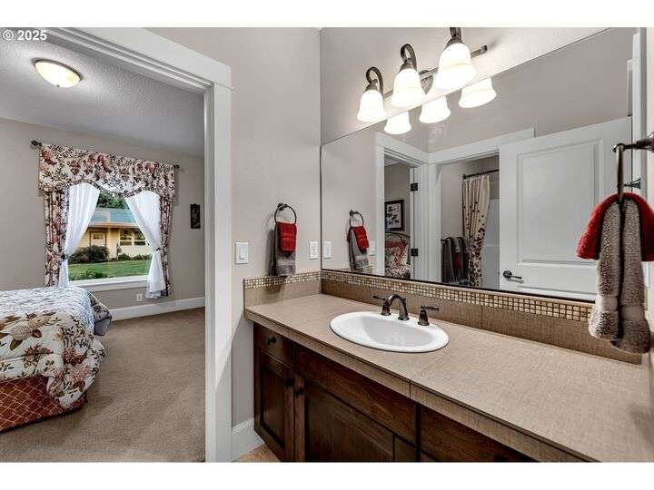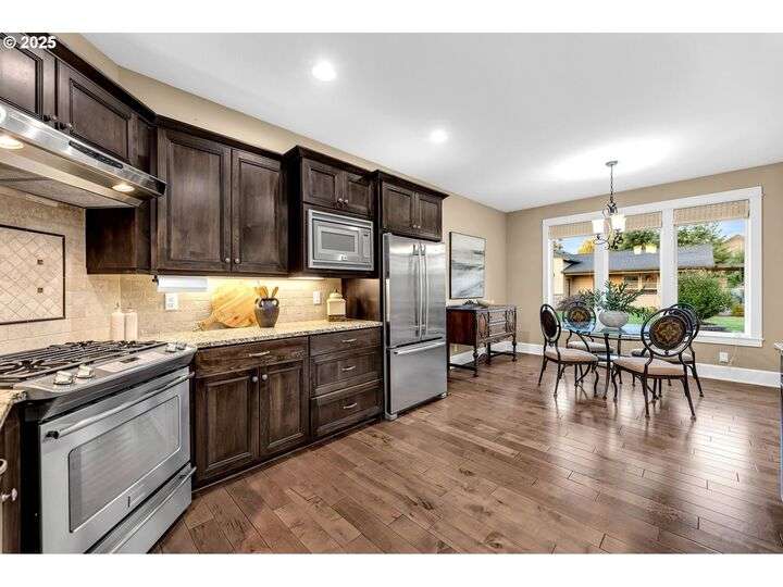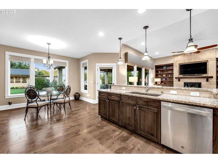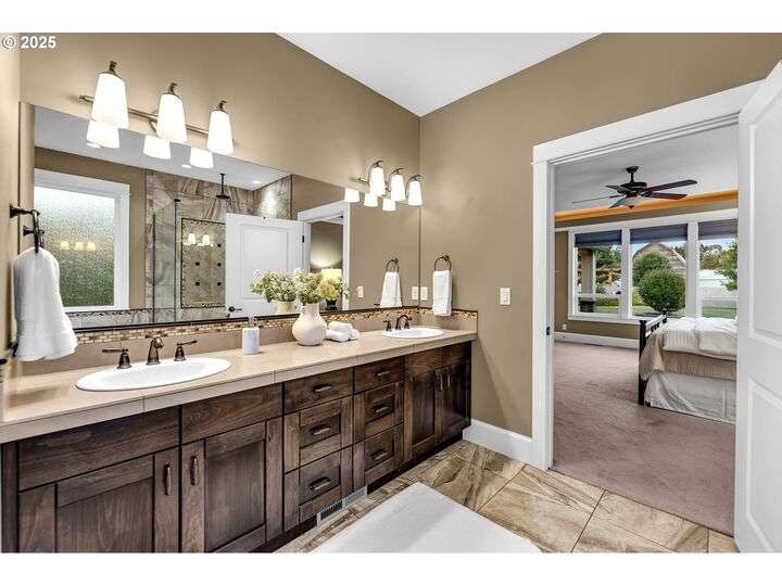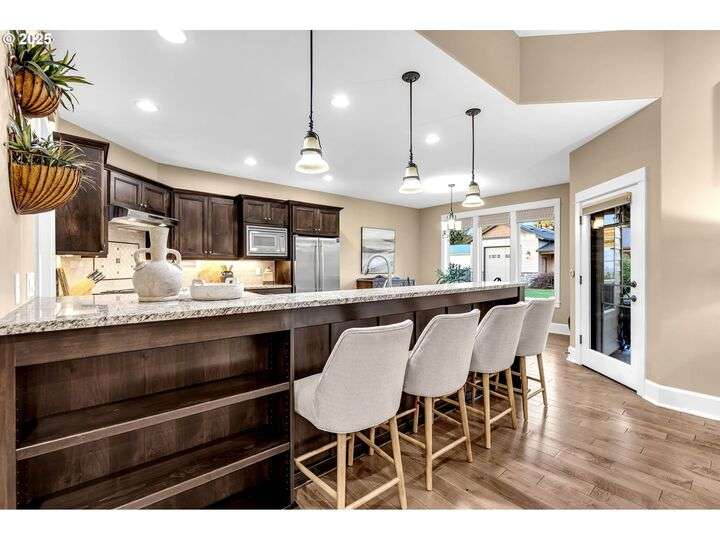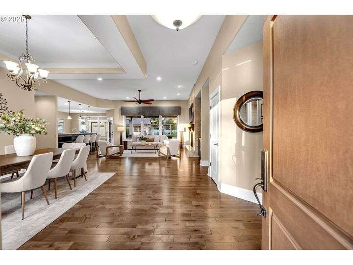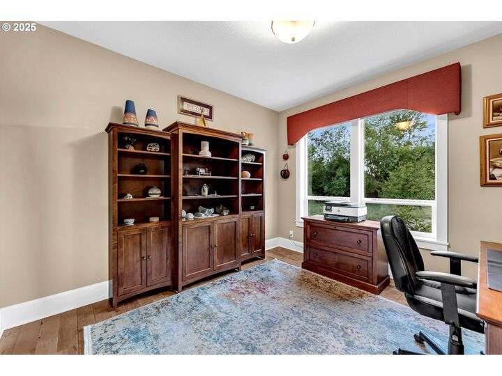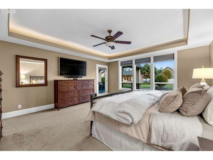 Gentleman's estate in Whispering Meadows. One acre level property w/ private entrance welcomes you to this impeccably maintained home. Inside you'll enjoy an open living plan w/ high ceilings & large windows. The great room is spacious w/ engineered hardwood featuring floor to ceiling stone fireplace w/ built in cabinetry & bookshelves. Formal dining w/ eng hrdwd & lighted coved ceiling. Chefs kitchen enjoys eng hardwood flooring, solid granite counters, 4 chair seating bar, stainless gas range w/ stainless hood, walk-in pantry & large nook with access to the expansive wood tongue & groove covered patio. Spacious Primary bedroom features coved lighted ceiling w/ access to covered patio. Primary bath w/ walk in tiled shower, jetted tub, double vanities, separate water closet & large walk in closet w/ window & built-ins. Two additional bedrooms w/ Jack & Jill bath.3 car garage w/ built-in cabinetry/ storage. Shop features 10' door w/ separate 220 amp electrical service, skylights & storage cabinets. Vaulted studio w/ French doors to huge pergola covered patio, full bath & planned space for kitchenette. Professionally landscaped grounds w/ lit pathways, trellis w/ grapevine & raised garden beds. Newly painted exterior w/ shake stain & freshly sealed driveway, patio's & walkways. Permitted 18x26 shop & 18x24 vaulted studio built in 2018. Open House Sat/6th 12:00-2:00