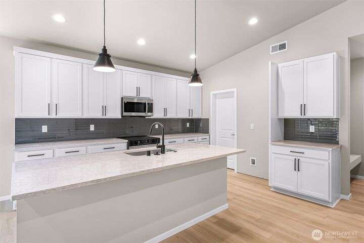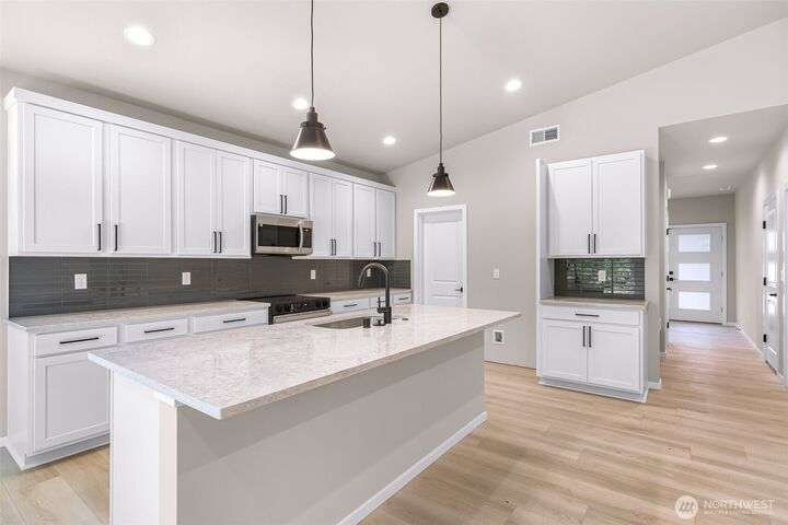 Last chance for this Great Plan offered by MTT Homes. The 2194, Primary on Main, 4 Bed + office, has spacious Great Room featuring a large Island Kitchen with, stainless appliances, Quartz Counter tops, with Tile backsplash. Great room w/ fireplace. Dining area leads to outdoor, private covered patio. Primary bed on main, bath with Quartz counters, shower, walk-in large closet. Den or Office on main. 3 beds up and Loft up. Covered front porch, whole home forced air with A/C. Close to downtown Blaine and Canada for shopping, dining, golf, boating and all recreational activities. Special Finance options!