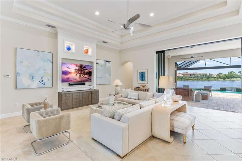 Experience the Best of TwinEagles Living. Discover a rare opportunity to enjoy wildlife, world- class amenities, and immediate access to golf with a deeded golf membership included. Imagine playing on the very day of closing on one of two championship 18-hole golf courses. From the moment you enter the gates of TwinEagles, you ll feel like you re on vacation. Spanning 1,115 acres of natural tranquility and adjacent to a large nature sanctuary, this Audubon-certified community is home to deer, wild turkeys, and abundant birdlife. With 36 holes of championship golf, shimmering lakes, and serene preserves, TwinEagles is one of Southwest Florida s premier golf communities. This elegant 3,940 sq. ft. home blends sophistication with comfort, offering 3 bedrooms + den, a bonus room, 3 ensuite baths, and 2 powder rooms. Designed with open-concept living and effortless entertaining in mind, the home boasts expansive lake and golf course views, upscale finishes, and thoughtful upgrad