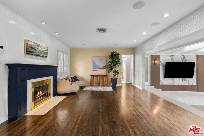 Imagine thriving in this delightful, updated traditional home, perfectly situated on an expansive, tropical landscaped corner lot. From the moment you step onto the charming front porch, you'll feel the warmth and welcoming embrace of a true family home. The open and bright interior, featuring beautiful hardwood floors and elegant plantation shutters, offers a comfortable and stylish backdrop for daily life. With dual-pane windows, newer AC/heat, and copper plumbing, this home is ready for your family to move right in and start making memories. The gourmet kitchen, a chef's dream with granite counters and stainless steel appliances, is ready for everything from quick breakfasts to elaborate holiday feasts. The serene master bedroom suite, with its exposed beam ceilings, boasts an en suite bath with a luxurious spa jet tub and a large walk-in closet a perfect retreat for parents. Two additional spacious bedrooms share a beautifully updated full bath, providing comfortable havens for children or guests. The living room, complete with a cozy fireplace, seamlessly connects to the bright dining room, where skylights fill the space with natural light and offer views of a charming side patio ideal for quiet moments. Get ready for endless fun and unforgettable moments in the resort-style backyard, a true tropical escape! This is where the magic happens, with a gorgeous sparkling pool as the centerpiece for summer adventures. The fully equipped outdoor kitchen, combined with multiple patio areas (one for al fresco dining and another with an inviting fire pit overlooking the pool), creates the ultimate setting for lively family gatherings and entertaining friends. This isn't just a backyard; it's a dedicated play space, a party hub, and a peaceful retreat all rolled into one, promising a vibrant outdoor lifestyle. You'll also appreciate the large fenced utility area, perfect for a garden, extra storage, or whatever your family needs!