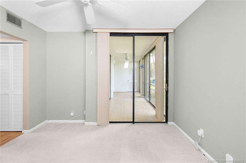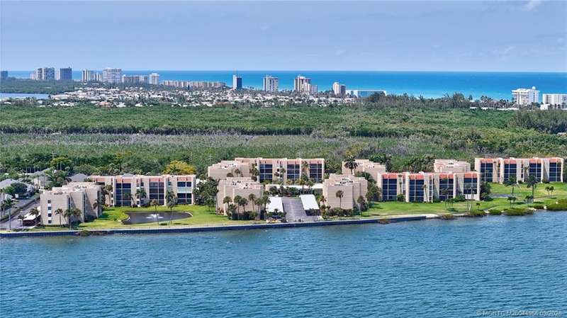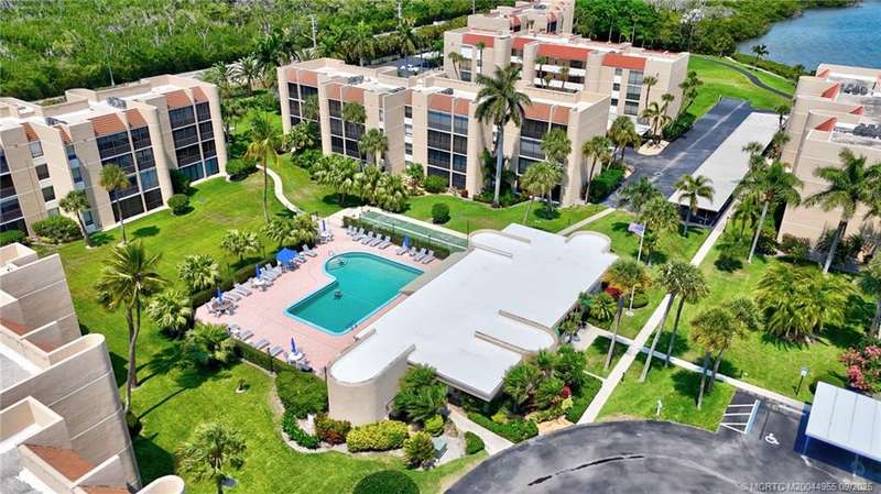Discover the serene riverside lifestyle you've been dreaming of with this 2-bedroom, 2-bathroom corner unit condo, ideally situated on the first floor. Revel in breathtaking water views from the comfort of your condo, amplified by a host of amenities designed for an active and engaging community. Enjoy friendly rounds of pickle ball, tennis, or indulge in some tranquil fishing, all just a half-mile journey from the pristine beach. The heart of the community, the clubhouse, welcomes you with a well-stocked library, pool table, fitness center, full kitchen, and ample space for hosting events. Outside, two sparkling pools beckon for a refreshing dip, while a picturesque walking path along the river provides a serene escape into nature. Inside your new condo, modern living awaits with an updated kitchen featuring efficient LED lighting, and sleek plantation shutters. Your private lanai invites you to step out and immerse yourself in the riverside ambiance.