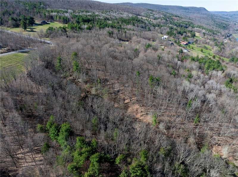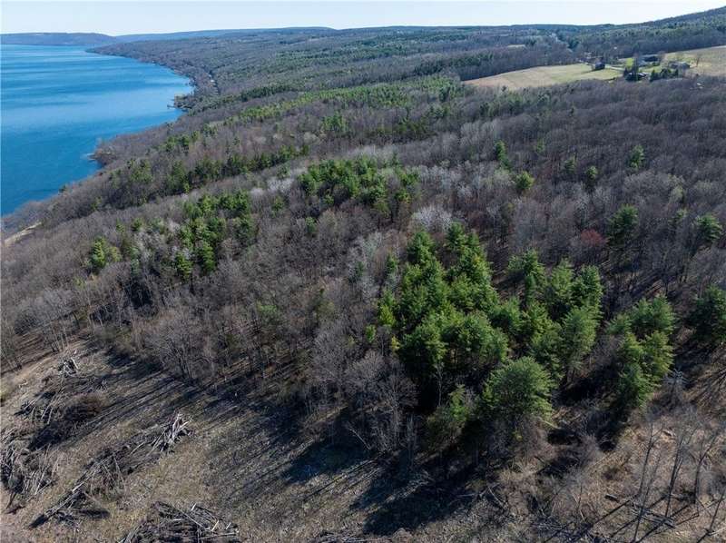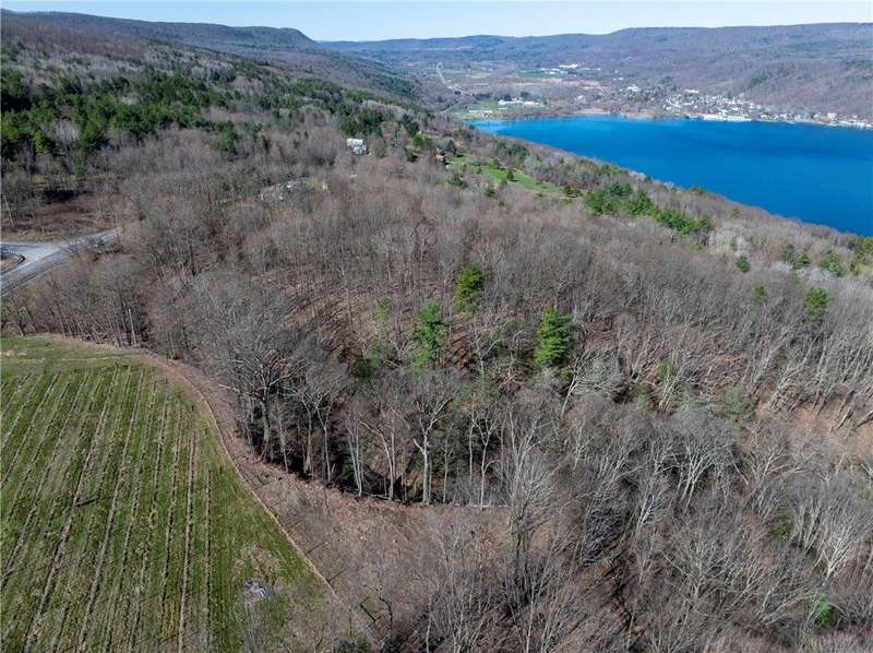 Exceptional Land Parcel - Eastside of Keuka Lake: 24 Acres of Wooded, Prime Building Lot with road frontage on State Route 54 and County Route 87. Some lake views now, but multiple opportunities to expand and open up spectacular lake views and westside views. A creek borders the north side of the lot. The lot slopes down towards the lake, but then levels out which provides an ideal location to build a home(s). Unique potential for development. Just up the hill from the Village of Hammondsport, boat launch, public beach, restaurants, wineries, breweries, distilleries and museums.