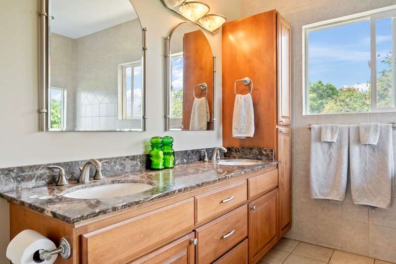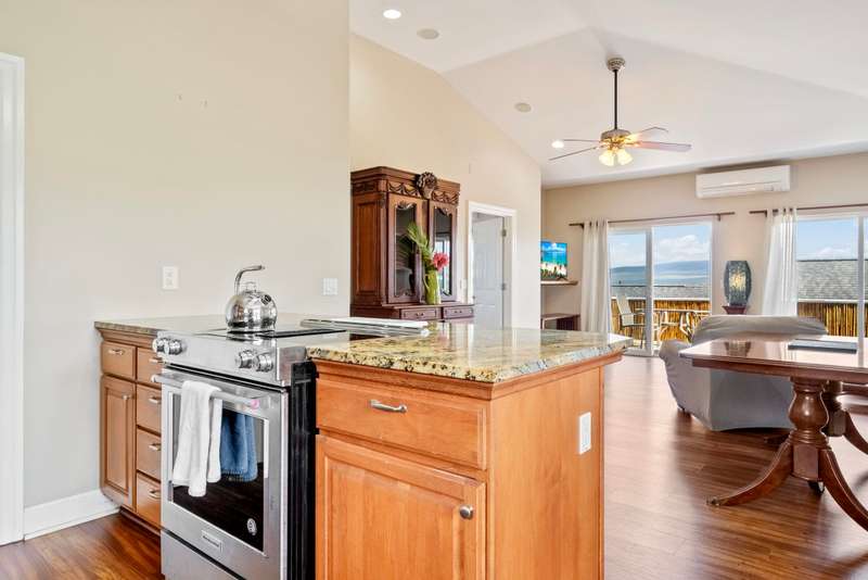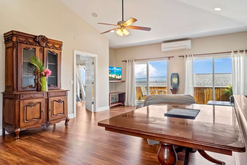 Tucked away in Old Sandhills, you’ll find this amazing gem of a home: beautiful views, updated kitchen and bath, gorgeous luxury vinyl plank floors upstairs, and a spacious downstairs with large bedrooms and a big family room. This home also features a wonderful attached Ohana. Incredibly private, tucked at the end of a flag lot. There’s a beautiful covered, enclosed screen porch with a Koi pond, a three-car garage and a work shed, plus 16 owned photovoltaic panels. Close to great surf and kiteboarding spots on the North Shore, This truly is a wonderful home in Wailuku.