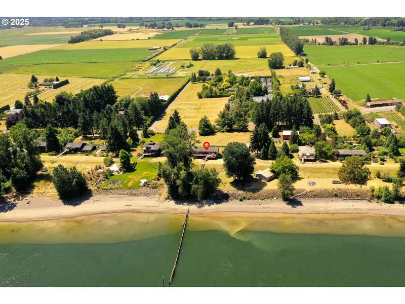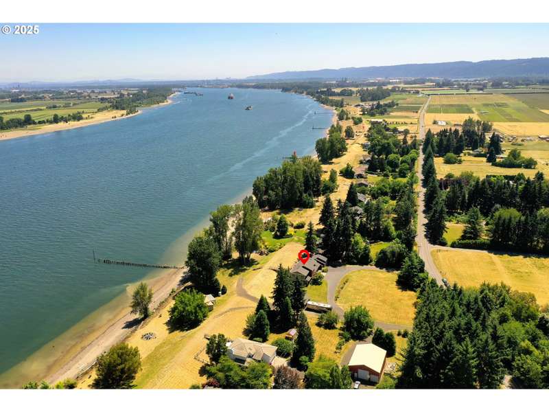 Island Living at Its Finest – Don’t miss this extraordinary opportunity to own 2.57 acres with approximately 220 feet of Columbia River frontage, a truly rare find on sought-after Sauvie Island. This meticulously maintained property offers the perfect blend of comfort, style, and adventure with private beach access right in your own backyard! The thoughtfully designed floor plan features a gourmet kitchen with stainless steel appliances, granite countertops, gas cooktop, Sub-Zero refrigerator, red oak floors and direct access to a large patio, perfect for entertaining. The vaulted living room boasts new carpet, gas fireplace, custom built-ins, warm wood windows with river and mountain views throughout. Step outside to a high-end Deckorator brand deck and staircase, leading to a sandy beach ideal for kayaking, fishing, birdwatching, or simply relaxing by the water. Additional features include an office/den, large laundry room, oversized two-car garage with loft storage, a detached shop, barn, RV/boat parking, and newer shed for all your gear and beach toys. This is more than a home, it's a lifestyle. Schedule your showing today and experience the magic of riverfront living!