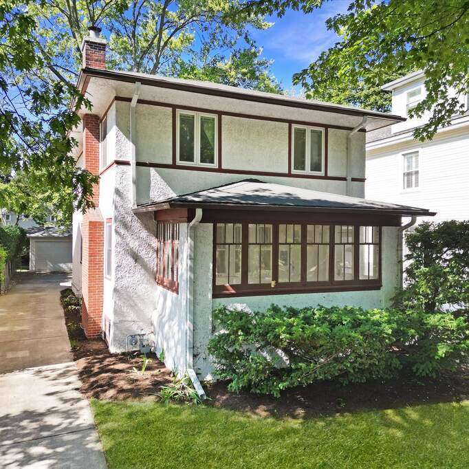 MULTIPLE OFFERS RECEIVED, BEST OFFERS DUE MON 9/29 AT 2PM. Situated on a quiet street in east Wilmette, this charming four-square home has been lovingly maintained by the same owner for nearly 40 years. Streaming sunlight throughout, you enter through a front porch that leads to the large living room with fireplace and entertaining sized dining room. Both are spacious and lead to the kitchen with pantry. First floor full bath. A small mud room area adjacent to the kitchen leads to the deck, yard and 2 car garage. The second floor has 4 bedrooms plus a tandem room that was added about 30 years ago and a full bath completes the second floor. Unfinished, dry basement with drain tile and sump pump. The home has newer windows throughout except the architecturally interesting windows in the living room/porch. Just steps to The Evans (newly renovated community golf course), the lakefront and an easy bike ride to downtown Wilmette or the Central Street shops in north Evanston. This solid home is awaiting your ideas. Estate sale, being sold in as-is condition. Aerial photos to be added EOD Thursday.