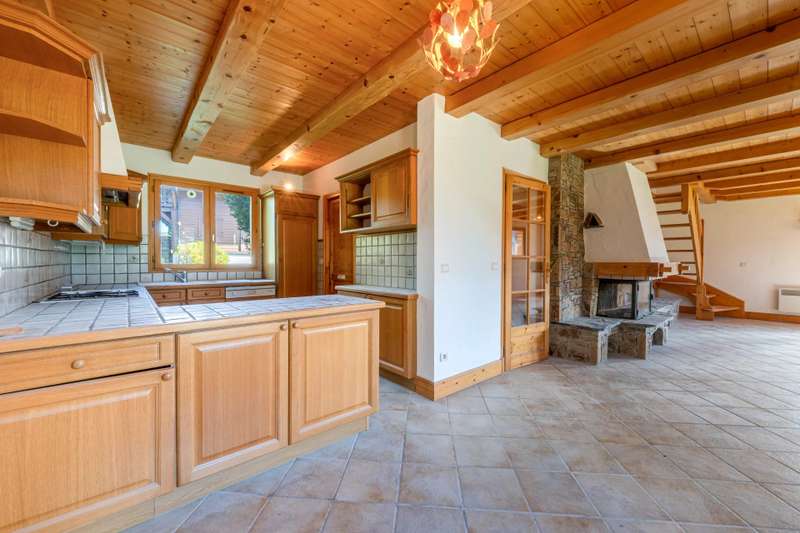 Situated in the heart of a privileged environment, in a quiet impasse, this chalet of approximately 129 m2 on a 727 m2 plot of land, with breathtaking views of Mont Blanc. On the first floor, this property boasts a welcoming entrance opening onto an open-plan, fully-equipped kitchen, a spacious living room with a beautiful fireplace that adds charm to the room, and a south-facing terrace. There's also a master suite and a double garage. Upstairs you'll find four bright bedrooms and two shower rooms. Outside, a large landscaped garden and several parking spaces complete this property. Let yourself be seduced by this exceptional property!