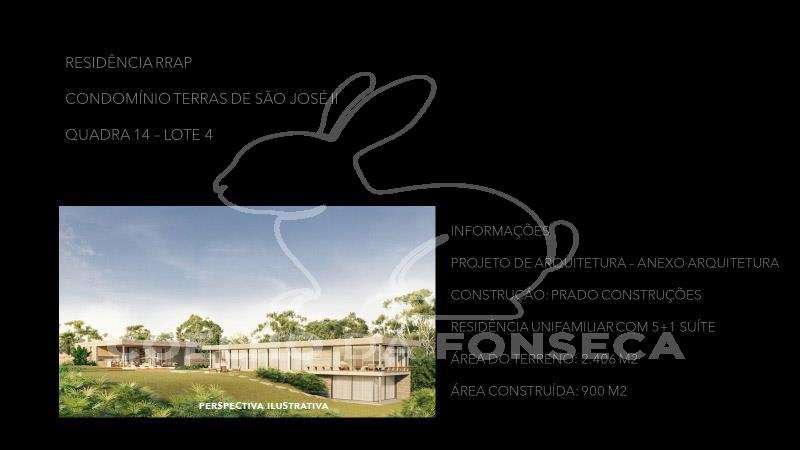 Casa no condomínio TERRAS DE SÃO JOSÉ, com 950m² área construída, 5 dormitório(s), 5 suíte(s), 3 vaga(s), 9 banheiro(s), piscina, dep. de empregados, varanda, casa terrea.