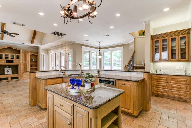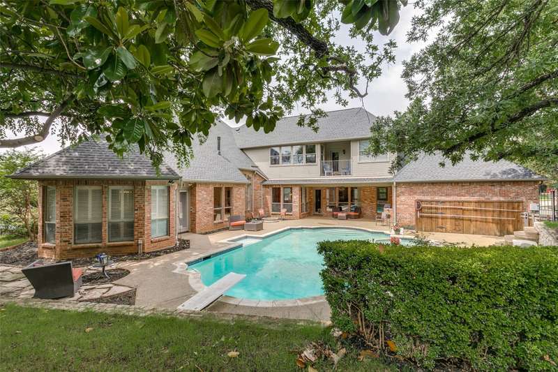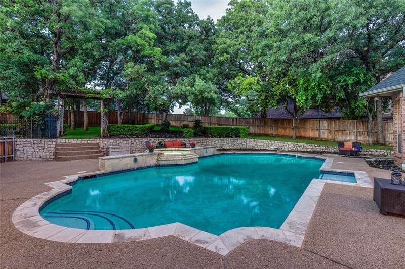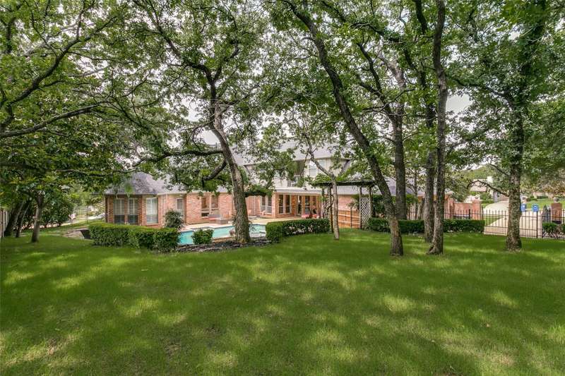 MOTIVATED Seller! This Gorgeous custom showstopper is nestled on one of the best lots in the desirable Wildwood neighborhood. Architectural Elegance boasts inside & out! Embark on a grand entrance, & a foyer that makes an unforgettable statement w natural light & sweeping double stairs. The stunning arches add timeless charm & seamless flow to the luxurious formal living room w 18-foot soaring ceilings, triple stacked windows w handcrafted wood casings, & a double-sided gas fireplace w marble detail. The formal dining room is a spacious masterpiece of design w bay window & chair rail molding. The family room seamlessly blends comfort & style, w effortless flow from indoors to out. Bright, open, & stunning with Cathedral ceiling & hand-crafted wood beams, wall of windows, built in entertainment center, & a chiseled stone fireplace with hearth. The chef's delight kitchen is the heart of the home. This sleek, sophisticated gathering space has an abundant amount of prep space to cook & create memories together. Stainless steel appliances, Island, hand-stained cabinetry w custom trim, & cabinet lighting. Tumbled marble backsplash, Jenn air gas cooktop with grill, granite counters, double ovens, & walk in pantry. Enjoy overlooking the serene backyard in the beautiful study w custom wood ceilings, a built-in desk, shelves, & fireplace! Cozy meets sophisticated in the dreamy primary retreat w double ceiling feature & lighting, bay window sitting area, marble floors, & private door outside. Primary Bath is a spa like retreat w jet tub, walk in shower, & double vanities. Downstairs guest room has en-suite bath, Two spacious Bedrooms upstairs w built ins & ensuite baths. Study desk area upstairs, Gameroom or multipurpose room & Media room, plus a balcony! Entertain in the fun & incredible park like setting backyard w grill, firepit, & diving pool. Replaced 36 windowpanes June-2025, Recently replaced roof, water heater, pool pump, & more - See attached list. Must see beauty!
