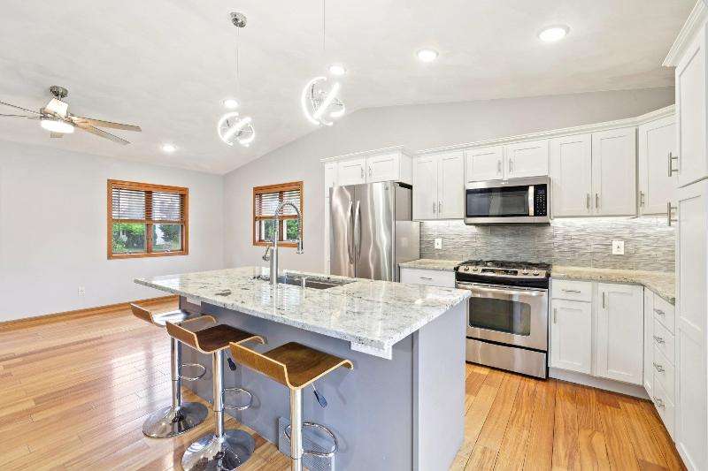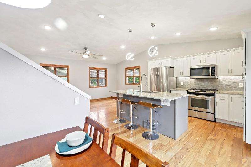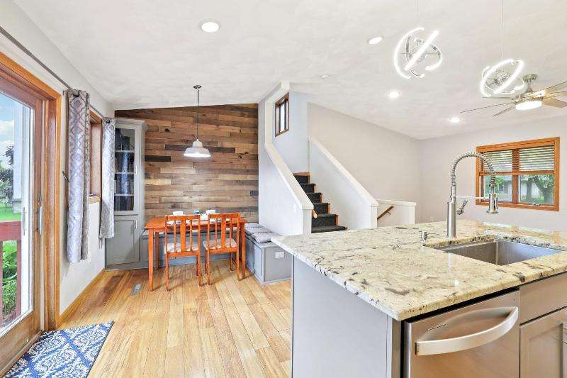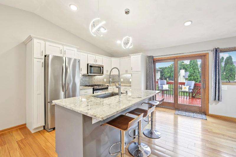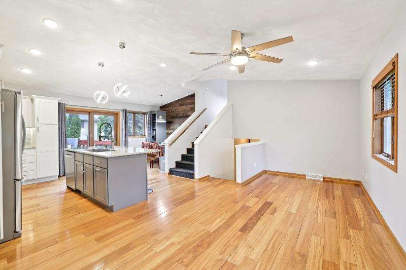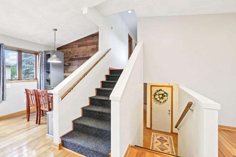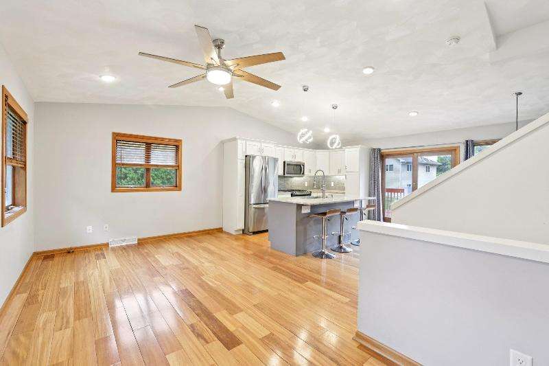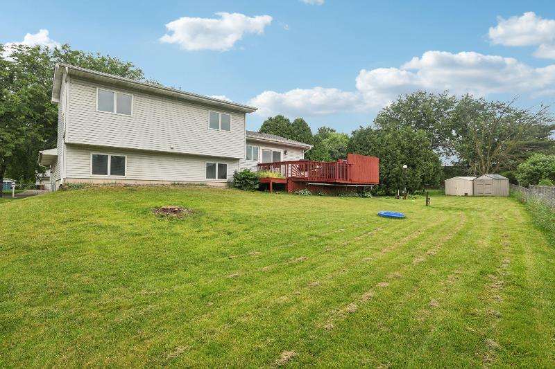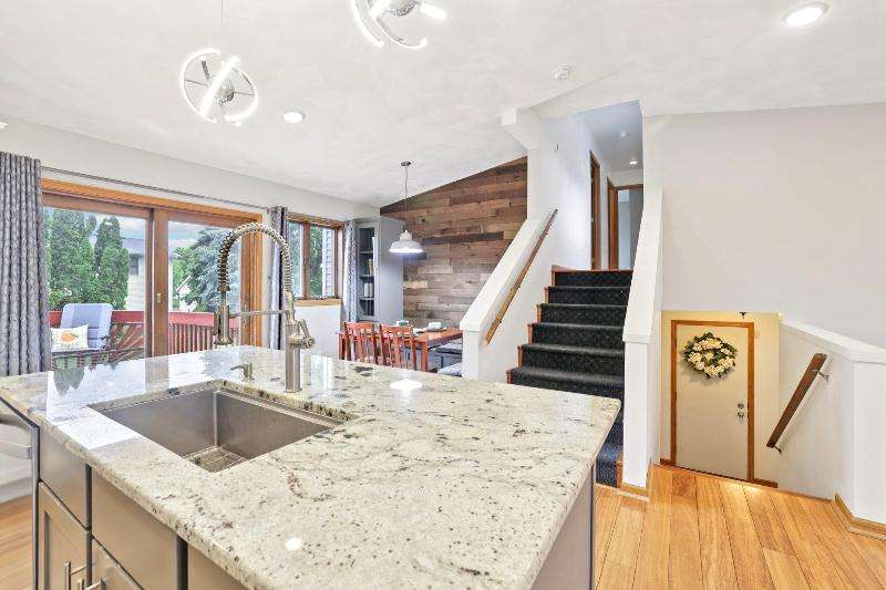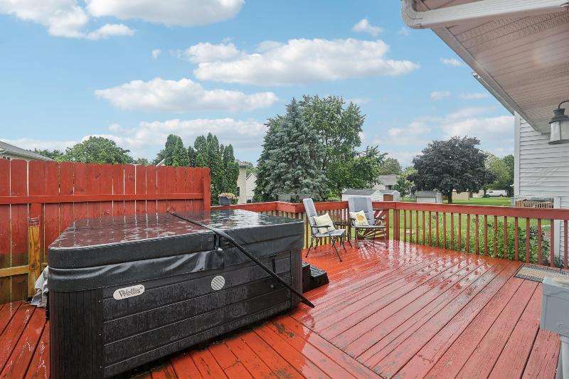 Welcome home to this bright tri-level in established Eastridge Trail neighborhood. Vaulted ceilings and plenty of windows give this 3 br 2 ba home plenty of natural light. The kitchen island will be the center of activity with updated appliances, granite counters and a cozy built in banquette for meals and game night. Two bedrooms on upper level and one on main level along with cute space for office, reading nook or crafts. The large deck features a hot tub for unwinding after a long day. Lower level features a large rec room and newer laundry. Other features, heated two car garage, parking space for an extra vehicle or boat and plenty of storage. New Roof 2025.