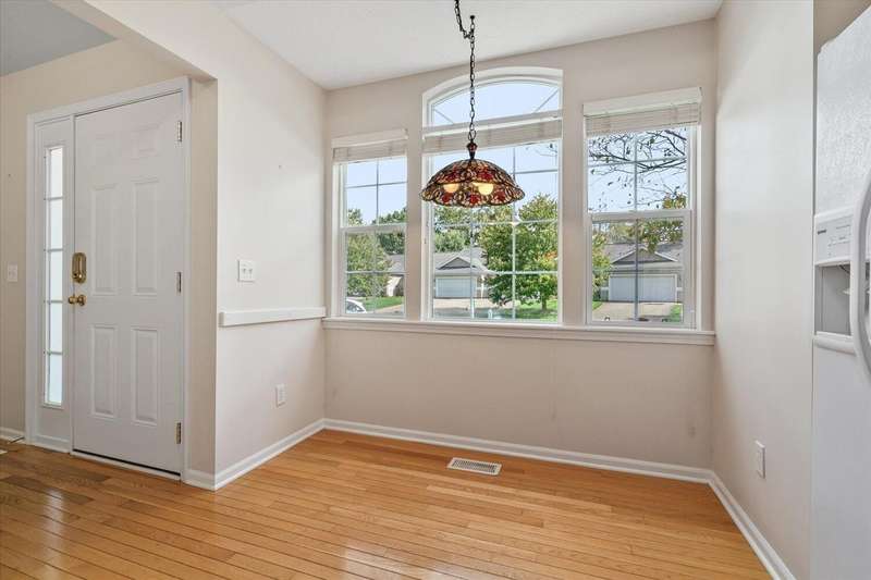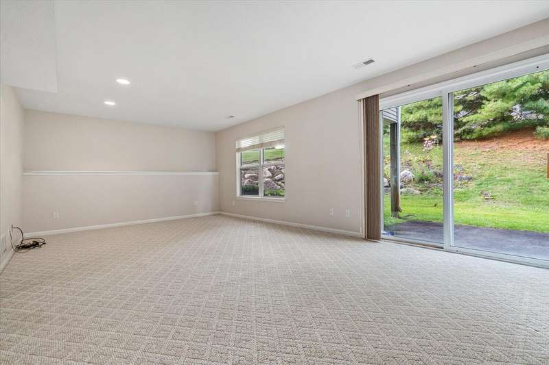 Fabulous End-Unit Condo in Quail Meadows! Welcome to this meticulous, move-in ready home that's been lovingly maintained inside & out. The charming front porch invites you into a warm & welcoming foyer featuring gorgeous hardwood floors that flow throughout the main living area. The open-concept kitchen is a delight, showcasing beautiful cabinetry, granite countertops, & a seamless connection to the dining area & spacious living room. Relax in the inviting living room with vaulted ceilings & cozy gas fireplace, or step into the sunroom-the perfect spot to enjoy your morning coffee while overlooking the private wooded lot & lush flower gardens. The primary suite offers a peaceful retreat with a large walk-in closet and a luxurious bath complete with a jetted tub, separate shower, double vanity, and linen closet. The main floor also includes a convenient laundry area & guest half bath. Love to entertain, the walkout lower level is ideal, featuring a spacious rec room, office or hobby room, a 2nd bedroom, full bath, and plenty of storage space. Recent updates include a new roof, new carpet on the main level, and a new hot water heatermaking this beautiful condo truly move-in ready!