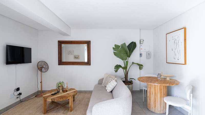 Step into this beautifully curated one-bedroom apartment that blends warmth, modern elegance, and comfort in the heart of Sea Point. Located on a quiet road just minutes from the Promenade, this move-in-ready space is the perfect sanctuary for professionals, first-time buyers, or investors seeking charm and convenience. The open-plan kitchen is thoughtfully designed with sleek grey cabinetry, integrated appliances, and wood-look finishes that add a touch of earthy sophistication. The living and dining areas flow effortlessly, featuring natural textures, curated decor, and beautiful wooden furniture that create a serene, homely atmosphere. The bedroom is spacious and bright with ample built-in storage, soft neutral tones, and tasteful accents that make it feel like a boutique hotel suite. While there’s no view, the apartment makes up for it with its calming aesthetic, modern fittings, and clever use of space. Additional features include: • Integrated appliances (oven, stovetop, washer) • Stylish tiled flooring and quality finishes throughout • Beautifully designed bathroom • Secure building with street parking • Airy and light with a modern, natural palette Whether you’re looking for a lock-up-and-go, a short-term rental investment, or a stylish place to call home, this apartment delivers on lifestyle and location.