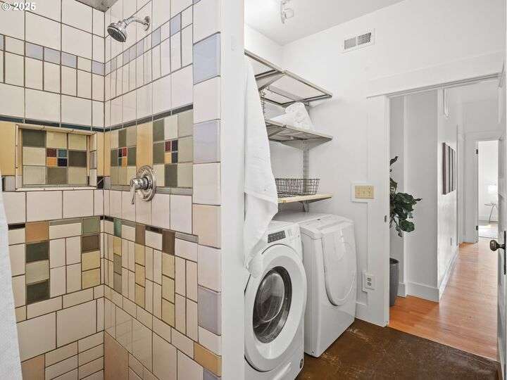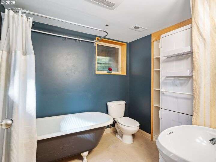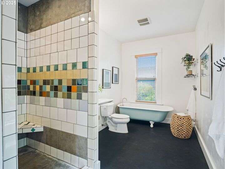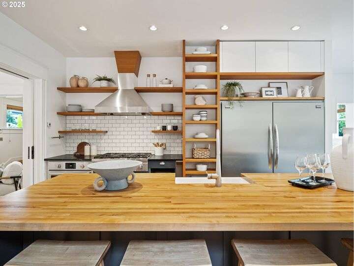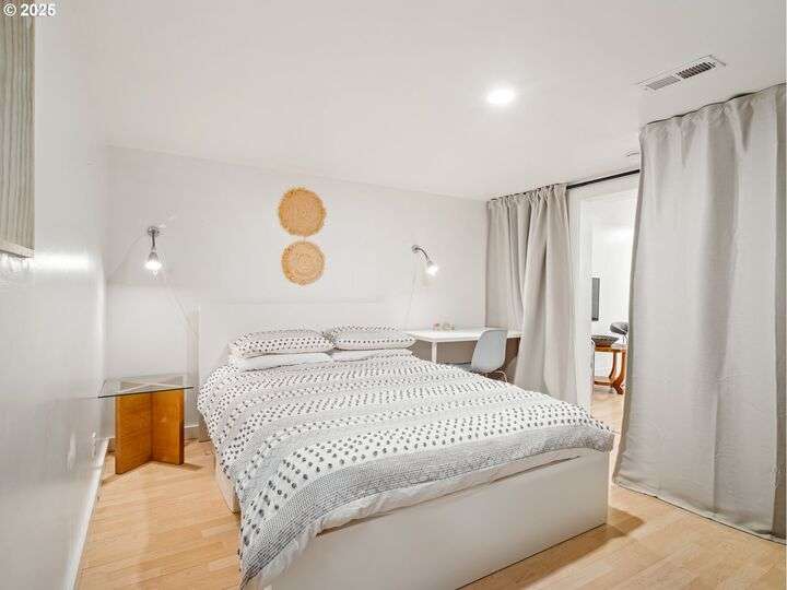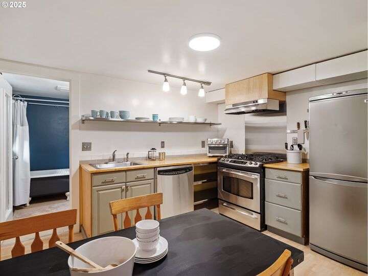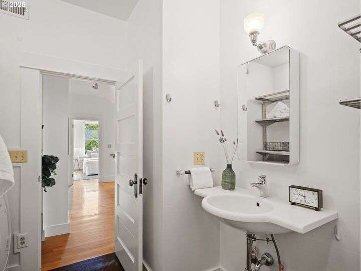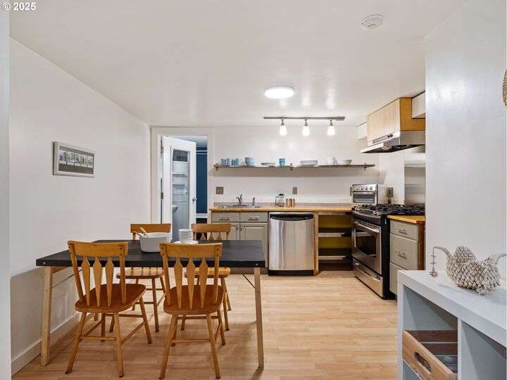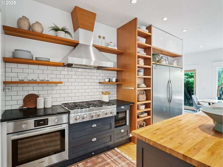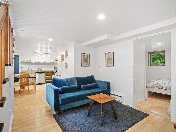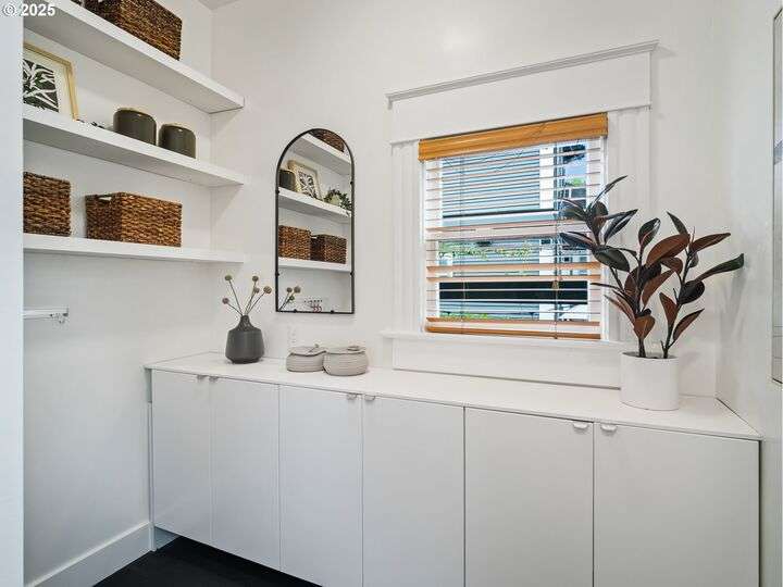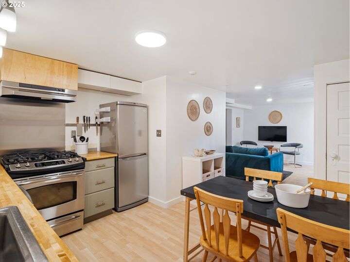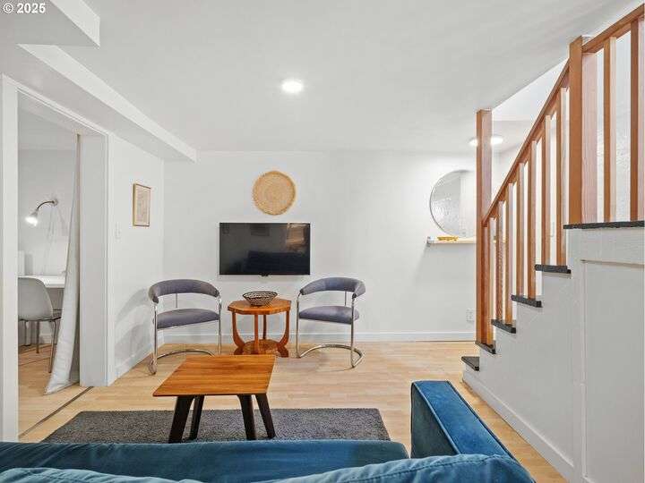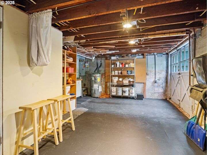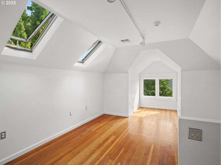 Step into timeless elegance with this grand 1904 Old Portland Foursquare, beautifully reimagined for modern living. Perched high on a landscaped corner lot along a tree-lined street, the home is filled with natural light and rare privacy, with a sun-drenched front porch perfect for morning coffee. Original architectural details—pocket doors, leaded glass windows, high ceilings, and a sweeping staircase—blend seamlessly with modern upgrades from a 2002 studs-out renovation, including new electrical, plumbing, and maple hardwood floors.The show-stopping gourmet kitchen boasts soapstone counters, a six-burner gas stove, oversized fridge/freezer, custom Manzanita island with seating for six and built-in wine rack, and a walk-in pantry. The adjoining dining area is anchored by a spectacular picture window overlooking the lush backyard. A formal living room and cozy library with gas fireplace and built-ins complete the gracious main level. Upstairs, the coveted floor plan includes three bedrooms on one level, laundry, and an expansive primary suite with spa-like bath featuring a double shower and soaking tub. The finished third floor offers flexible bonus space—perfect for a fourth bedroom, office, or wellness retreat. On the lower level you will find an income-producing unit with private entrance provides excellent flexibility for multi-generational living or rental income, with history up to $2,200/month. The fenced backyard features tranquil entertaining areas, lush landscaping, and a gardener’s shed/playhouse, while a tuck-under garage provides storage or hobby space. Energy-efficient updates include solar panels, central A/C, and a Level 2 EV charger.Unbeatable location: two blocks to New Seasons and the vibrant Williams corridor, a short stroll to Irving Park, and within Grant HS boundary. With a 92 Walk Score and perfect 100 Bike Score, this home is truly Portland living at its finest.
