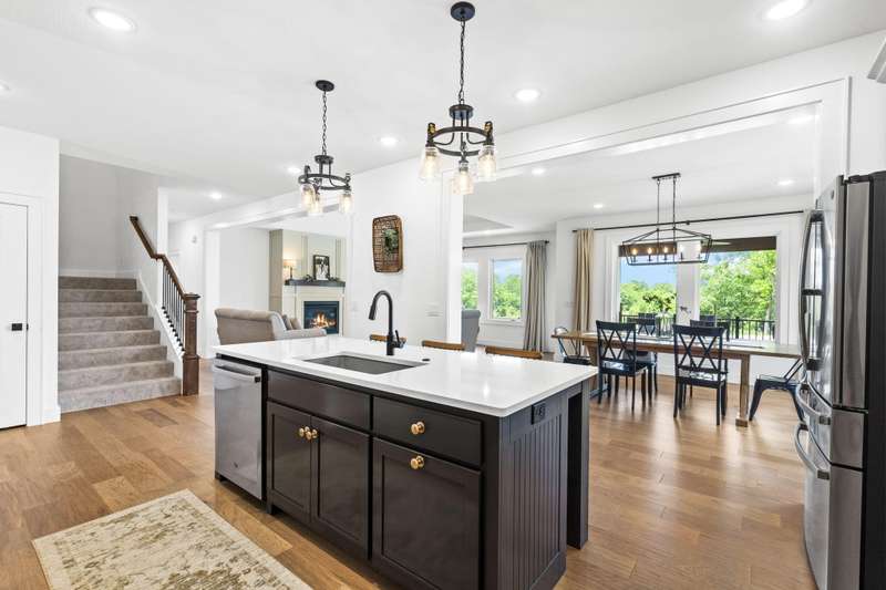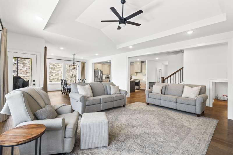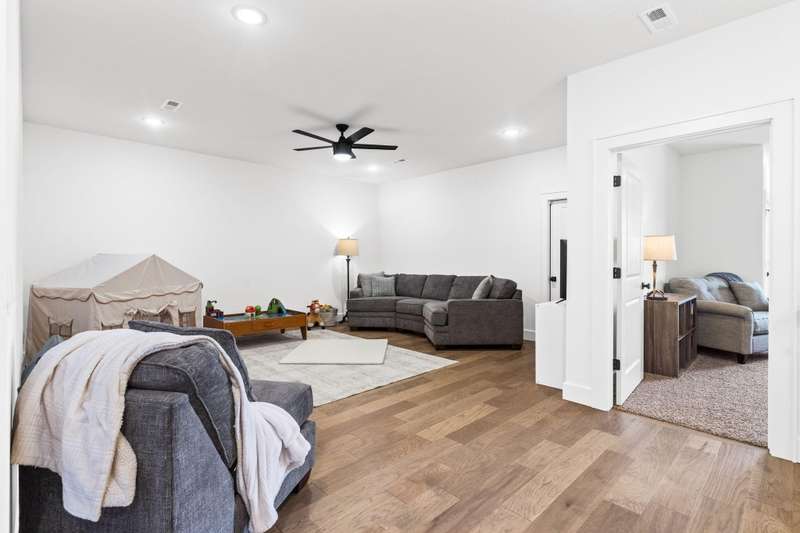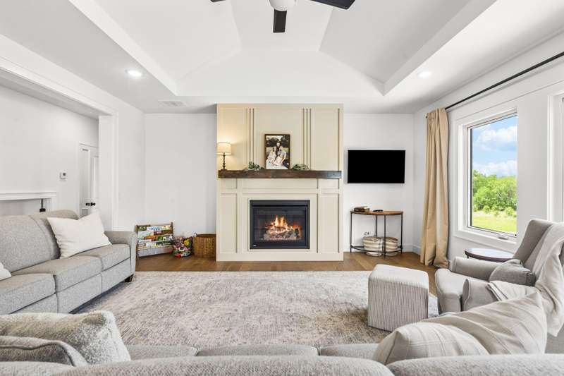 Step into a home where every detail has already been perfected--offering the style and finishes of new construction, but with thoughtful upgrades and a finished feel that truly set it apart. Located in the highly desirable Lakes at Wild Horse, this beautifully maintained all-brick home delivers over 3,600 sq ft of luxurious living space designed with both everyday comfort and effortless entertaining in mind.From the moment you enter, you'll notice the difference: soaring vaulted ceilings, rich engineered hardwood floors, custom cabinetry, and elegant quartz countertops--all tied together by a warm, open layout. The living area features a striking fireplace and flows seamlessly into the kitchen and dining spaces, making it ideal for hosting family and friends.Smart, functional touches throughout the main level include a convenient half bath for guests, a built-in mudroom bench, and multiple storage options. The spacious primary suite offers tall ceilings and a spa-like bathroom complete with heated tile floors, a freestanding soaking tub, large custom tile shower, and a walk-in closet crafted with quality wood built-ins.Upstairs, enjoy a second living area perfect for movie nights, hobbies, or play--along with two additional bedrooms, a full bathroom, and a dedicated storage room ideal for seasonal items or extra supplies.Outside, relax on your covered back patio in the privacy of your fully fenced backyard--now upgraded with a brand-new privacy fence and open green space behind for added peace and quiet.Plus, enjoy top-tier neighborhood amenities including a community pool, basketball, a sand volleyball court, and pickleball courts, a playground, and trash service included.This home truly offers the best of both worlds--modern design, high-end finishes, and the comfort of a home that's already been carefully lived in and loved. Come see for yourself what makes this one better than new!