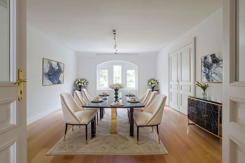 This unique period villa dating from 1882 is situated in the best location in Frankfurt's northern Westend. The villa impresses with its incomparable location directly on Grüneburgpark and is in the immediate vicinity of the Palmengarten and Frankfurt's Botanical Gardens. The listed façade combines elegant classicism with striking architectural details, giving the building an incomparable appearance. The pointed ornamental gable with decorative rosette ornamentation gives the building a picturesque silhouette. The tall, rectangular mullioned windows are inviting and lend the façade an elegant lightness that makes the feeling of openness and warmth palpable from the outside. The light-colored plaster façade radiates timeless elegance and blends harmoniously into the surrounding, historically influenced street view. On a living space of around 330 m² and a plot of around 215 m², the detached house offers a total of eleven spacious rooms and two conservatories, which are spread over several floors. Numerous large mullioned windows provide light-flooded rooms and allow a direct view of the Grüneburgpark from almost every level. The building was extensively renovated and modernized between 1999 and 2002. However, the historic style elements were preserved with great care: high ceilings with elegant stucco elements in individual living rooms, historic parquet floors in a classic herringbone pattern and a representative wooden staircase characterize the elegant character of the old building. Elegant round arches and double doors connect the rooms. The house is currently divided into four separate living areas. The house will be handed over completely empty in mid-2026 and will be available to you as your new family home after the necessary demolition work. The property is listed in the City of Frankfurt's register of listed buildings. Such an extraordinary property rarely comes up for sale, so seize this once-in-a-century opportunity and realize this unique dream of a lifetime for you and your family in this unique city villa in the most sought-after residential area of Frankfurt!