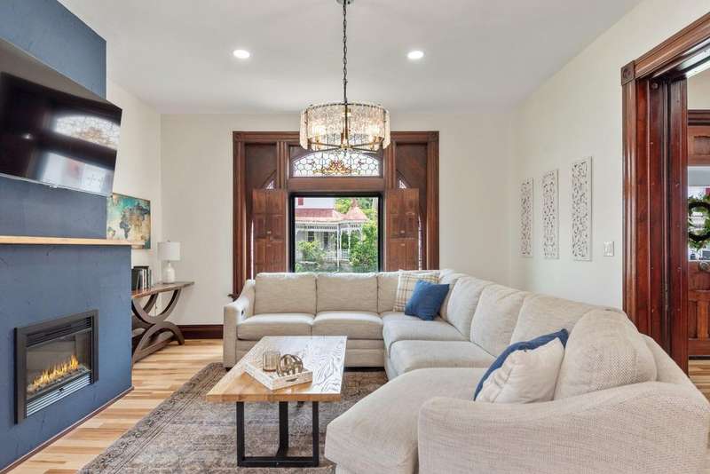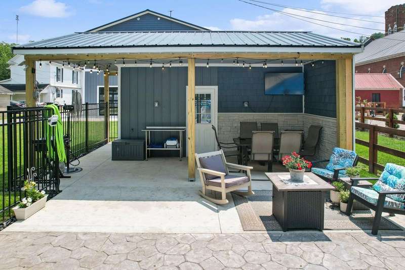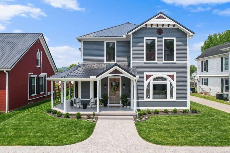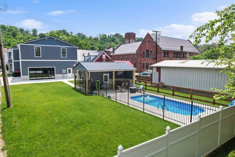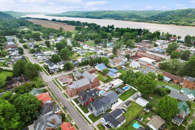 Prepare to be WOWED! This 5 bedroom/4 bath showstopper in the beautiful river town of Augusta, Kentucky has ALL the bells and whistles. Built circa late 1800s, the historical features of this home - such as two sets of pocket doors, 9+ ft ceilings, stained glass windows, wood trim, & doors - have been lovingly restored while the rest of the home has been renovated with an eye towards comfort & convenience. Entering into the warm & welcoming foyer is like stepping into the pages of an Architectural Digest magazine. New hardwood flooring lines the common areas while new tile has been installed in all the updated baths. The dual HVAC systems, water heater, Anderson windows & metal roof are less than a year old. The addition of a custom gourmet kitchen, 40x38 garage with 4 doors, 12x24 saltwater pool & pool house with its own bath elevate this home to something very special indeed. Enjoy evenings on the wraparound porch with its wooden swings in this golf-cart friendly community. Come enjoy the delights of small town living in Augusta, recognized as one of the best river towns in the USA and home to the award-wining Augusta Distillery and Baker-Bird Winery.