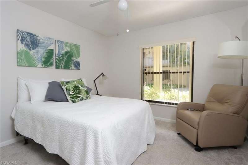 Beautiful 1st floor condo in the upscale community of Bonita Bay! 2 bedrooms and 2 bathrooms. King in master, double bed in guest room, sleeper sofa in living room. Freshly painted. updated Kitchen with granite countertops. Vegetation view from lanai. No assigned parking. NO GOLF MEMBERSHIP ACCESS FOR GUESTS. Guests are able to use tram service to get to Bonita Bay's private beach access from Nov. 15-April 30. Residents will enjoy a variety of Bonita Bay's wonderful amenities including; the miles of walking and bike paths, use of the tennis courts situated at Riverwalk Park as well as court next to pool in Wild Pines, the private beach on Bonita Beach and the bus shuttle that taxis residents to and from the community. The beach club provides lounge chairs, restrooms and showers. Three waterfront recreational areas on the property. Spring Creek which offer the canoe and kayak launches, canoes are available at the North Gate. Riverwalk Park offer lighted tennis courts, fishing piers, children playground and a 12-station cardiovascular exercise area that runs along the Imperial River. Estero Park offers a pavilion, picnic area, butterfly park and boardwalk to the Estero Bay. A variety of social activities are available to you through the community activities center at Bonita Bay (fees may apply) from cooking classes, game tickets, shopping excursions, etc. ***Information contained herein deemed reliable but not guaranteed*** BB WP 106B Please inquire about weekly rentals! Please note- Beach Club under major renovations. Completion estimated Fall 2025! Access provided in interim to Lover's Key beach.