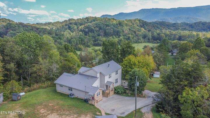Nestled on 4.5 sprawling acres, this enchanting two-story home with a basement is more than a house—it's a canvas for creating cherished memories that echo with nostalgia for years to come. Bathed in natural light, every corner of this 4-bedroom, 3.5-bath home invites warmth and togetherness, with seasonal mountain views that paint the horizon with breathtaking beauty, hinting at the potential to become a year-round spectacle. Step into the custom kitchen, a heartwarming space where granite countertops gleam under the glow of morning sun, complemented by handmade Maple cabinets, stainless steel appliances, a gas range/oven, refrigerator, vent hood, built-in microwave, double oven, and a wine cooler—perfect for crafting family recipes that become heirlooms. Hardwood floors flow gracefully throughout, leading you from the formal living room, where cozy evenings by the fire await, to the elegant formal dining room, ready to host holiday feasts filled with laughter. Upstairs, an oversized loft with a soaring cathedral ceiling beckons as a haven for storytelling, game nights, or quiet moments of reflection. The extra-large laundry room simplifies daily routines, leaving more time for life's simple joys. Beyond the main lies a detached guest home with large living space previously used as a bedroom, kitchen/dining area, and full bath—a perfect retreat for loved ones, rental opportunity, or a private space for memory-making visits. Outside, a two-story workshop with a garage door and hobby room sparks creativity, while a chicken coop and large pole barn whisper of homesteading dreams. At the foot of the property, a potential garden plot awaits your vision, ready to bloom with flowers or harvest seasonal bounty. This is a place where every sunrise feels like the start of a new tradition, and every sunset etches moments of nostalgia into the heart of your family's story.