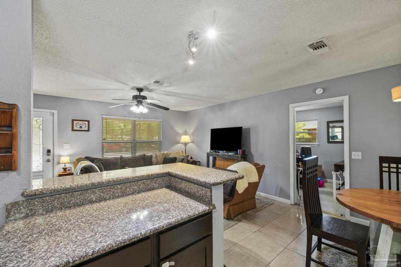 Price Improvement! This adorable 3 bedroom 2 bathroom brick home is ready for YOU! Sitting on just over a half acre and surrounded by trees makes it quite the private oasis. As you enter the home the first thing you will notice is the open concept living, kitchen and dining rooms. You can entertain, cook and still be part of the action. The kitchen features granite countertops, a built in microwave and self cleaning oven. The breakfast bar not only offers extra seating but extra counter space for food prep or to unpack take out. On the right side of the home are the 3 bedrooms and 2 bathrooms. The primary bedroom is tucked in the back corner of the home and has an ensuite bathroom and walk-in closet. The bathroom has been updated and features a tile walk-in shower. On the left side of the home there are 2 bonus rooms that can be used for anything! You could have a 4th bedroom and office in these spaces, a game room, second living area, library...you're only limited by your own imagination. One thing this home does not have is carpet...NO CARPET. Tile flooring throughout means more time enjoying life and less time cleaning. Stepping out the back door is sure to spark that childlike wonder we all once had. This spacious yard has tons of trees and privacy. It's perfect for kids and adults alike. Big enough to run and play hide and seek, catch fireflies and peaceful enough to enjoy morning coffee or afternoon tea. Plenty of space for a garden or pool as well. Roof was installed in 2019 and the windows were replaced in 2018. All of this and NO HOA. You deserve to be living this low maintenance lifestyle so schedule your tour today.