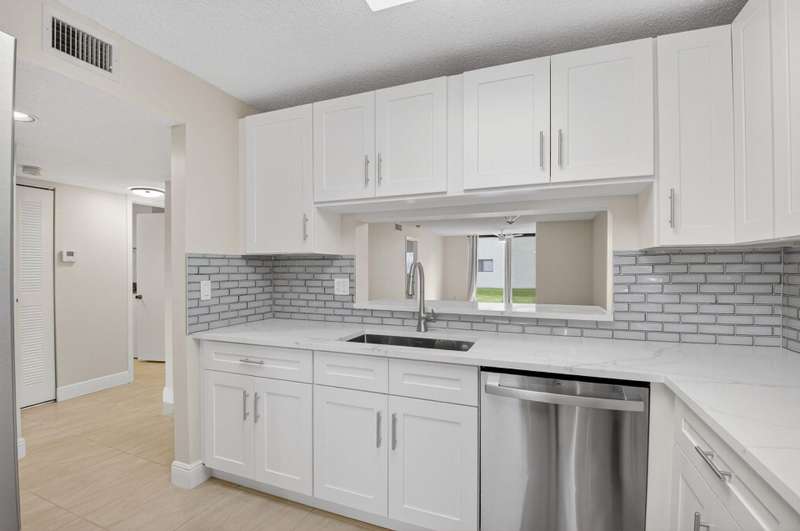 Fully Renovated Ground Floor Condo in Watersedge at Lakes of Delray.Move right into this beautifully updated 1,350 sq. ft. ground floor unit, located in the highly desirable 55+ community in Delray. This spacious 2-bed, 2-bath features a bright, open floor plan with a brand-new kitchen boasting white shaker cabinets, quartz countertops, and stainless steel appliances.The primary suite includes a walk-in closet and a fully renovated en-suite bath. Both bathrooms have been tastefully updated. Enjoy peace of mind with a new roof and elevator recently installed in the building.Community amenities include a pool, clubhouse, tennis courts, gym, pickleball, card games, and more. Conveniently located near shopping, dining, and just minutes from the beach, South Florida living at its best.