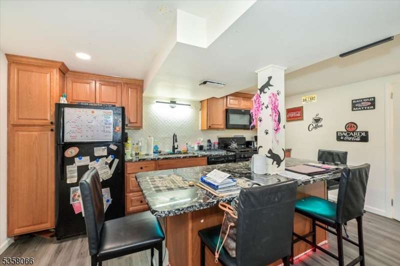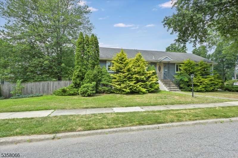 Welcome home to this beautifully maintained 4-bedroom, 2.5-bath Ranch, ideally situated on a manicured corner lot in a sought-after neighborhood. Step through the inviting entry vestibule into a warm, well-appointed interior. The spacious living room welcomes you with wood beam ceilings and abundant natural light from large windows, creating a bright and comfortable atmosphere. Flow seamlessly into the dining room perfect for intimate dinners or festive gatherings. The updated eat-in kitchen features custom cabinetry, stainless steel appliances, ample counter space, and a center island with breakfast bar. Adjacent to the dining room, discover a cozy family room, ideal for relaxing at the end of the day. Down the hall, the primary suite offers a large closet and private bath with tub/shower and storage vanity. Two additional bedrooms, powder room, and a laundry room complete the main level. The fully finished walkout basement is ideal as an in-law suite, boasting a private entrance, large bedroom with sitting area, bonus kitchen, full bath and laundry. A full attic provides great storage or potential for future expansion. Enjoy the fully fenced backyard with deck and patio perfect for outdoor entertaining. The oversized 2-car attached garage offers plenty of room for vehicles and storage. Conveniently located near NYC transportation, shopping, and dining, this home offers space, flexibility, and a prime location.