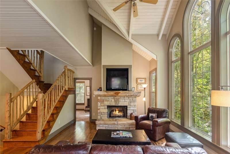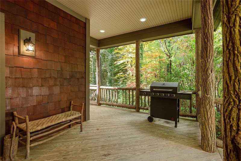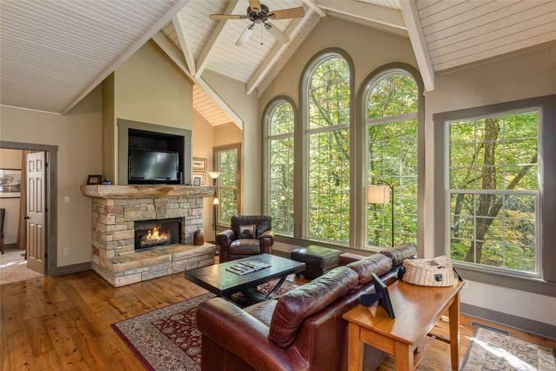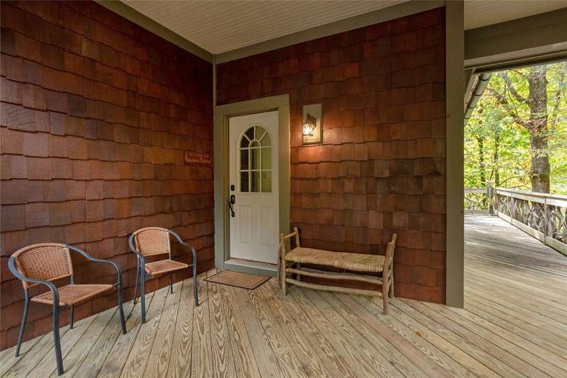 Nestled among the trees and overlooking the pristine waters of Indian Creek, this charming four-bedroom home - affectionately known as "Babbling Brook" - offers a peaceful, turnkey retreat in the heart of the coveted Catatoga community. With a strong rental history and being sold fully furnished, this well-maintained property is ready for immediate enjoyment and income potential. Indoor and outdoor living blend seamlessly here. Spacious decks on two levels are ideal for unwinding and listening to the soothing sounds of rushing water. Inside, the main level features an inviting primary suite with its private balcony - a perfect spot for morning coffee with creek views - alongside a guest bedroom and bathroom, a cozy living room with a stone fireplace and convenient gas logs, an open kitchen and dining area, and a laundry room. Upstairs is a third bedroom and bathroom, while the lower level offers even more flexible space with a fourth bedroom, a full bathroom, and a private porch leading down to the stone pathway with easy creek access. Catatoga's amenities enhance the serene environment, including Lake Catatoga with its charming boathouse, a peaceful trout stream, and private hiking and biking trails with waterfalls to explore along the way. Beyond the gates, enjoy The Plateau's abundance of shopping, dining, and entertainment in Cashiers and Brevard, both just 20 minutes away. Asheville and Highlands are less than 45 minutes away, providing convenient access to the Asheville Regional Airport for a quick escape from the heat and hustle of everyday life or an opening to embrace Western North Carolina's outdoor adventures. This home is a rare opportunity to experience rustic elegance, comfort, and connection to nature - an idyllic mountain getaway in one of the region's most beloved communities. Don't miss the chance to own beautiful Babbling Brook.