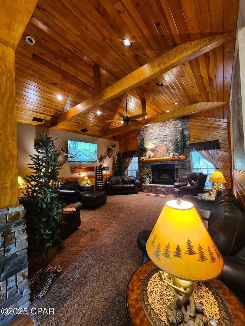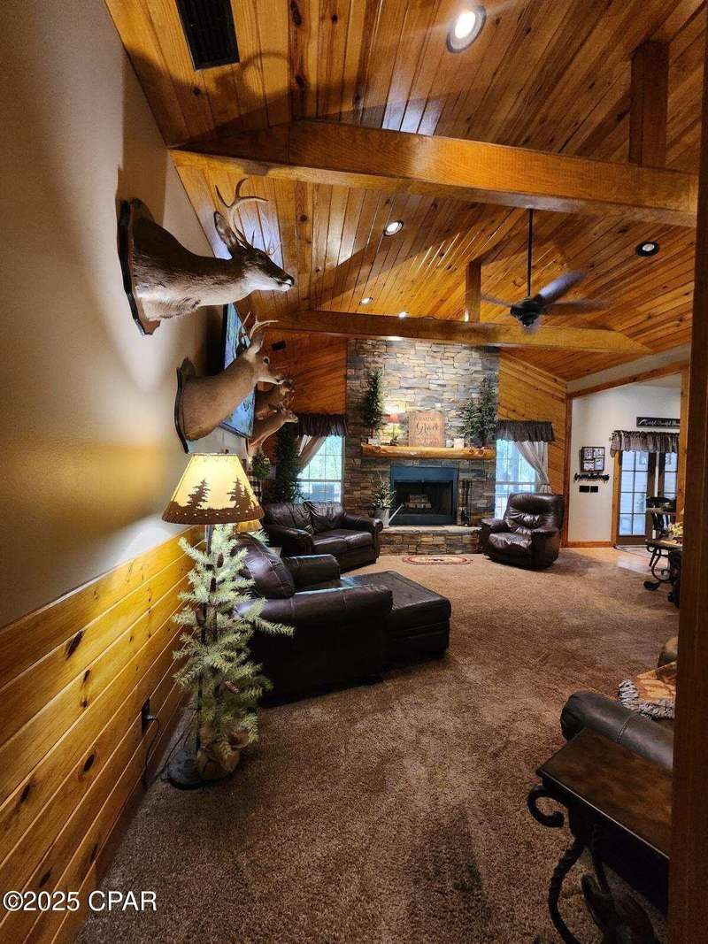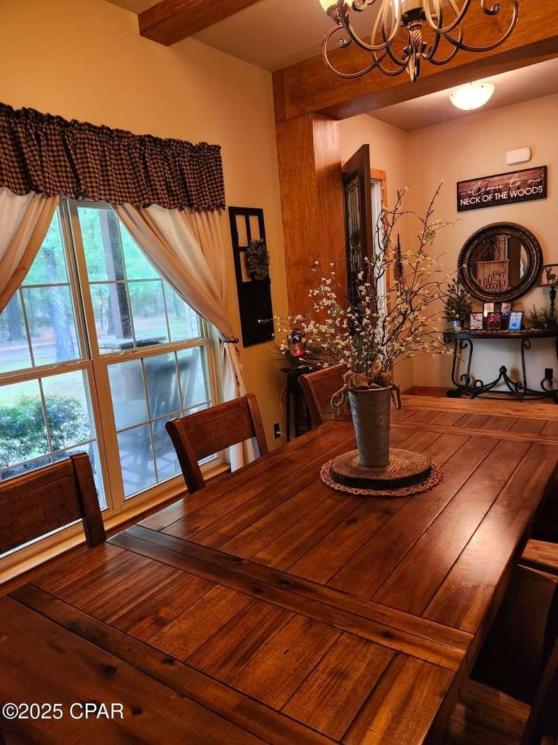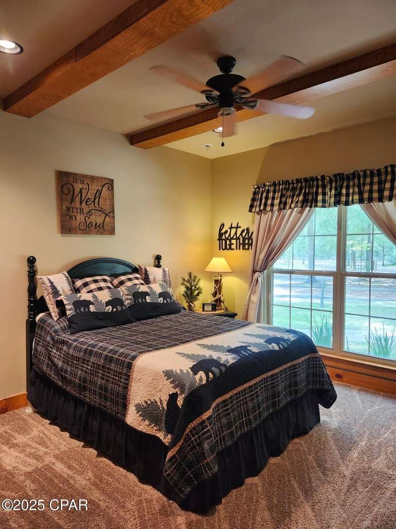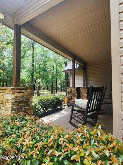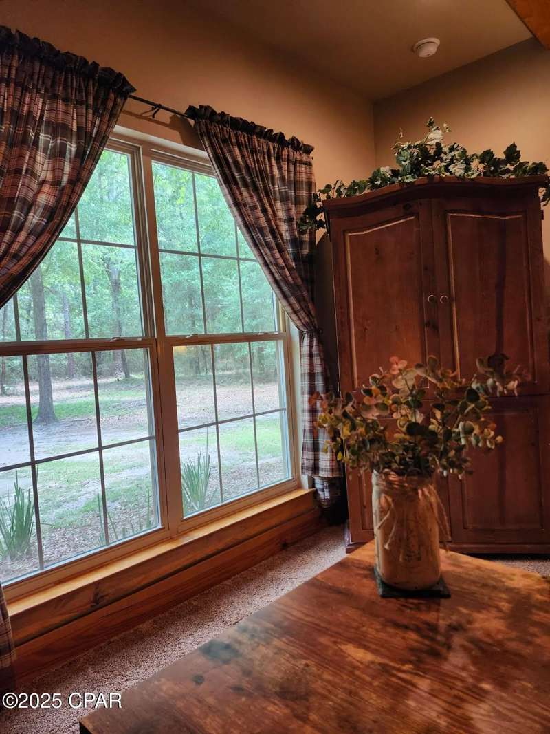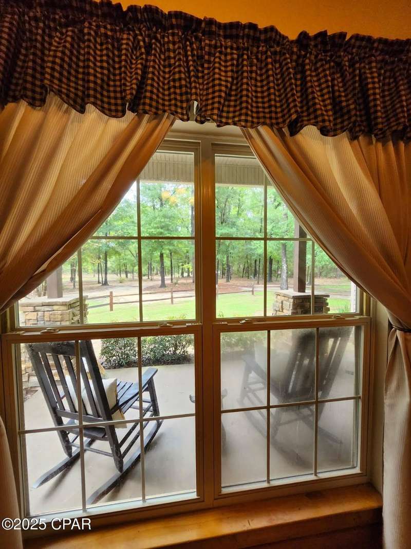 'CURRENTLY UNDER CONTRACT, SELLER WILL CONSIDER BACKUP OFFERS' This gorgeous rustic home looks like those common in Gatlinburg, TN., but it is only about 50 minutes to Pier Park at the beach. Located at the dead end of a cul-de-sac, this 3.17 (+/-) acre lot backs up to land used for hunting so wildlife is abundant. This beautiful home is in the security gated subdivision of Leisure Lakes, just north of Panama City off Highway 77. It has 3 spacious bedrooms and two full baths. The front porch is covered and has a concrete floor. The back deck is covered and a great place to sip coffee and watch the sun go down. The entire property is fenced in and has a separate smaller fenced area for pets out back. The massive wood burning fireplace is impressive with stacked stone surround, as well as the cathedral ceiling with exposed wood beams. Construction like this takes a lot of time and highly skilled wood and stone workers. Tall ceilings allow for tall windows allow for great views with plenty of light to flow into the house. The kitchen has granite countertops, breakfast bar and a pantry. The separate dining room is just off the kitchen. The primary bedroom suite has two vanities separated by a convenient makeup station. The large walk-in shower has a seat, is tiled from the floor up, and the big walk-in closet is also in the bathroom. There is attic storage and access in the 2-car garage, and additional parking or equipment storage is a 24x36 pole barn near the garage entrance. There are numerous oak trees that provide shade and the drive way loops around the front of the house. If you are hunting a beautiful home with a rustic feel, consider this one. The neighborhood amenities features a security gate with live guards weekdays, a swimming pool, boat launch, toddler playground, men's and women's restrooms, basketball court, tennis court, good fishing in two clear lakes, and more. The largest of the two lakes is about a mile across, or about 3 miles around. The water is very clear and spring fed. Be sure to see all of the photos.