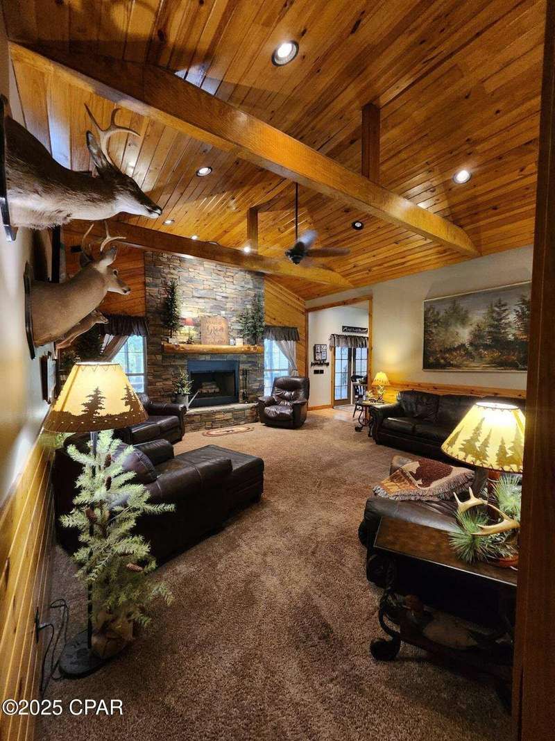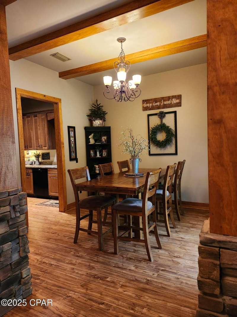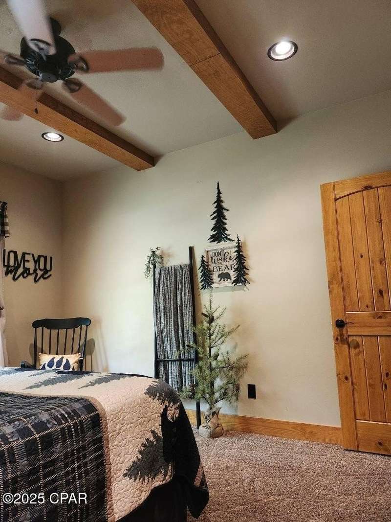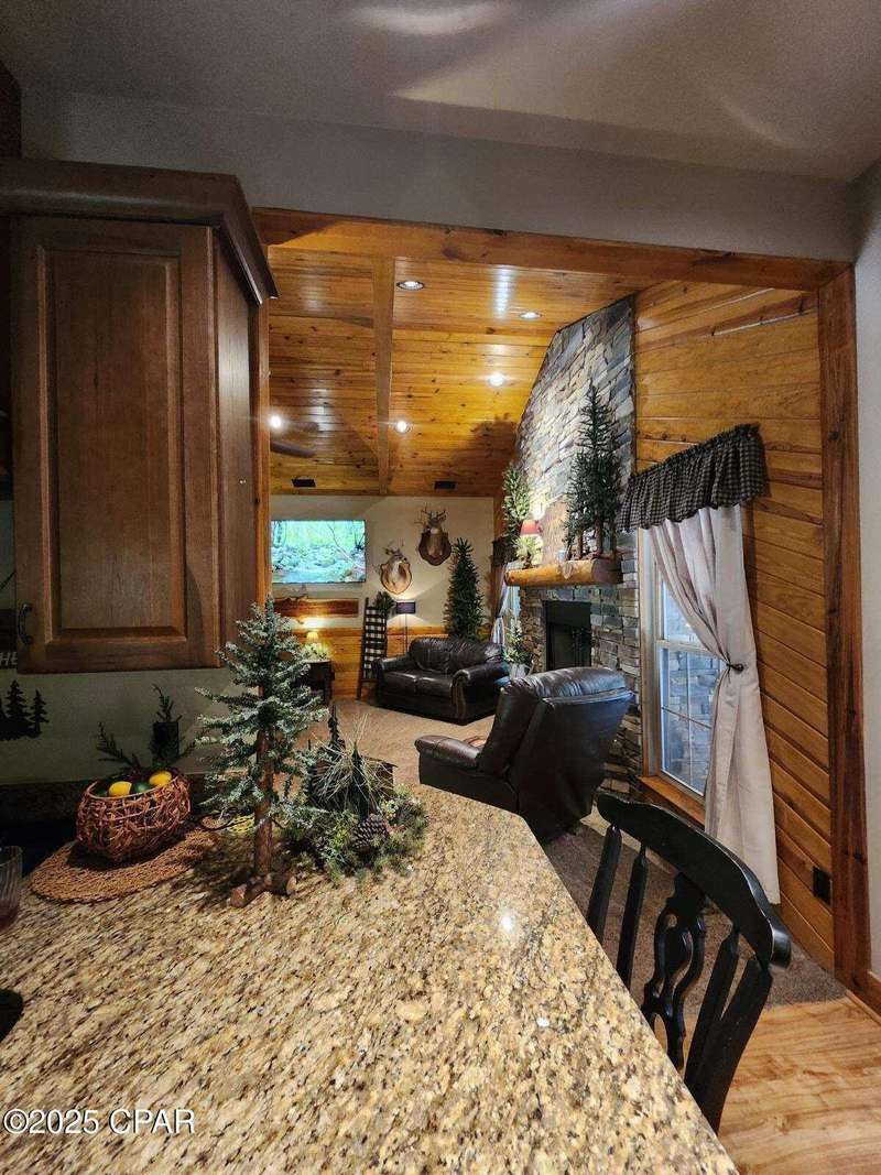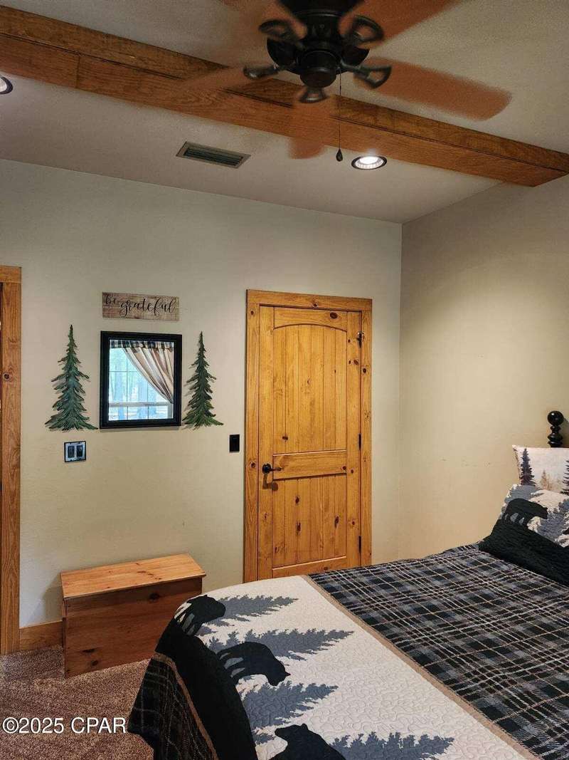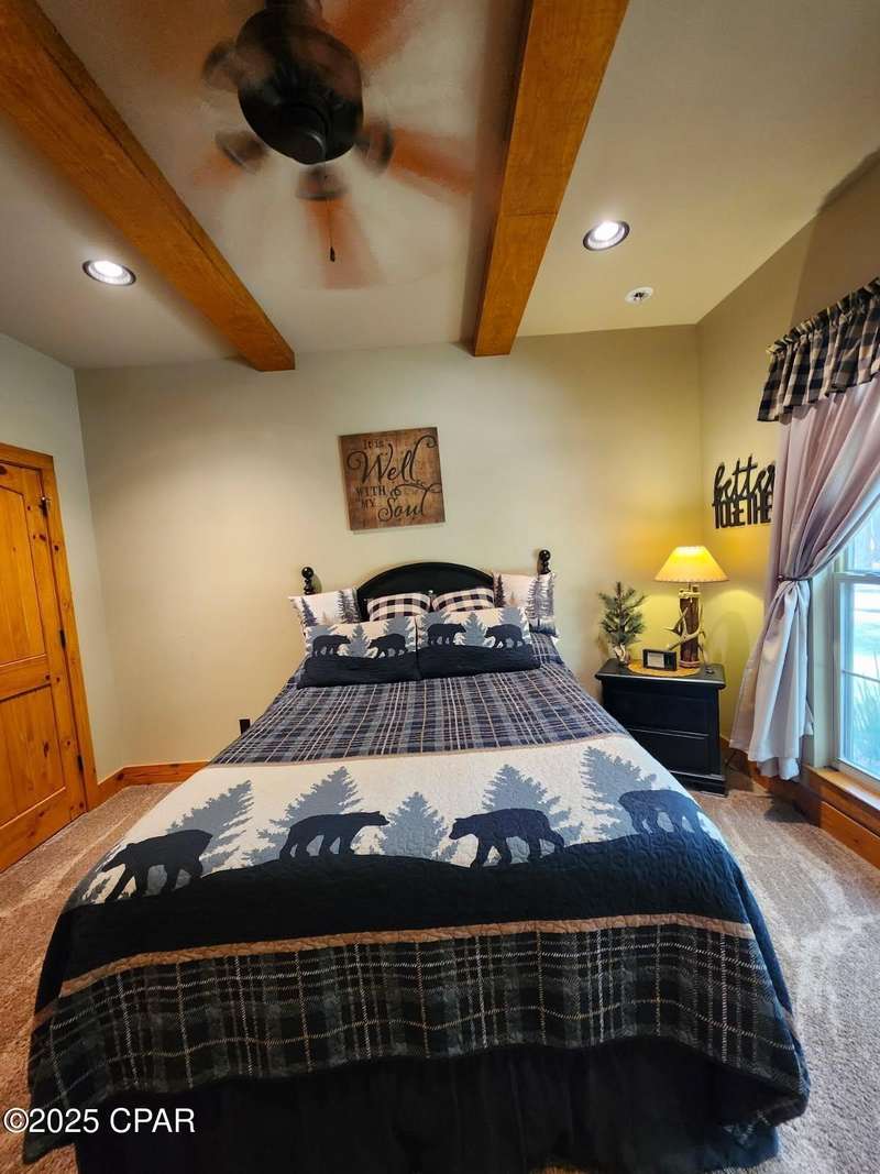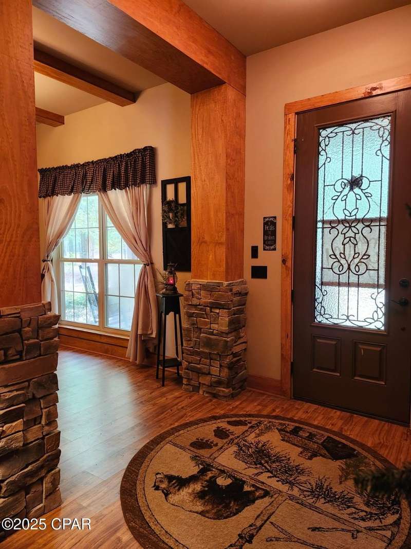 'CURRENTLY UNDER CONTRACT, SELLER WILL CONSIDER BACKUP OFFERS' This gorgeous rustic home looks like those common in Gatlinburg, TN., but it is only about 50 minutes to Pier Park at the beach. Located at the dead end of a cul-de-sac, this 3.17 (+/-) acre lot backs up to land used for hunting so wildlife is abundant. This beautiful home is in the security gated subdivision of Leisure Lakes, just north of Panama City off Highway 77. It has 3 spacious bedrooms and two full baths. The front porch is covered and has a concrete floor. The back deck is covered and a great place to sip coffee and watch the sun go down. The entire property is fenced in and has a separate smaller fenced area for pets out back. The massive wood burning fireplace is impressive with stacked stone surround, as well as the cathedral ceiling with exposed wood beams. Construction like this takes a lot of time and highly skilled wood and stone workers. Tall ceilings allow for tall windows allow for great views with plenty of light to flow into the house. The kitchen has granite countertops, breakfast bar and a pantry. The separate dining room is just off the kitchen. The primary bedroom suite has two vanities separated by a convenient makeup station. The large walk-in shower has a seat, is tiled from the floor up, and the big walk-in closet is also in the bathroom. There is attic storage and access in the 2-car garage, and additional parking or equipment storage is a 24x36 pole barn near the garage entrance. There are numerous oak trees that provide shade and the drive way loops around the front of the house. If you are hunting a beautiful home with a rustic feel, consider this one. The neighborhood amenities features a security gate with live guards weekdays, a swimming pool, boat launch, toddler playground, men's and women's restrooms, basketball court, tennis court, good fishing in two clear lakes, and more. The largest of the two lakes is about a mile across, or about 3 miles around. The water is very clear and spring fed. Be sure to see all of the photos.