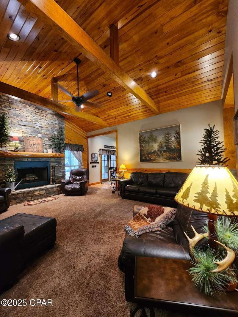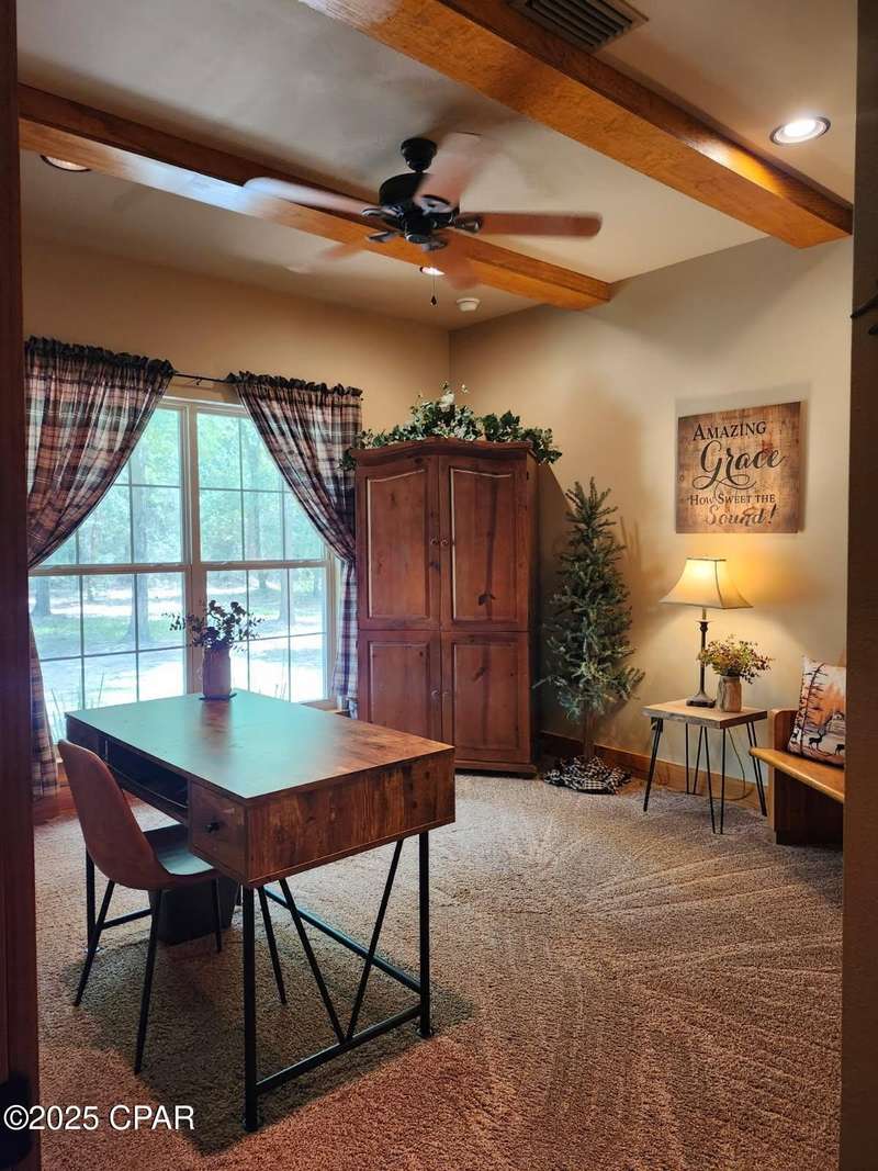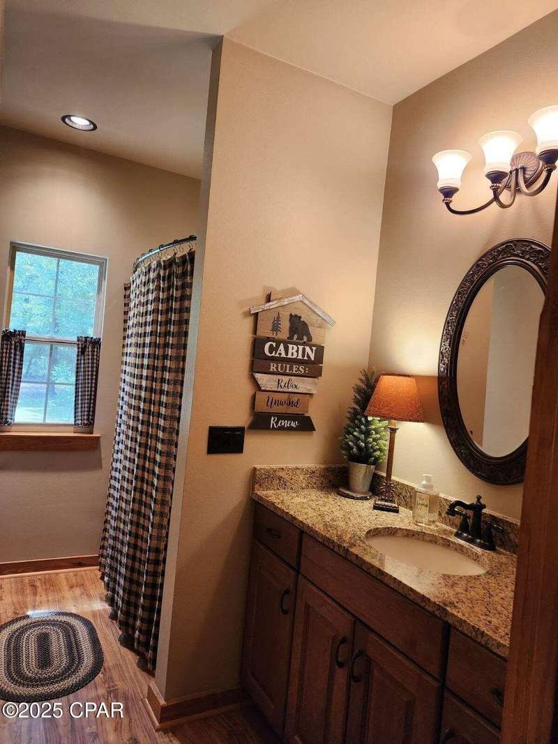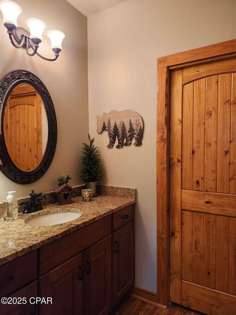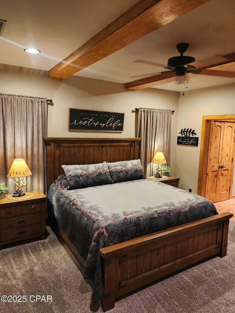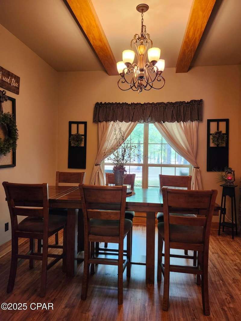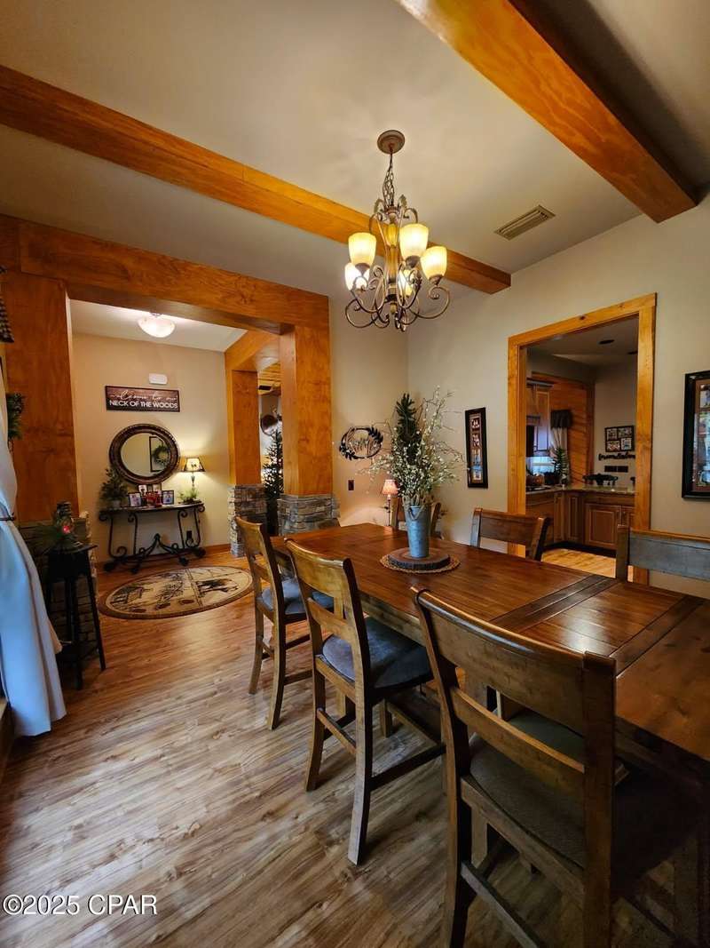 'CURRENTLY UNDER CONTRACT, SELLER WILL CONSIDER BACKUP OFFERS' This gorgeous rustic home looks like those common in Gatlinburg, TN., but it is only about 50 minutes to Pier Park at the beach. Located at the dead end of a cul-de-sac, this 3.17 (+/-) acre lot backs up to land used for hunting so wildlife is abundant. This beautiful home is in the security gated subdivision of Leisure Lakes, just north of Panama City off Highway 77. It has 3 spacious bedrooms and two full baths. The front porch is covered and has a concrete floor. The back deck is covered and a great place to sip coffee and watch the sun go down. The entire property is fenced in and has a separate smaller fenced area for pets out back. The massive wood burning fireplace is impressive with stacked stone surround, as well as the cathedral ceiling with exposed wood beams. Construction like this takes a lot of time and highly skilled wood and stone workers. Tall ceilings allow for tall windows allow for great views with plenty of light to flow into the house. The kitchen has granite countertops, breakfast bar and a pantry. The separate dining room is just off the kitchen. The primary bedroom suite has two vanities separated by a convenient makeup station. The large walk-in shower has a seat, is tiled from the floor up, and the big walk-in closet is also in the bathroom. There is attic storage and access in the 2-car garage, and additional parking or equipment storage is a 24x36 pole barn near the garage entrance. There are numerous oak trees that provide shade and the drive way loops around the front of the house. If you are hunting a beautiful home with a rustic feel, consider this one. The neighborhood amenities features a security gate with live guards weekdays, a swimming pool, boat launch, toddler playground, men's and women's restrooms, basketball court, tennis court, good fishing in two clear lakes, and more. The largest of the two lakes is about a mile across, or about 3 miles around. The water is very clear and spring fed. Be sure to see all of the photos.