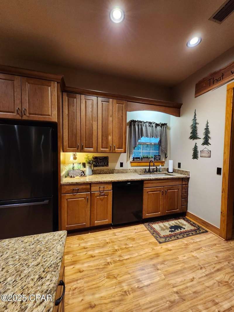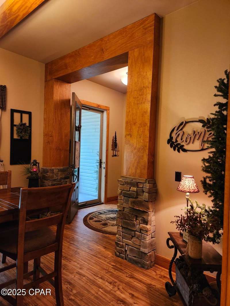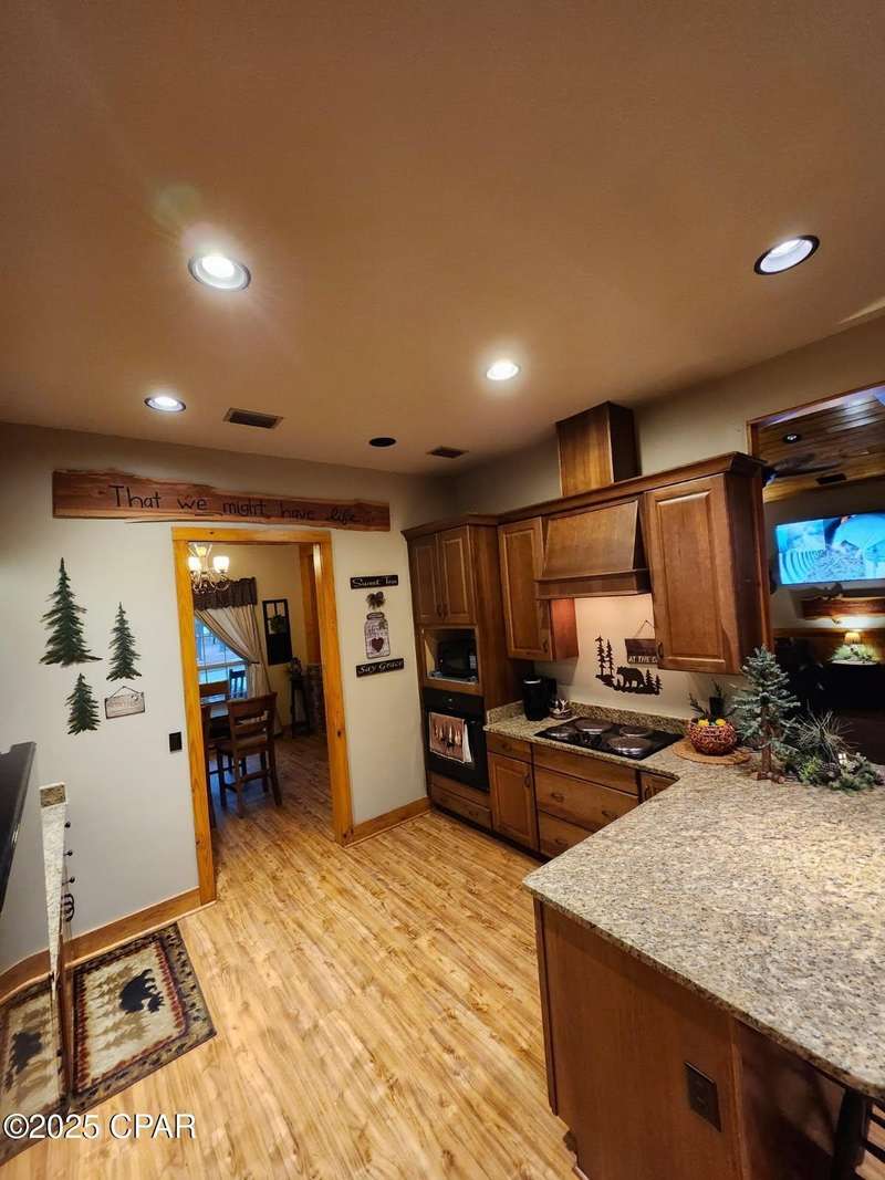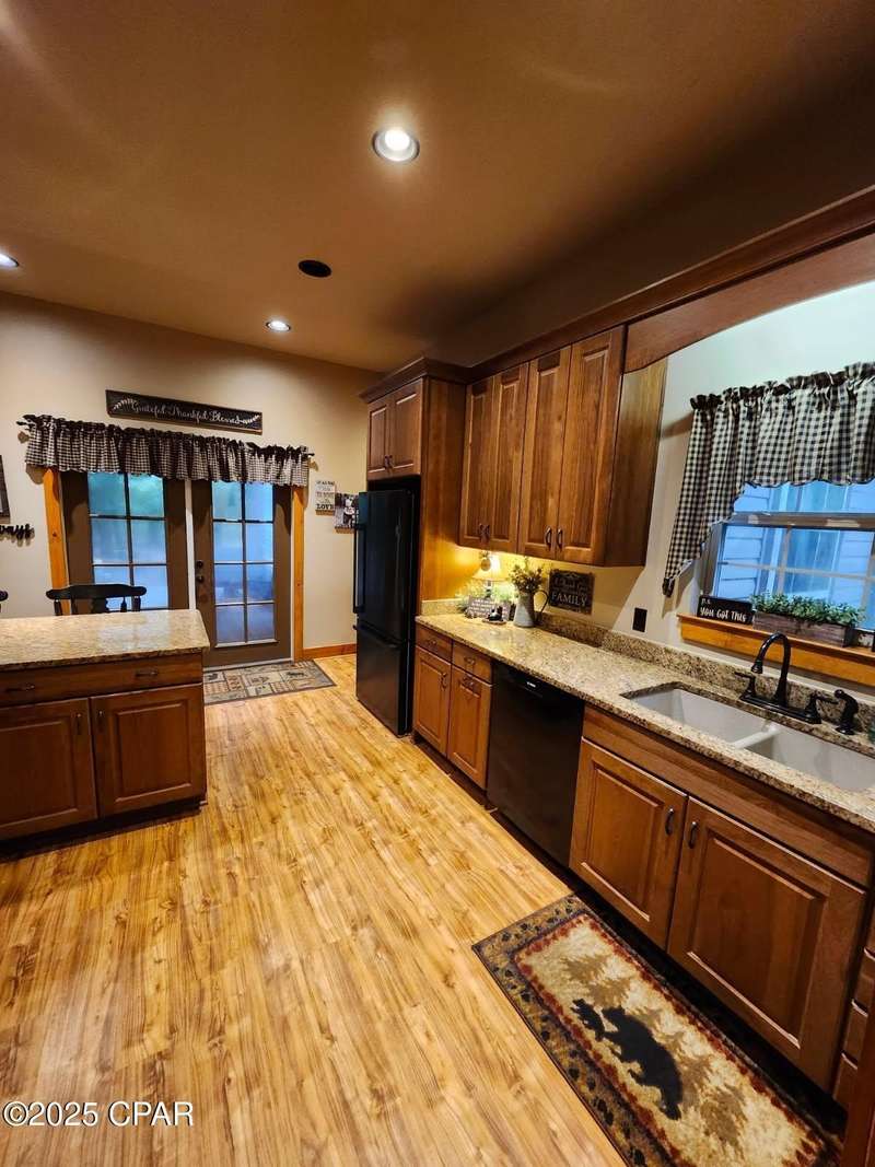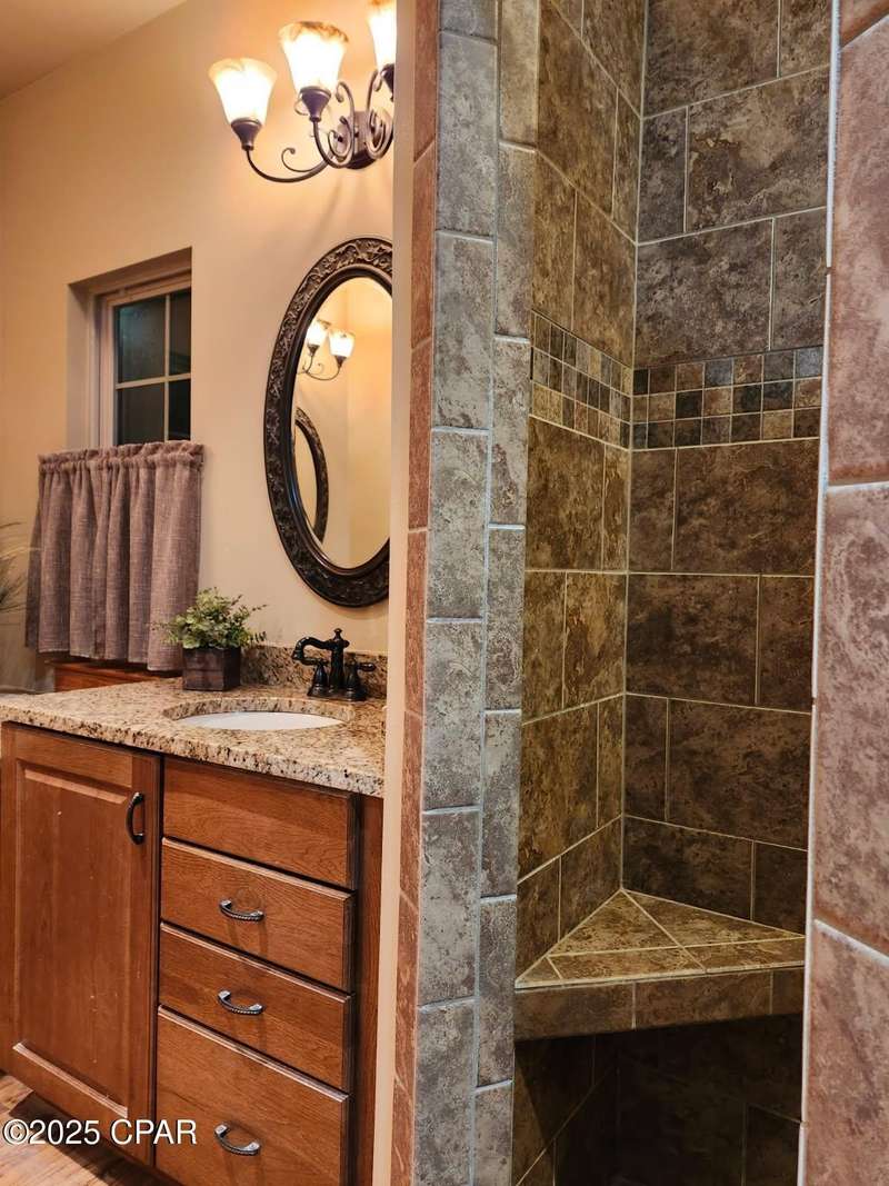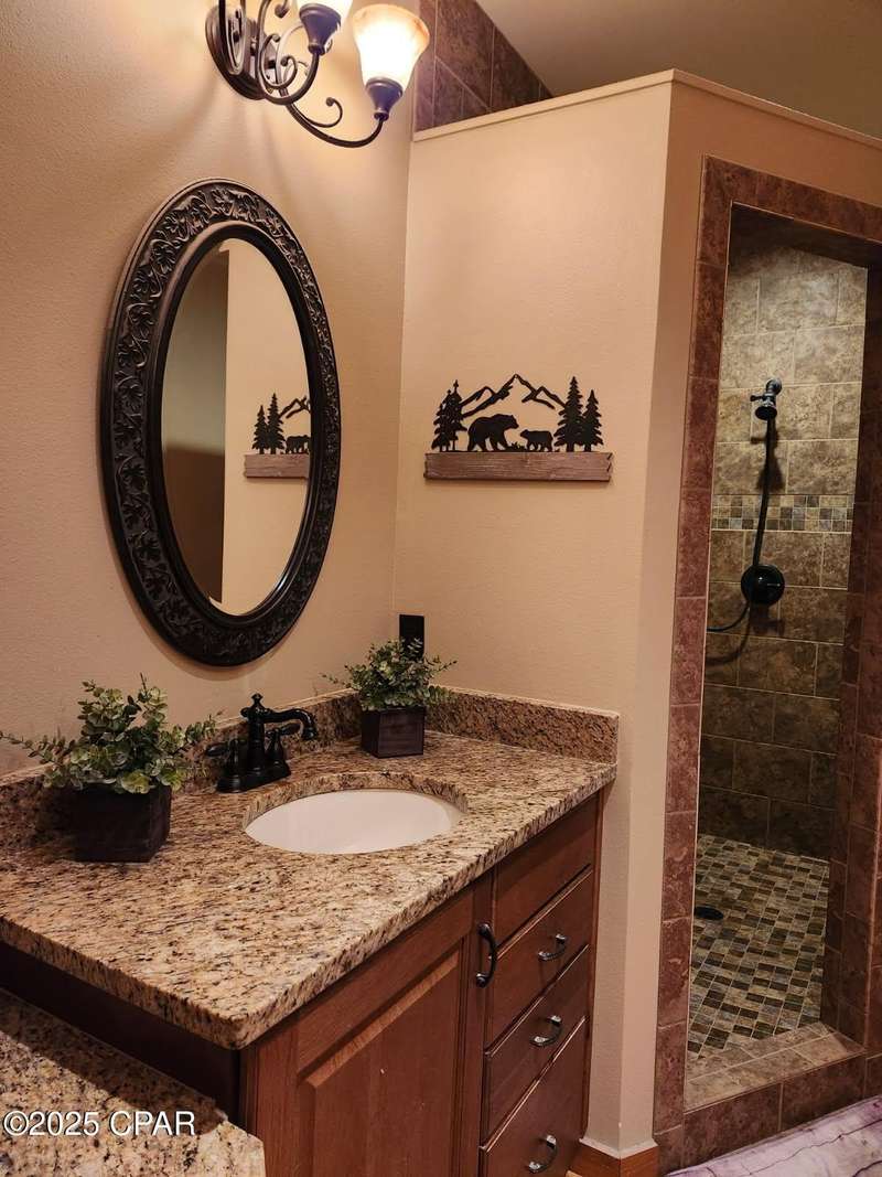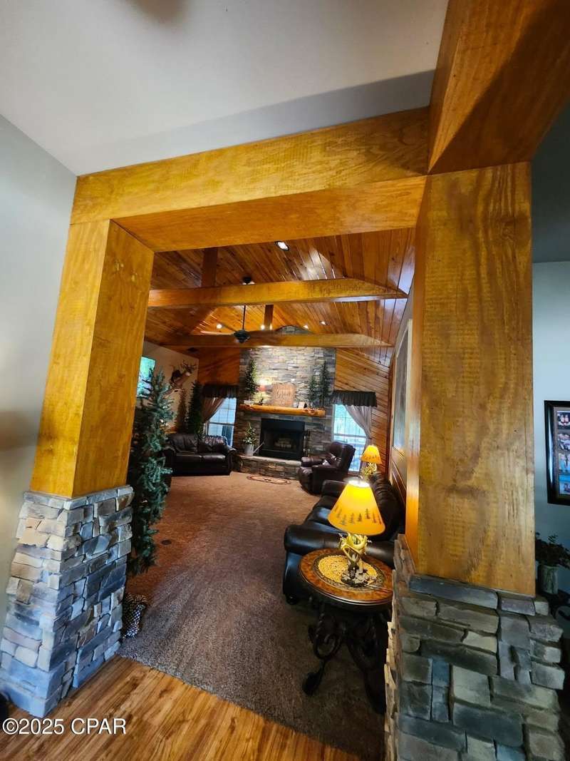 'CURRENTLY UNDER CONTRACT, SELLER WILL CONSIDER BACKUP OFFERS' This gorgeous rustic home looks like those common in Gatlinburg, TN., but it is only about 50 minutes to Pier Park at the beach. Located at the dead end of a cul-de-sac, this 3.17 (+/-) acre lot backs up to land used for hunting so wildlife is abundant. This beautiful home is in the security gated subdivision of Leisure Lakes, just north of Panama City off Highway 77. It has 3 spacious bedrooms and two full baths. The front porch is covered and has a concrete floor. The back deck is covered and a great place to sip coffee and watch the sun go down. The entire property is fenced in and has a separate smaller fenced area for pets out back. The massive wood burning fireplace is impressive with stacked stone surround, as well as the cathedral ceiling with exposed wood beams. Construction like this takes a lot of time and highly skilled wood and stone workers. Tall ceilings allow for tall windows allow for great views with plenty of light to flow into the house. The kitchen has granite countertops, breakfast bar and a pantry. The separate dining room is just off the kitchen. The primary bedroom suite has two vanities separated by a convenient makeup station. The large walk-in shower has a seat, is tiled from the floor up, and the big walk-in closet is also in the bathroom. There is attic storage and access in the 2-car garage, and additional parking or equipment storage is a 24x36 pole barn near the garage entrance. There are numerous oak trees that provide shade and the drive way loops around the front of the house. If you are hunting a beautiful home with a rustic feel, consider this one. The neighborhood amenities features a security gate with live guards weekdays, a swimming pool, boat launch, toddler playground, men's and women's restrooms, basketball court, tennis court, good fishing in two clear lakes, and more. The largest of the two lakes is about a mile across, or about 3 miles around. The water is very clear and spring fed. Be sure to see all of the photos.
