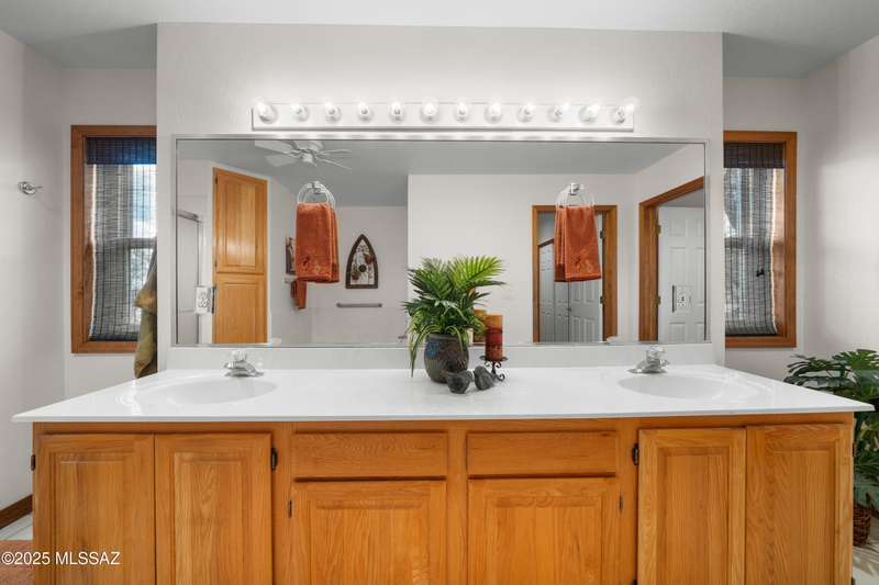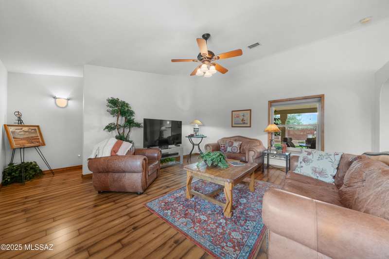 Awesome Mountain Views from your Cul-de-sac Home w/Circular drive, Plus drive thru to Equestrian Dr. for Bonus access!!! Gorgeous, mature front plantings create a very private setting...Welcome your Guests and enjoy from your lovely Front Courtyard!!! Double Door Entry into your Great Room Concept Living...Kitchen, DR, Guest Bedrooms/Bath, Laundry, Garage on one side...Living Room and Master Bedroom Suite on the other...Straight ahead, go thru to your full-length, Covered Patio and Stunning Backyard...featuring lush grass, lovely gardens, and peaceful mountain views!!! 2 storage sheds...one inside the backyard block wall, the other on the outside...LOTS of storage...ALL on over an acre, very convenient to Fort Huachuca, minutes to Town, Medical, Shopping, and all things Sierra Vista!!!