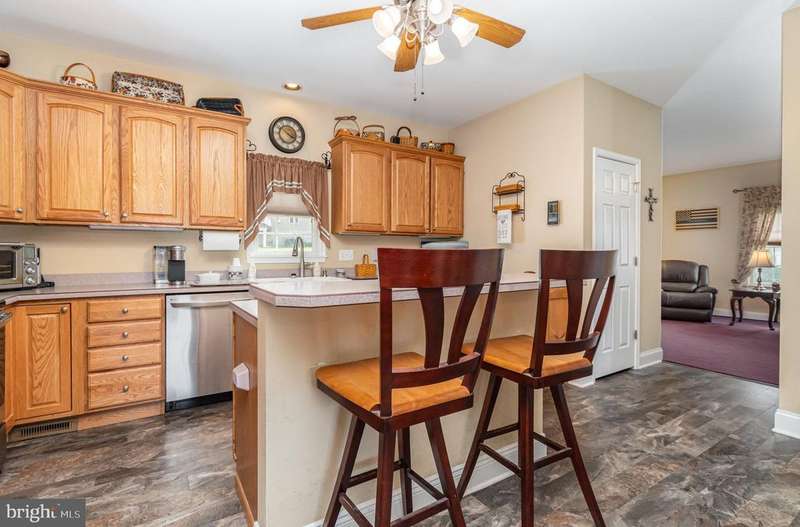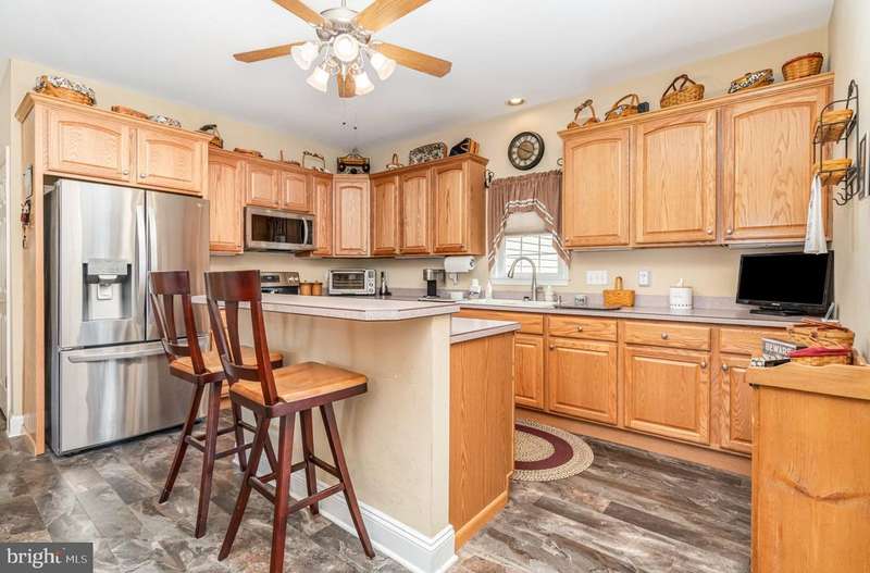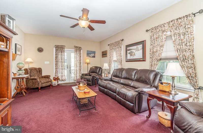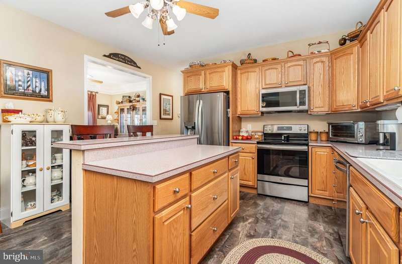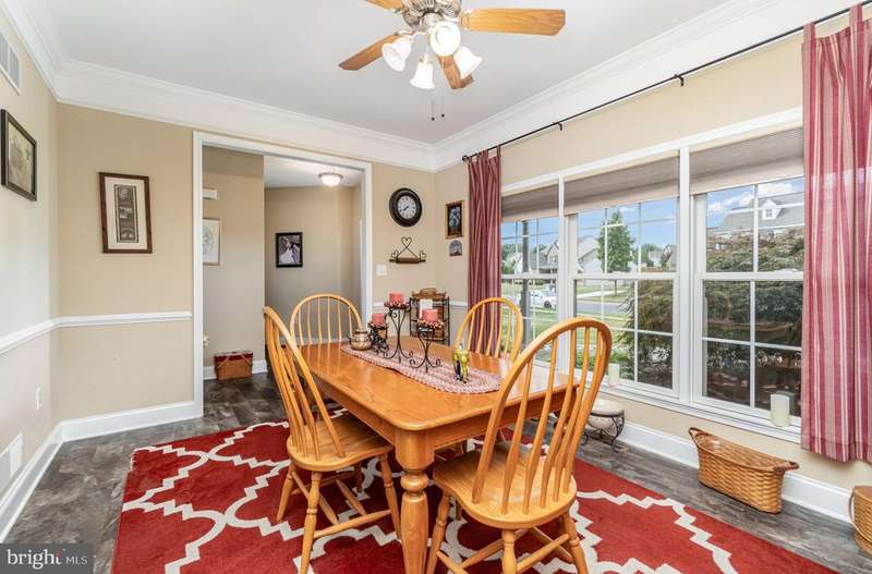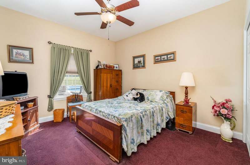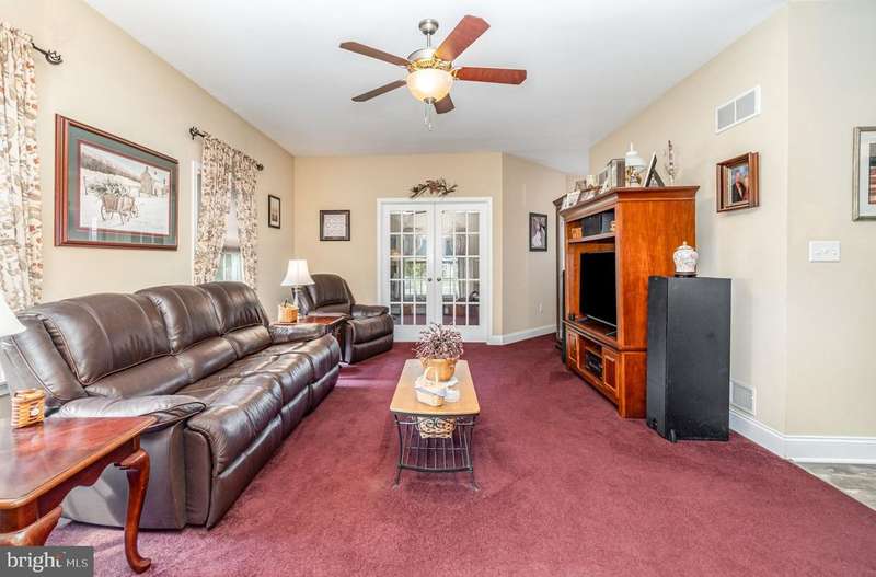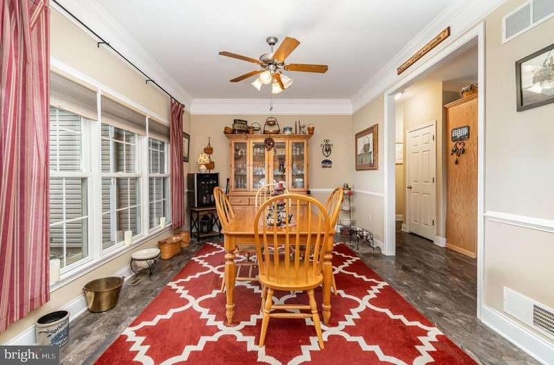 Enjoy one level living at it's finest in this thoughtfully designed, spacious ranch home in the popular community of Amber Fields. The large, fenced rear yard features a backyard oasis with an in-ground pool and extensive hardscaping, including knee walls and a built-in firepit. The expansive primary bedroom suite has two spacious walk-in closets, 2 ceiling fans and full bathroom with double vanity and linen closet. The eat-in kitchen offers a center island with seating, ceiling fan and large walk-in pantry. The formal dining room has crown molding, chair rails and a ceiling fan. The living room opens to the rear patio and adjoins the office with French doors. The laundry room is conveniently located on the main level. Additional features include ceilings fans and 9-foot ceilings throughout the home. Recent updates include beautiful luxury vinyl plank flooring and a newer pool liner. The enormous basement with outside entrance presents endless possibilities for customization, whether you envision a home gym, workshop, or additional living space. Outbuilding and 3 sheds provide extra storage for all your outdoor essentials. With an attached two-car garage offering inside access, parking is a breeze. Experience the warmth and comfort of this inviting home, where every detail has been designed with your needs in mind.