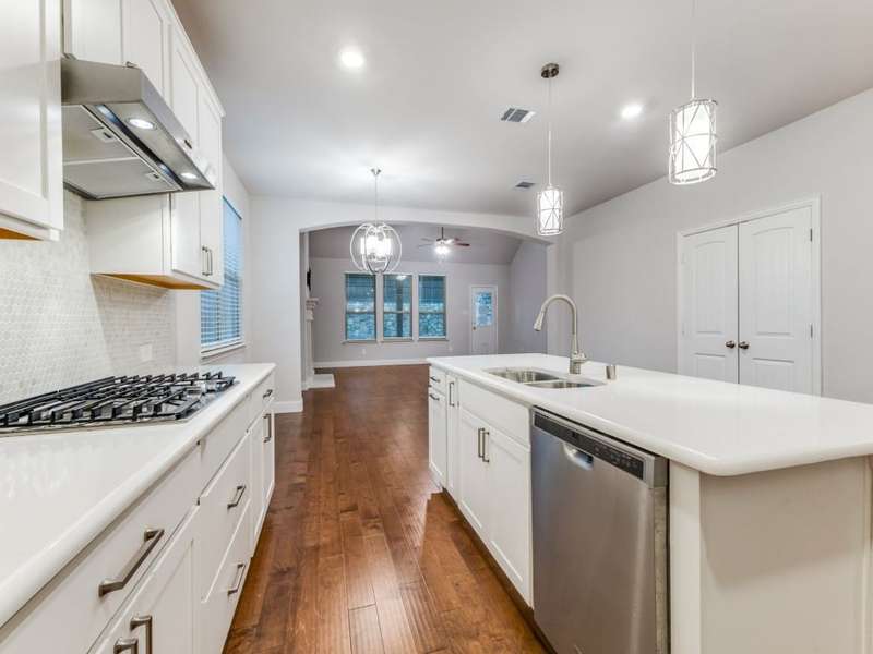 PRICE ADJUSTMENT! Woodcreek 4 bedroom, 3 full bath home with office, with glass French doors, and media room! Open floorplan features a engineered hardwood flooring in the kitchen, dining and living area! Kitchen offers stone countertops, stainless steel appliances, gas cooktop and and island with space for seating! Primary bedroom downstairs and the ensuite bath has separate vanity areas, garden tub, separate shower and a walk-in closet! 2nd bedroom and full bath downstairs! Drop zone directly across from the garage entrance to the house! Upstairs is the media room and 2 bedrooms connected by bathroom! Separate utility room! Woodcreek HOA offers pools, playgrounds, catch and release pond, walking trails and more! Check out www.fatetx.gov for details on what is coming to the area! Zoned for Rockwall ISD, Stevenson ES, Utley MS, Rockwall 9th Grade Center and Rockwall HS! Sold AS-IS!
